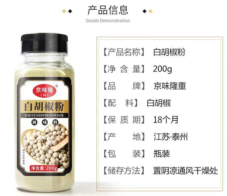 Pimienta Blanca en Polvo de Hainan Pimienta Negra en Polvo Botella de 200g Condimento para Barbacoa Adobo Catering Cocina Condimento Pimienta en Polvo