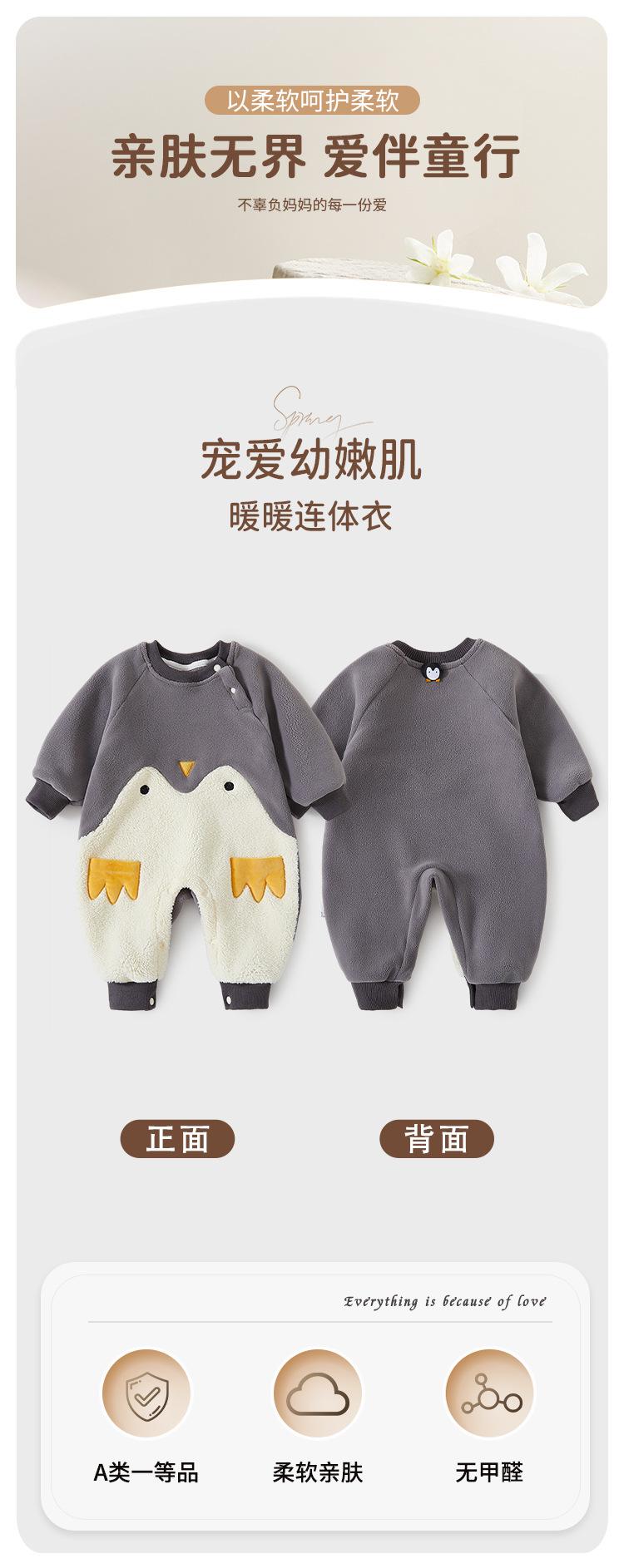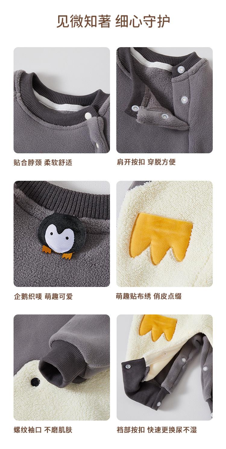 Ropa de Bebé Otoño Invierno Pelele Engrosado con Forro Polar Cálido Mameluco con Broches en el Hombro Lindo Traje para Gatear