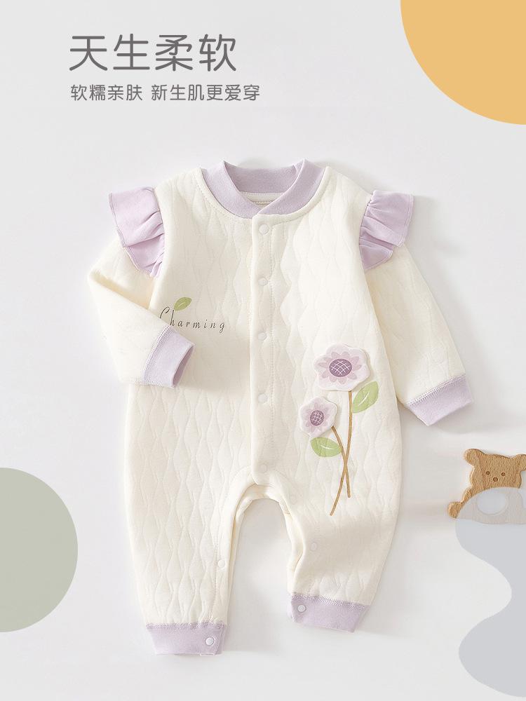 Ropa de bebé estilo primavera y otoño mameluco acolchado ropa de otoño para bebé ropa interior cálida niña bebé pijamas de algodón puro clase A invierno