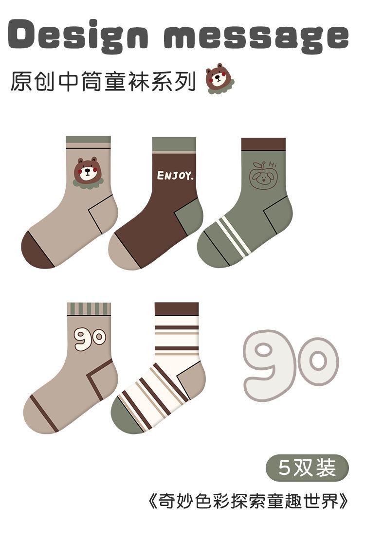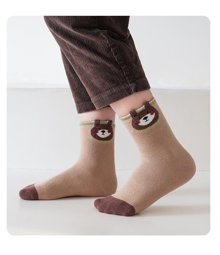 Calcetines para Niños Otoño Lindo Dibujo Animado Oso Calcetines Media Caña Algodón Sin Costuras Sin Presión Calcetines de Algodón Peinado Calcetines Deportivos para Estudiantes para Niños