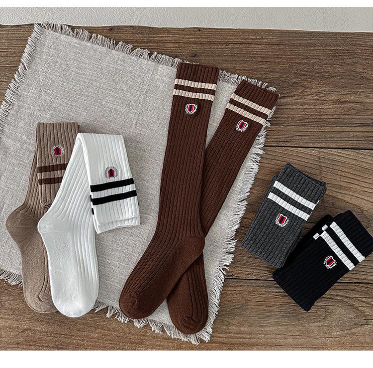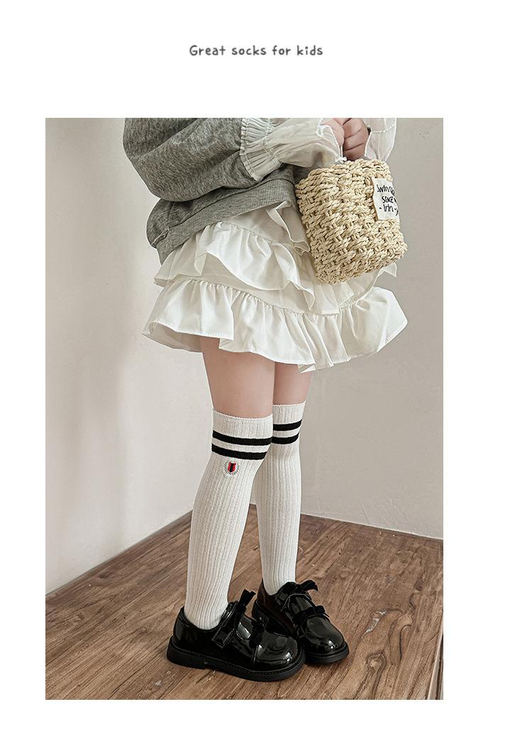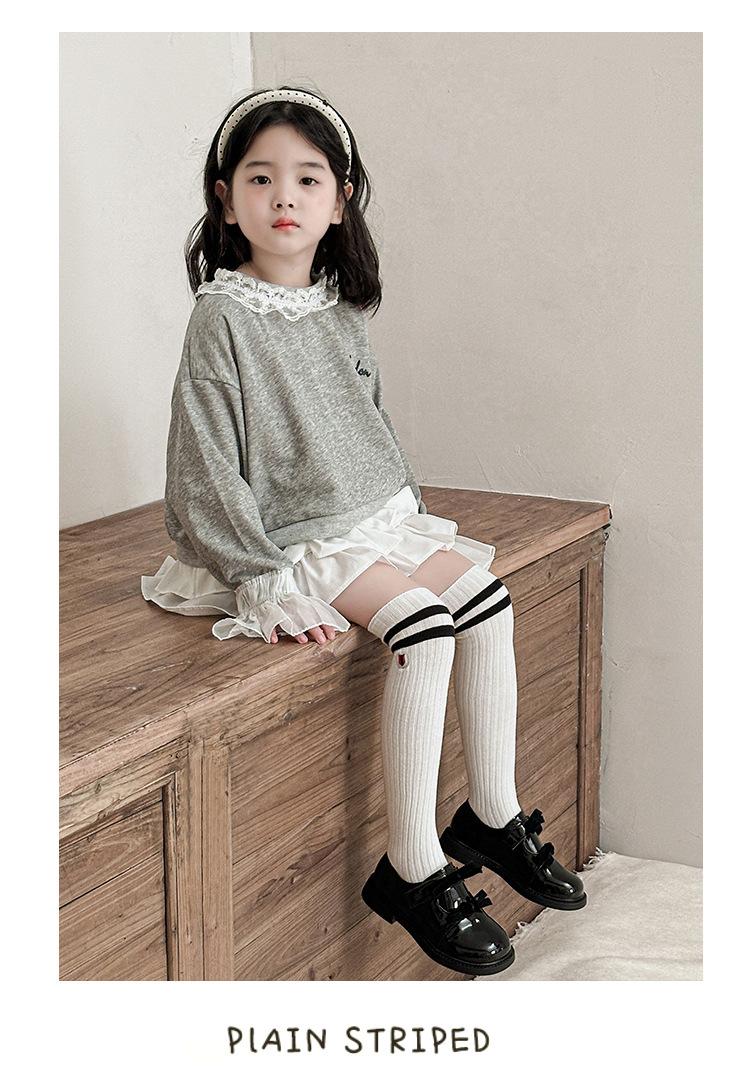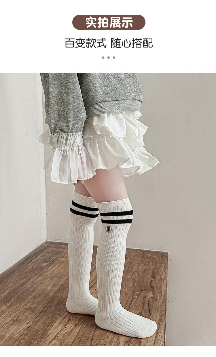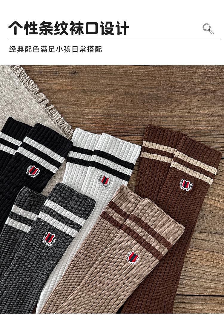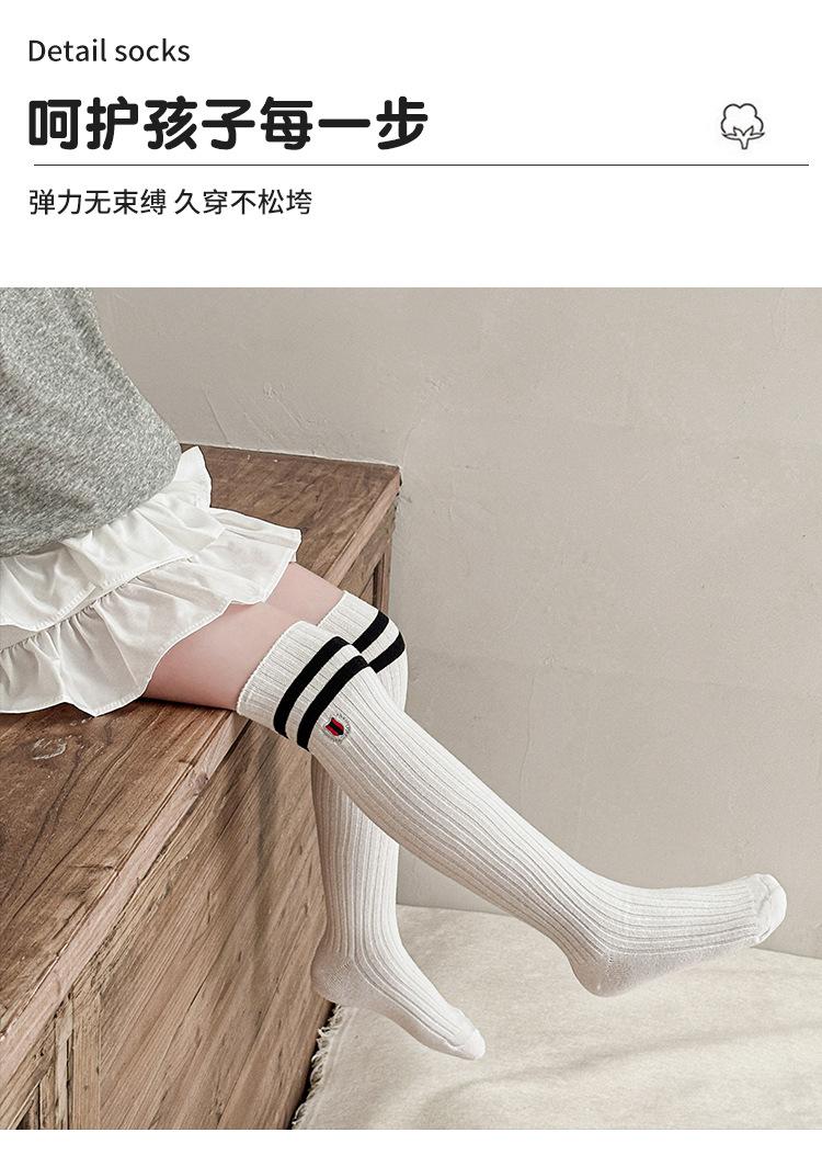 Calcetines de Algodón para Niños Color Sólido Niña Doble Aguja Calcetines de Media Caña Bordado de Dos Barras Calcetines para Niños Otoño Rayados Bebé Niña Calcetines Largos