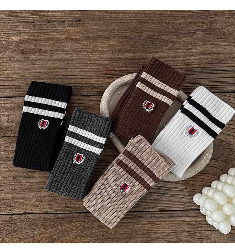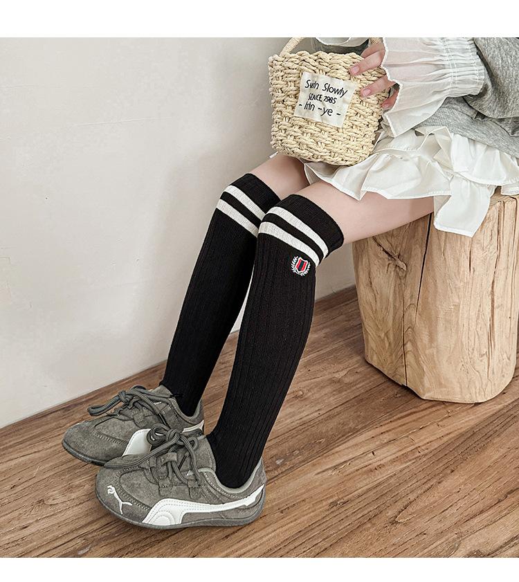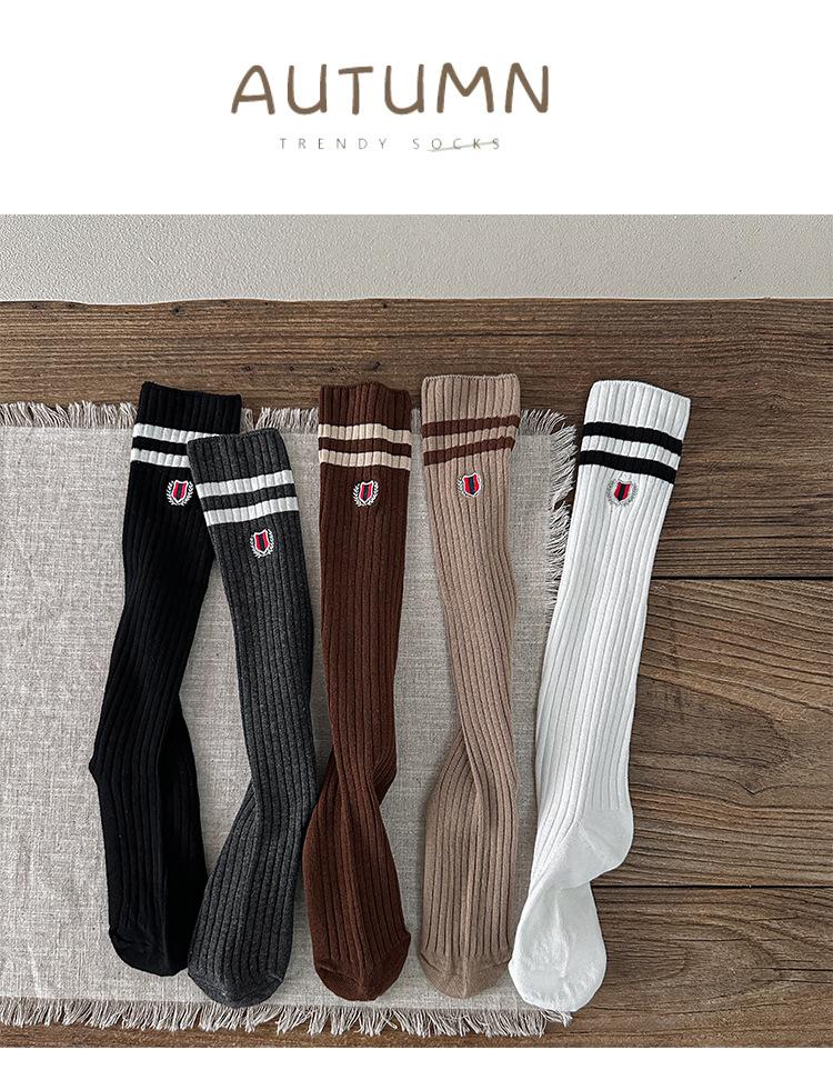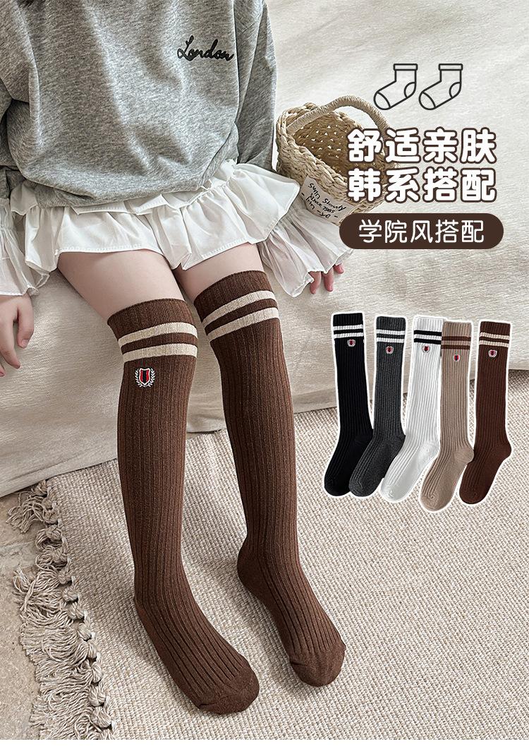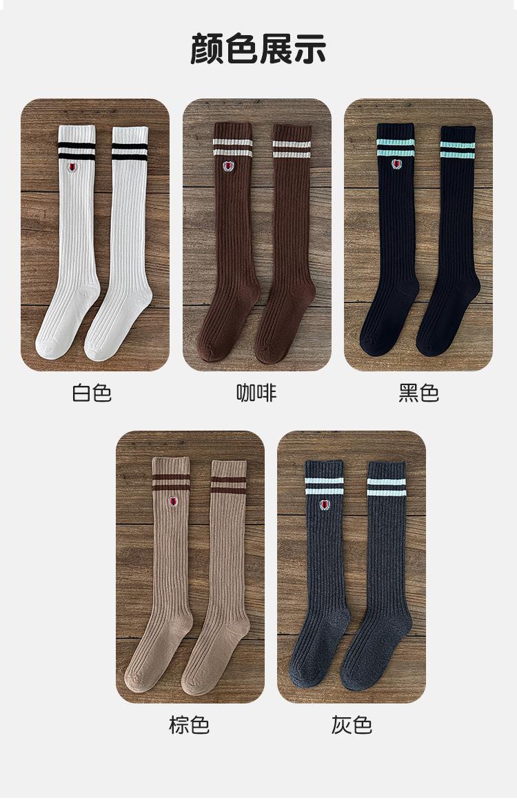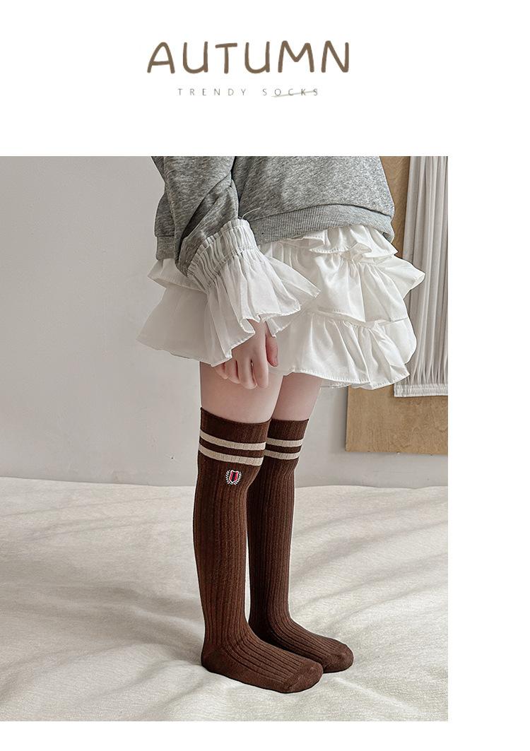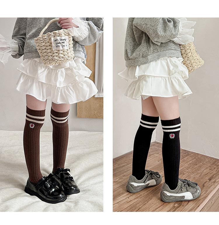 Calcetines de Algodón para Niños Color Sólido Niña Doble Aguja Calcetines de Media Caña Bordado de Dos Barras Calcetines para Niños Otoño Rayados Bebé Niña Calcetines Largos