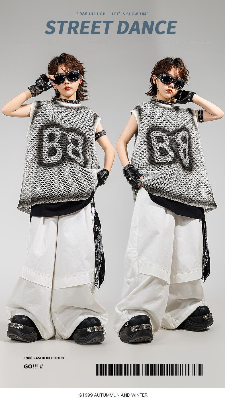 Ropa infantil de hiphop street dance ropa infantil de hip hop ropa de moda para niños conjunto de chaleco suelto sin mangas para niños ropa de moda para niñas disfraz de actuación