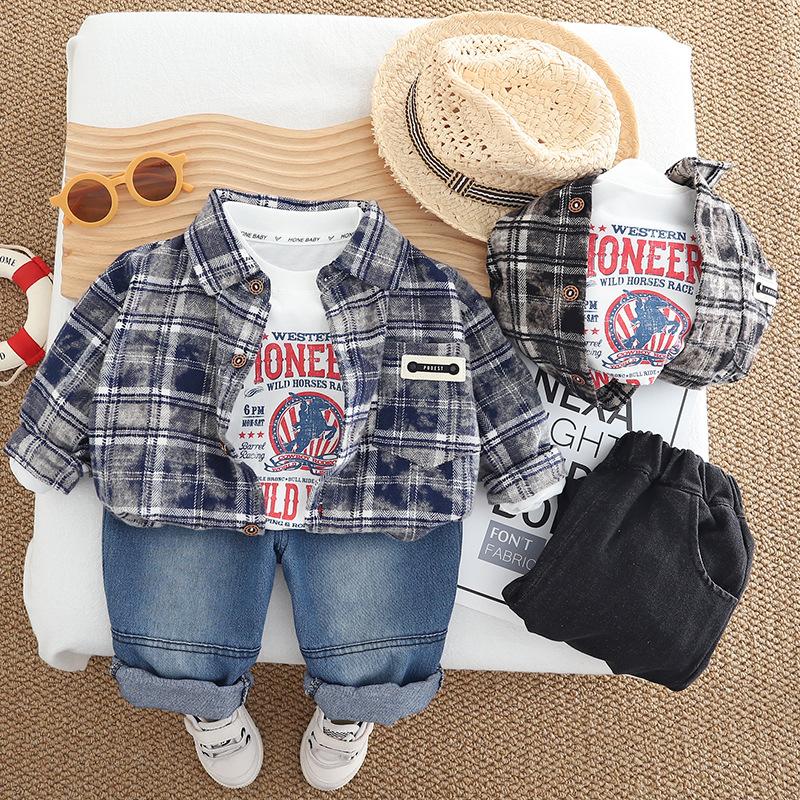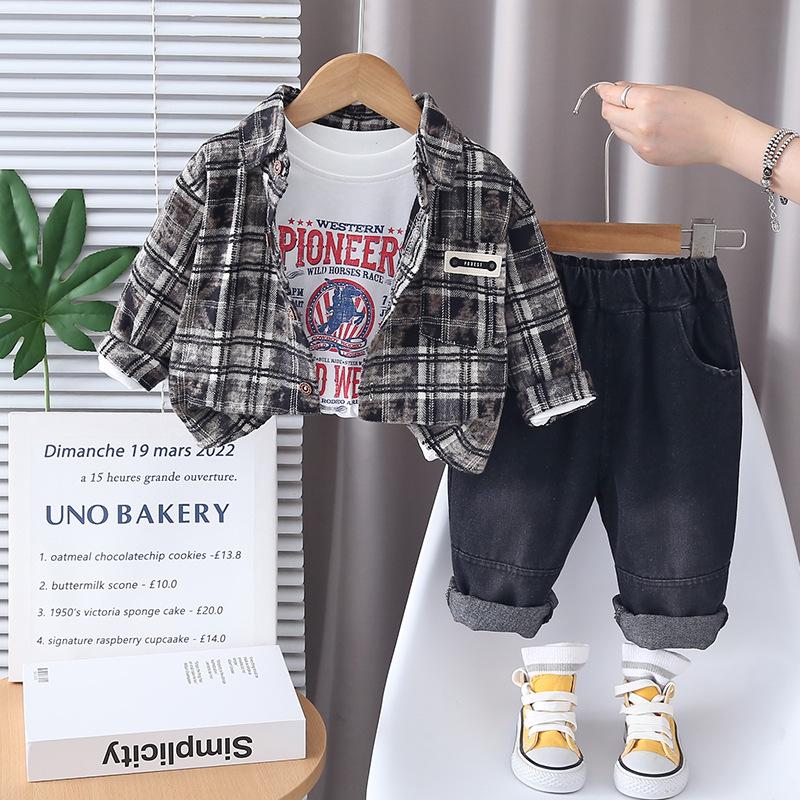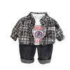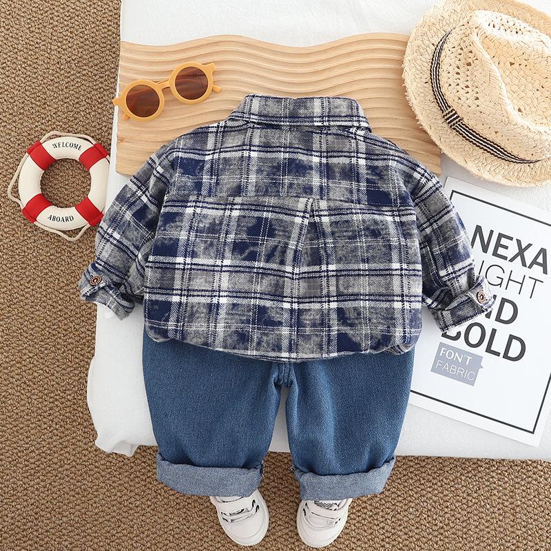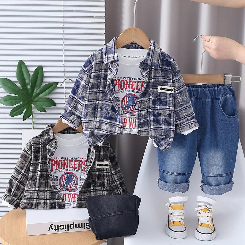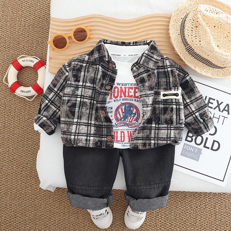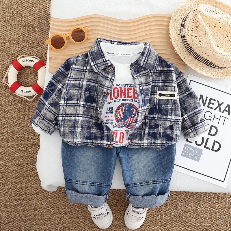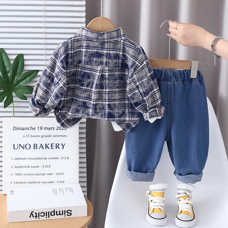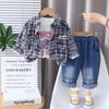 Ropa para niños Ropa de otoño para niños 2025 Nuevo conjunto de tres piezas de camisa a cuadros teñida anudada Ropa para bebés de otoño Estilo coreano Ropa para niños
