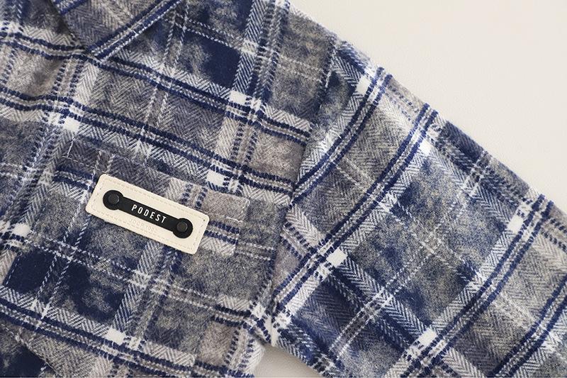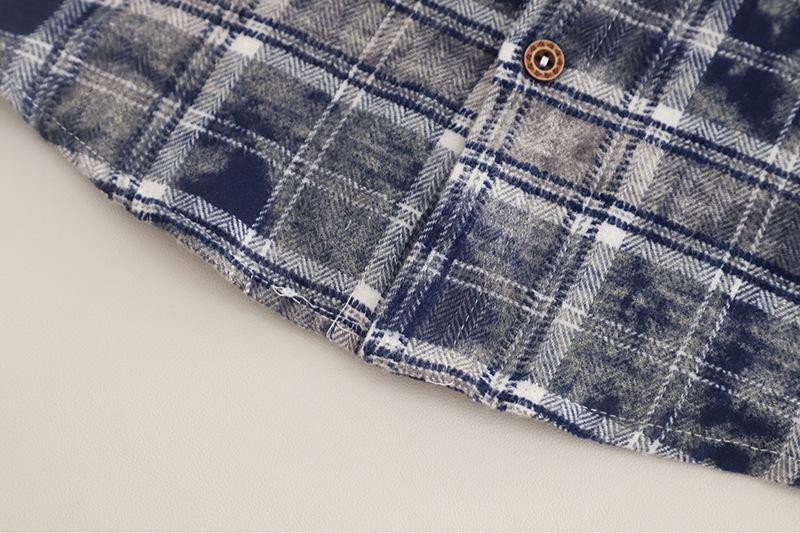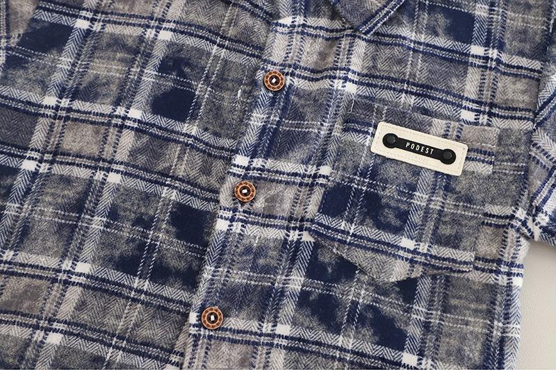 2507133 Long Sleeve Tie-Dye Plaid Shirt Three-Piece Set Black, 2507133 Long Sleeve Tie-Dye Plaid Shirt Three-Piece Set Blue