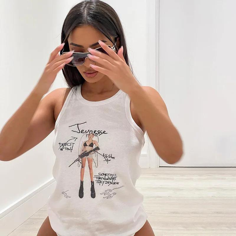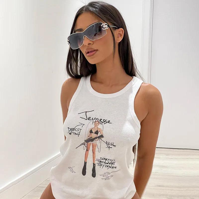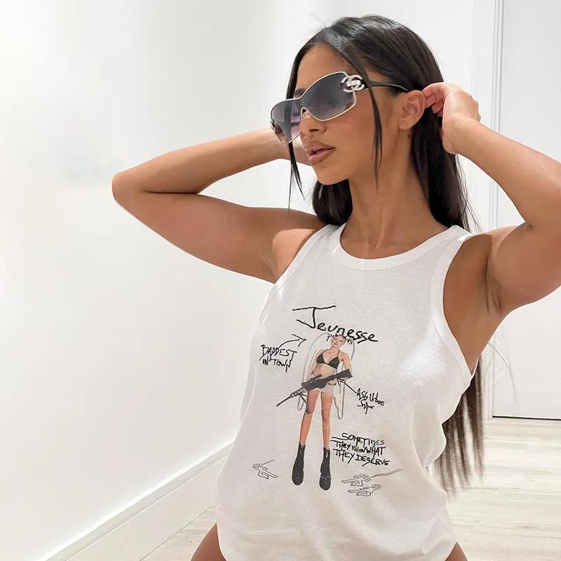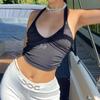 Verano 2025 Nuevo Estilo Europeo y Americano Sexy Halter Color Sólido Top Tank Corto para Mujer