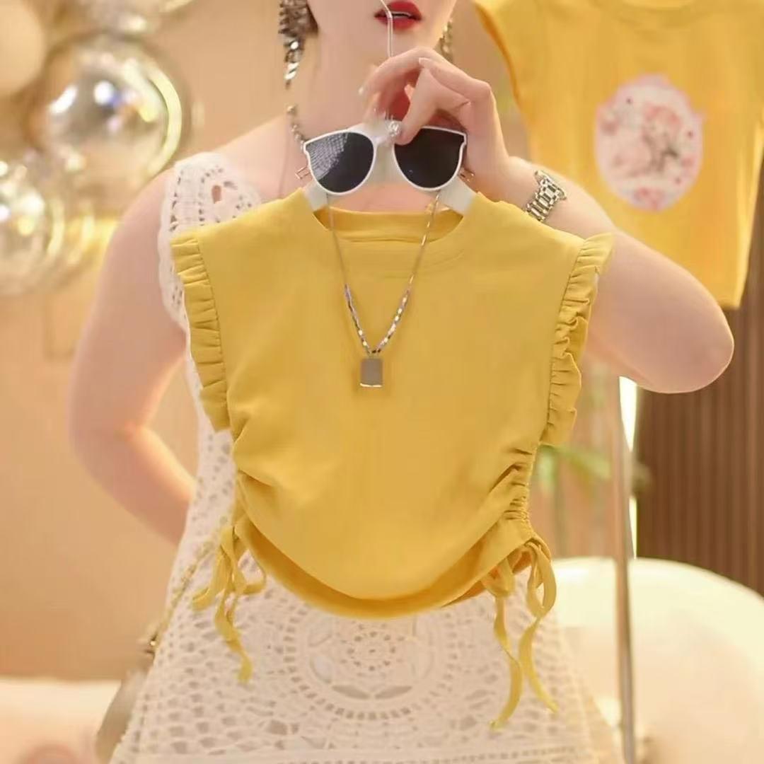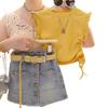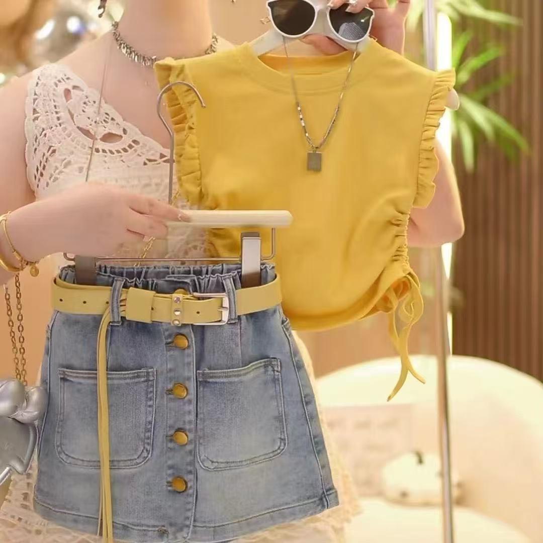 Conjunto de Verano para Niñas Moda Bebé Personalidad Infantil Moderna Elegante Estilo Coreano Encaje Cordón Chaleco Falda Corta de Mezclilla Pantalones