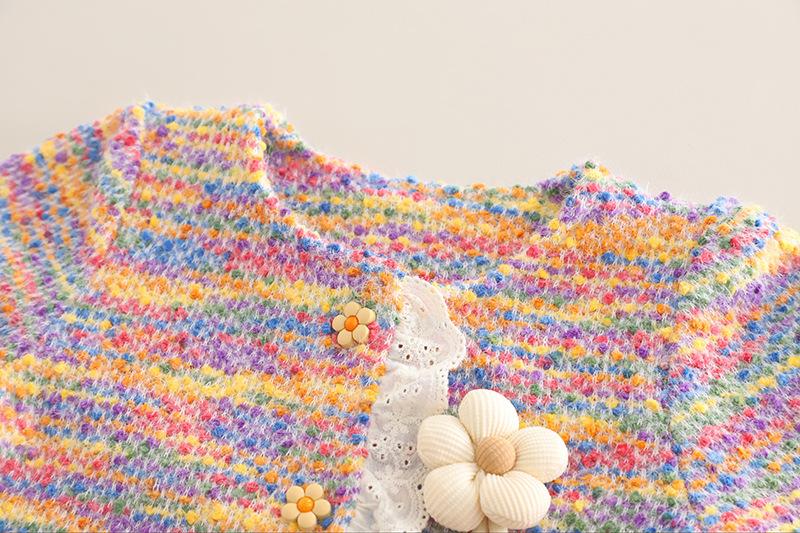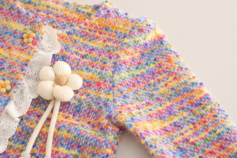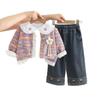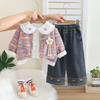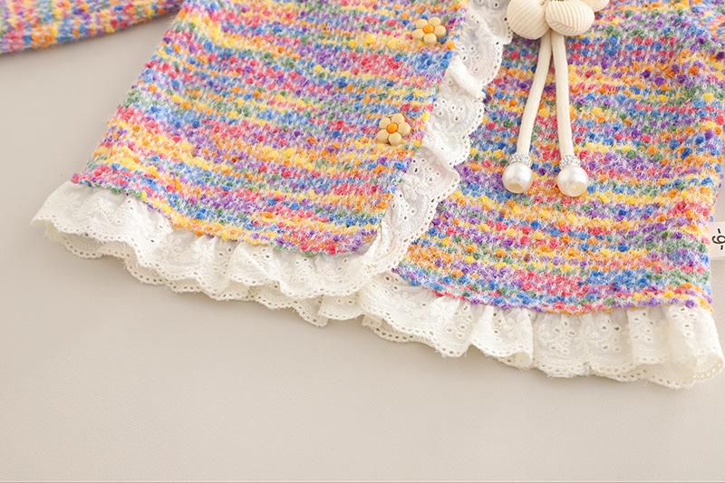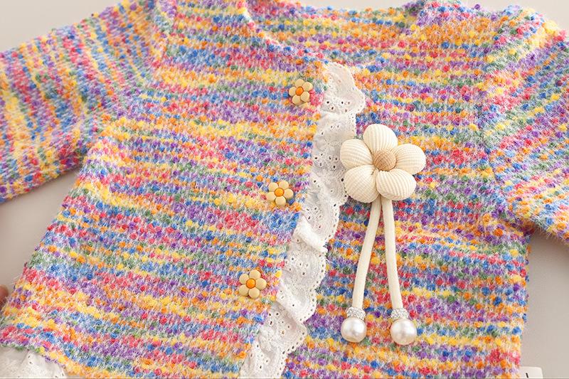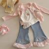 Conjunto Dulce para Niñas Otoño 2025 Niño Pequeño y Mediano Bebé Niña Moda Manga Larga Encaje de Girasol Conjunto de Tres Piezas