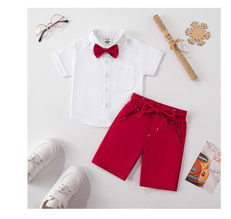 Conjunto de verano de manga corta y pantalones elásticos para bebé transfronterizo, conjunto para niño, estilo veraniego, conjunto de dos piezas, ropa formal para bebé de un año, ropa infantil