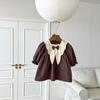 Vestido de Otoño para Niñas Coreanas Falda de Estilo Occidental para Niños Niños Pequeños y Medianos Bebé Retro Manga Larga Lazo Vestido de Princesa