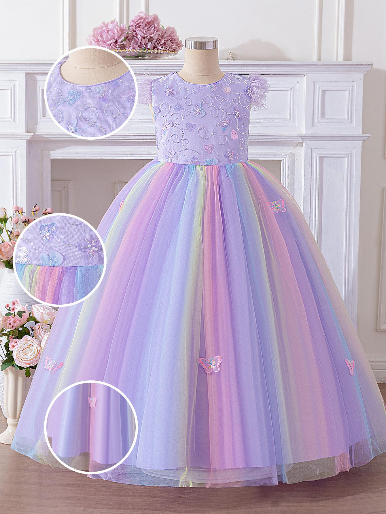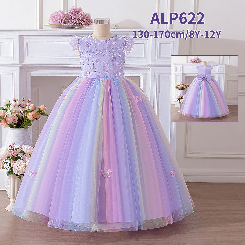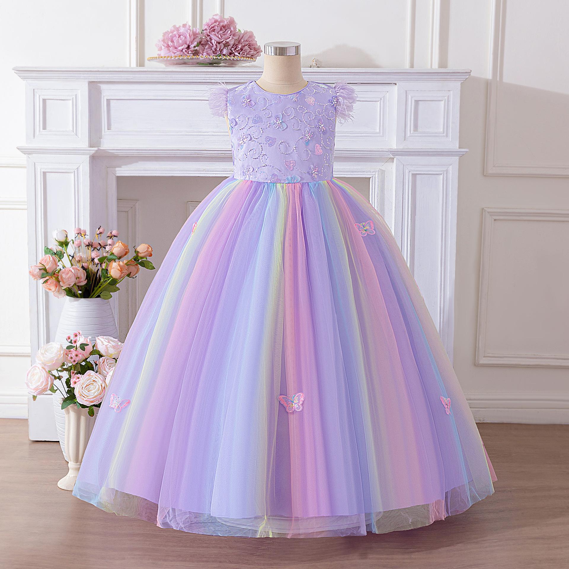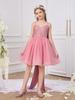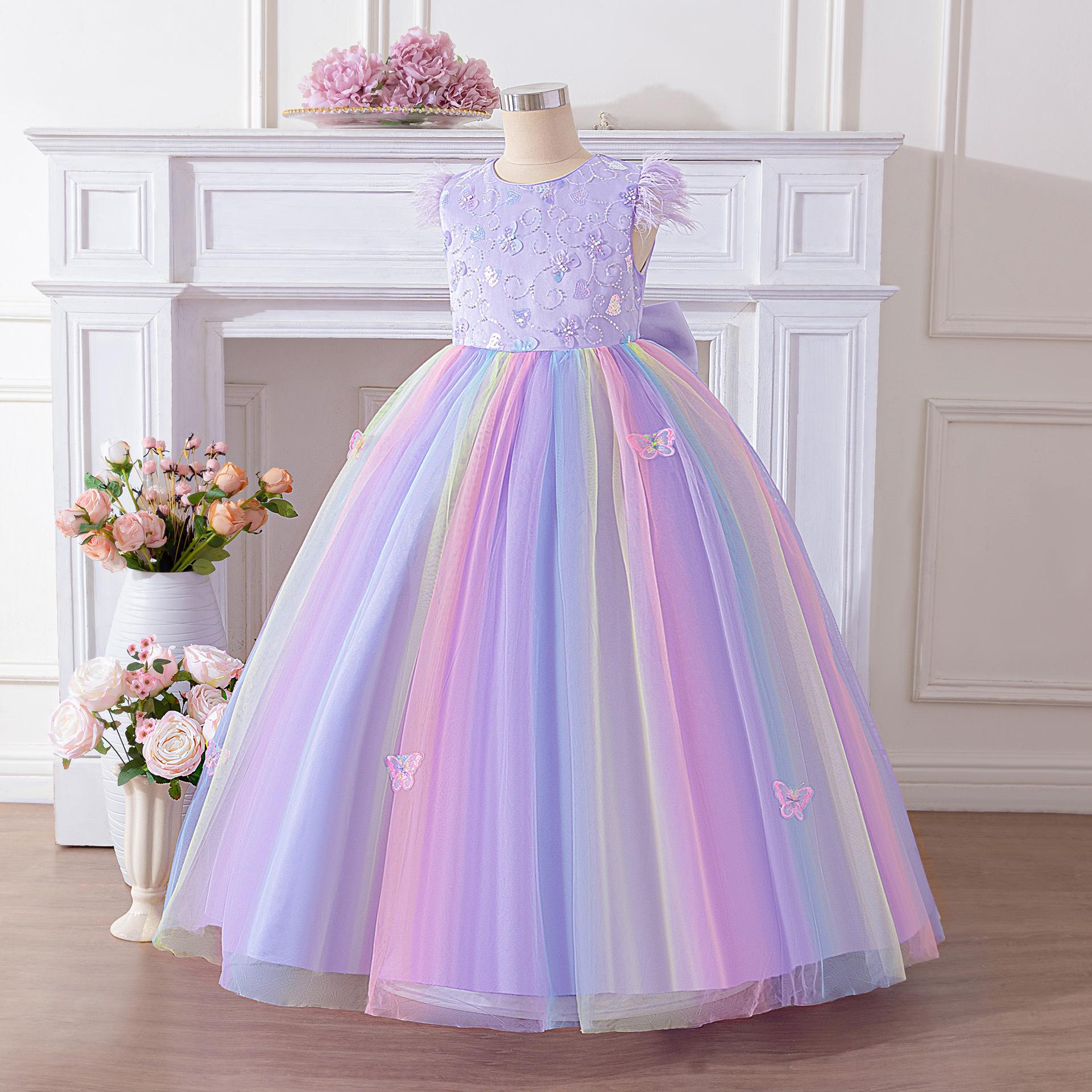 Nuevo vestido de noche para niños grandes transfronterizo, vestido de princesa para niños, falda abullonada de malla, vestido con lazo, disfraz para presentación de festival
