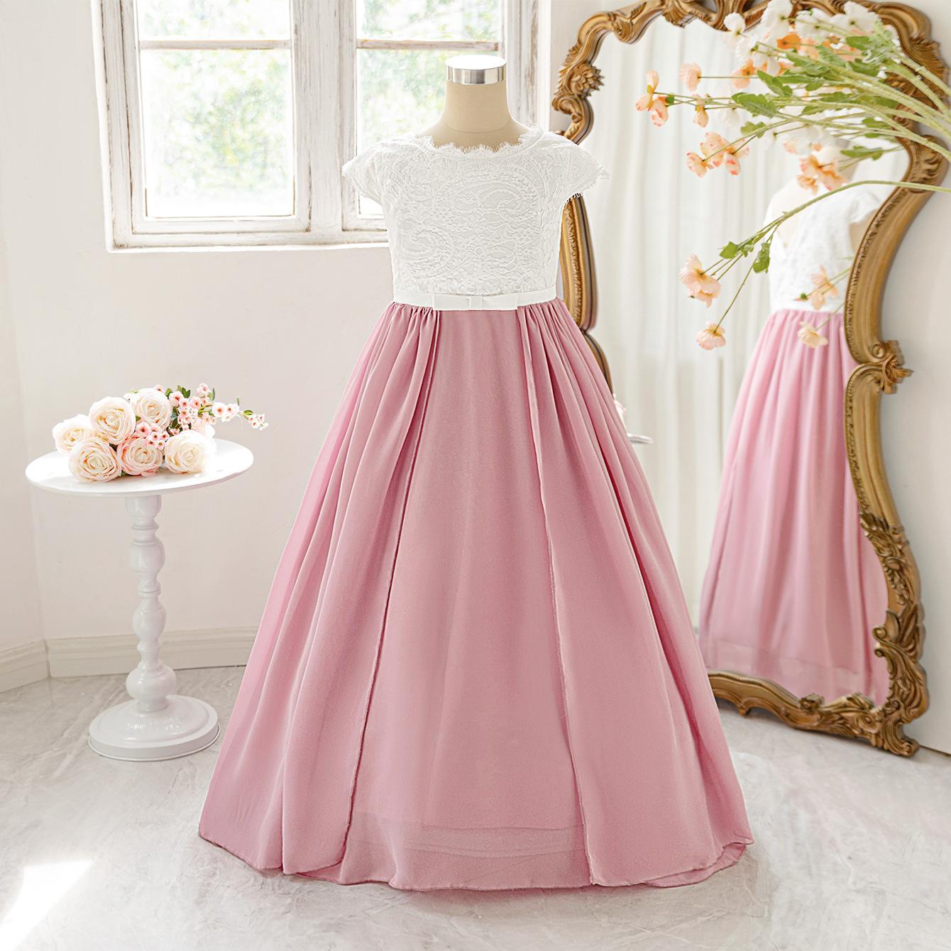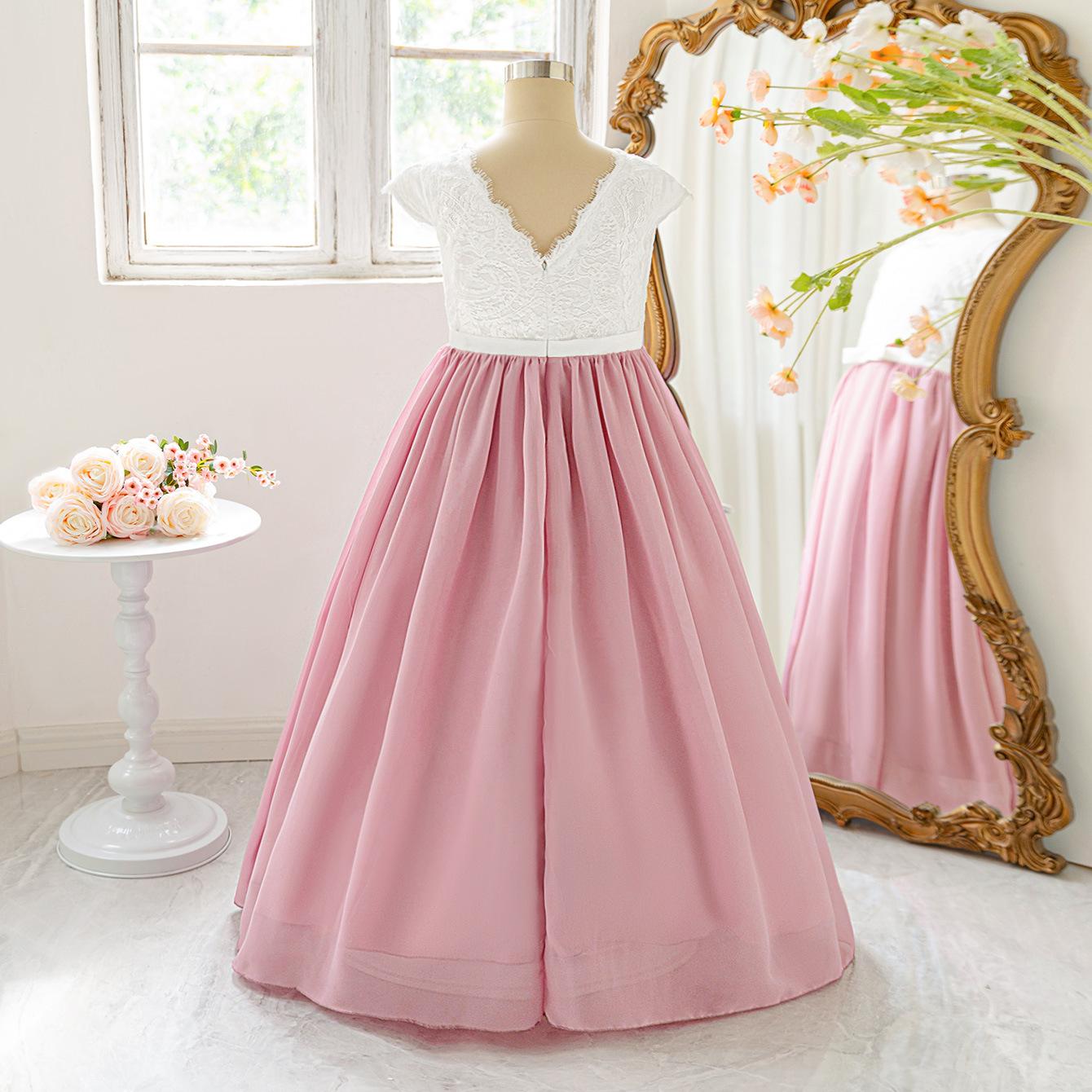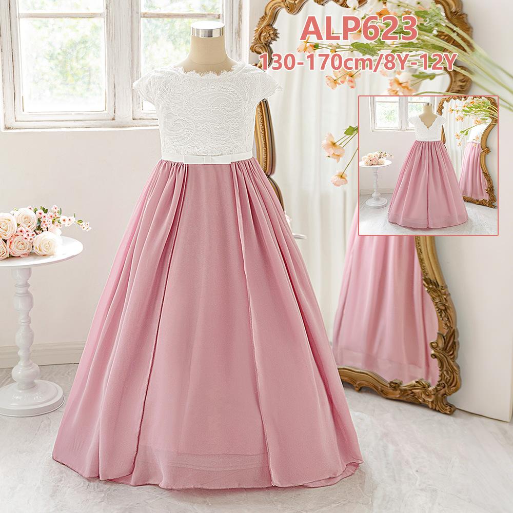 Vestido de Niña Transfronterizo Directo de Fábrica Encaje Mariposa Vestido de Princesa Manga Abullonada Vestido de Noche
