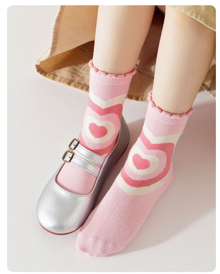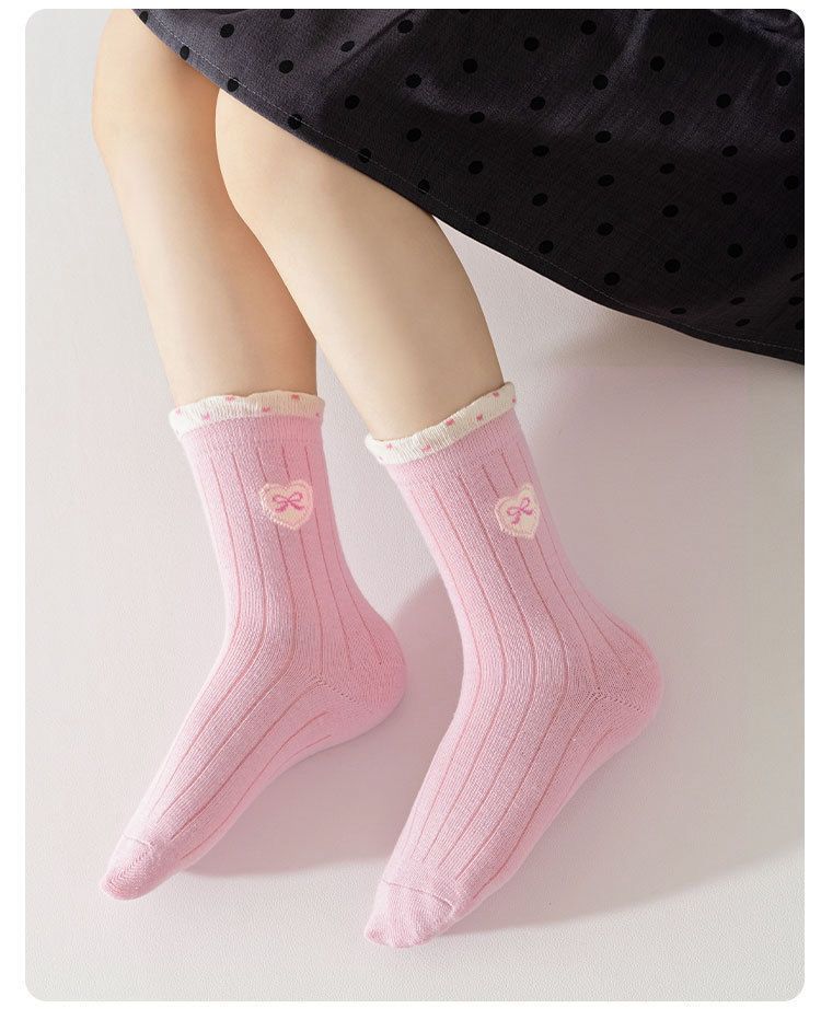 Calcetines para niños 2025 Calcetines de algodón de otoño Calcetines de corazón dulce Calcetines para bebés medianos y grandes Calcetines transpirables para niñas Venta al por mayor