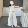 Conjunto de Verano para Niñas 2025 Ropa de Verano Nueva y Elegante para Niños Camisola de Verano para Niños Grandes Pantalones de Pierna Ancha Conjunto de Dos Piezas