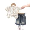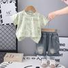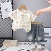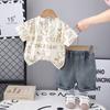 Traje de Manga Corta para Niño 2025 Nuevo Verano Moda de Verano para Niño Manga Corta Oso Oso Cuello Redondo Conjunto de Dos Piezas