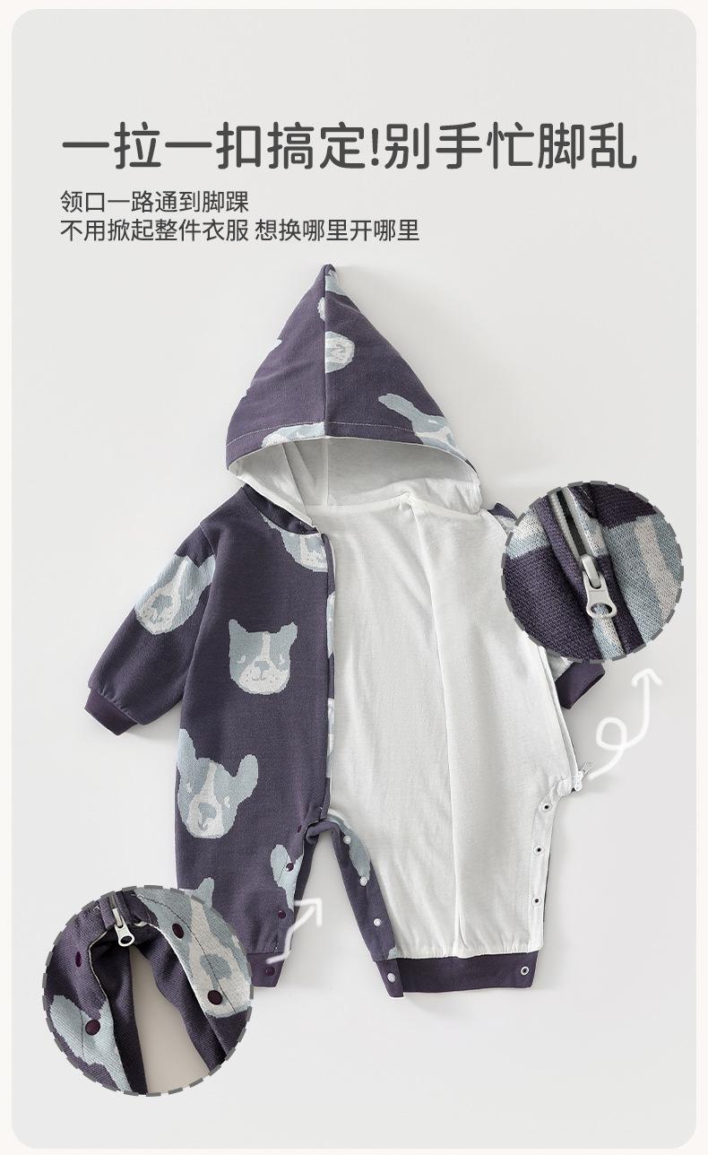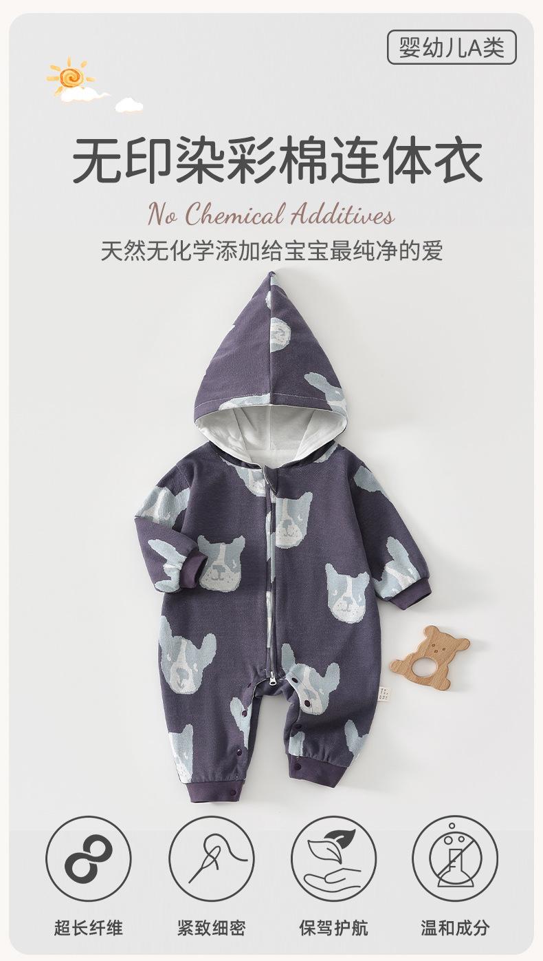 Mameluco para bebé de algodón puro Clase A Ropa para bebé de un año Estilo con capucha y cremallera Mameluco para salir Traje para gatear Ropa para niños Anyang