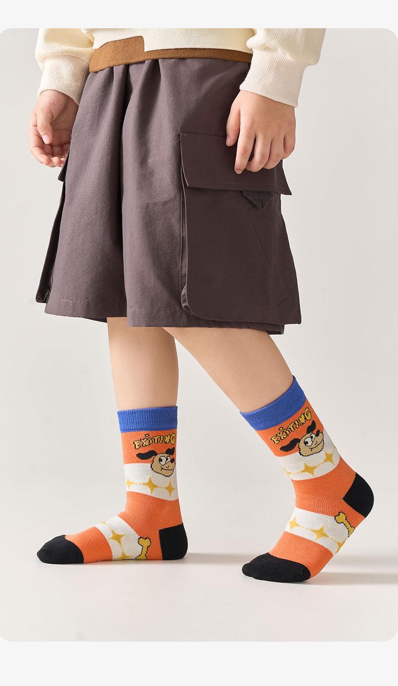 Calcetines de Media Caña para Niños Otoño 2025 Nuevo Dibujos Animados Modernos Niños Pequeños y Medianos Algodón Semi-Peinado Calcetines para Estudiantes Calcetines para Niño y Niña