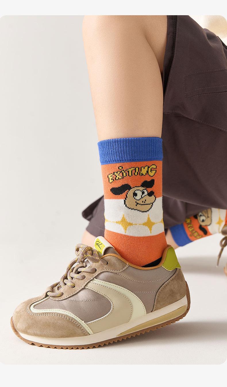 Calcetines de bebé tipo A, calcetines de algodón coreanos de dibujos animados de primavera y otoño, calcetines de tubo medianos de invierno para bebés, calcetines para niños y niñas.