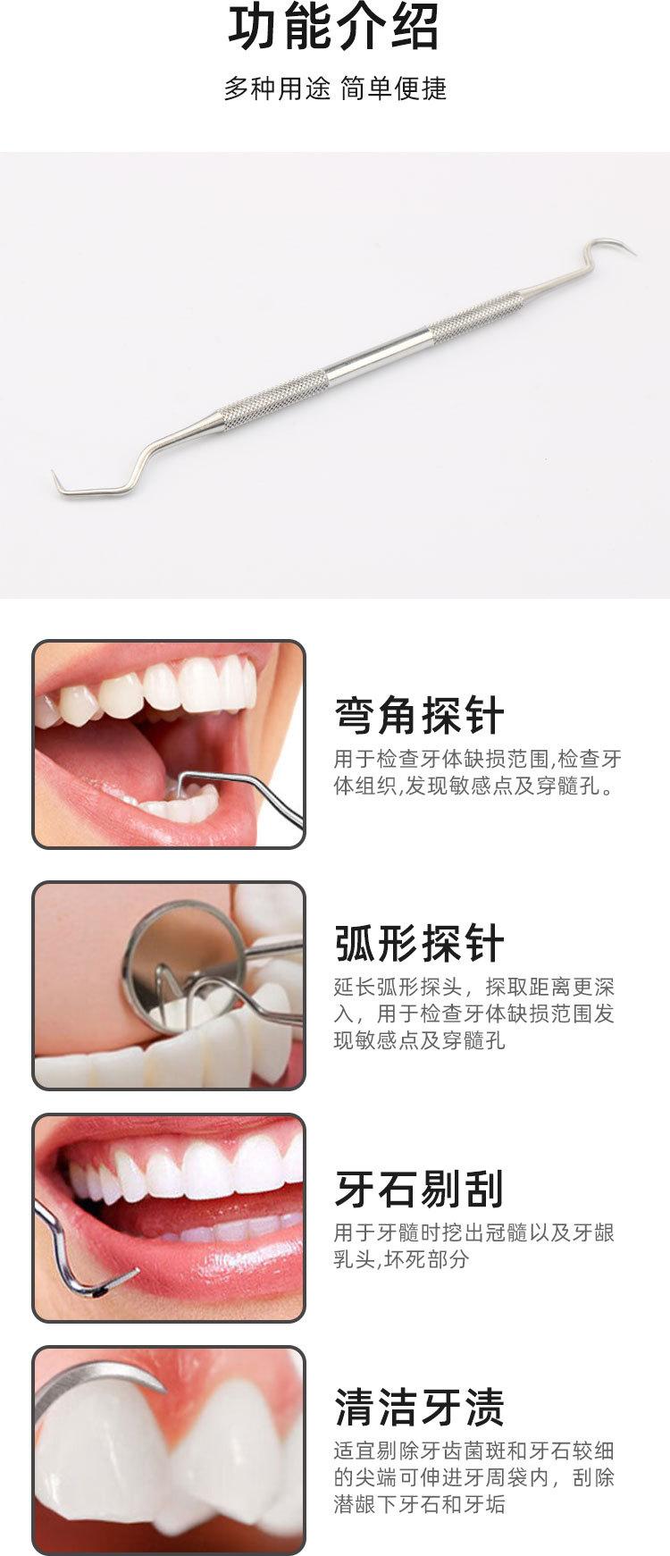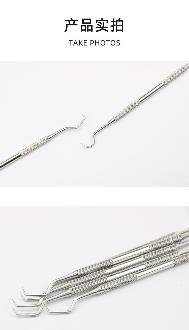 Fabricante en stock sonda de material de acero inoxidable dental ganchillo dental removedor de dientes limpieza sonda de cuidado profesional