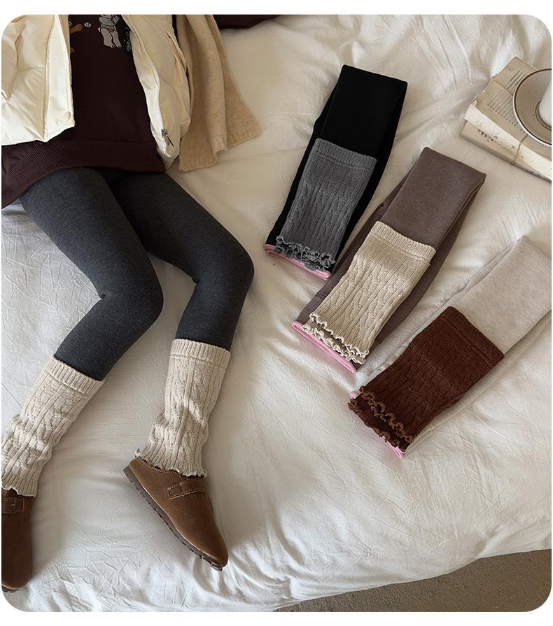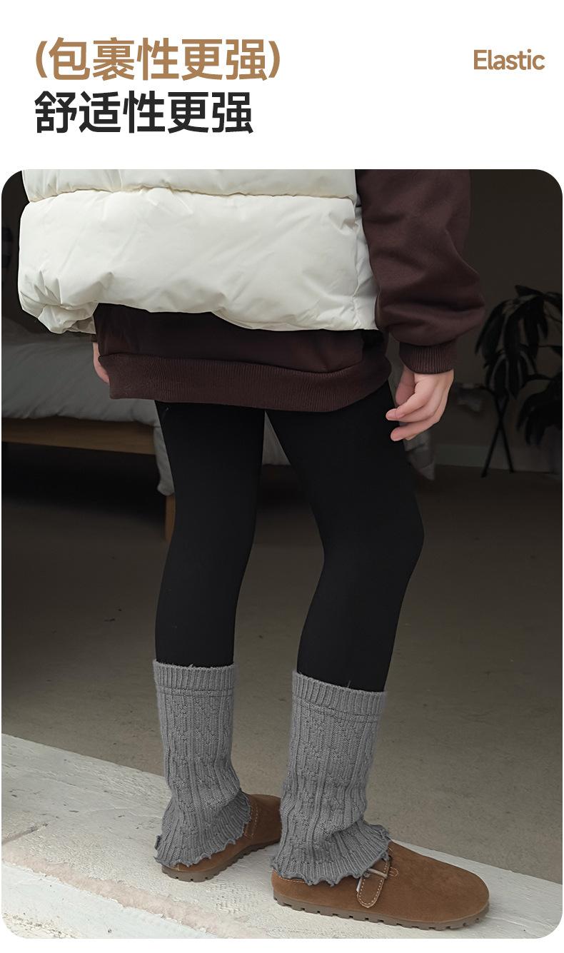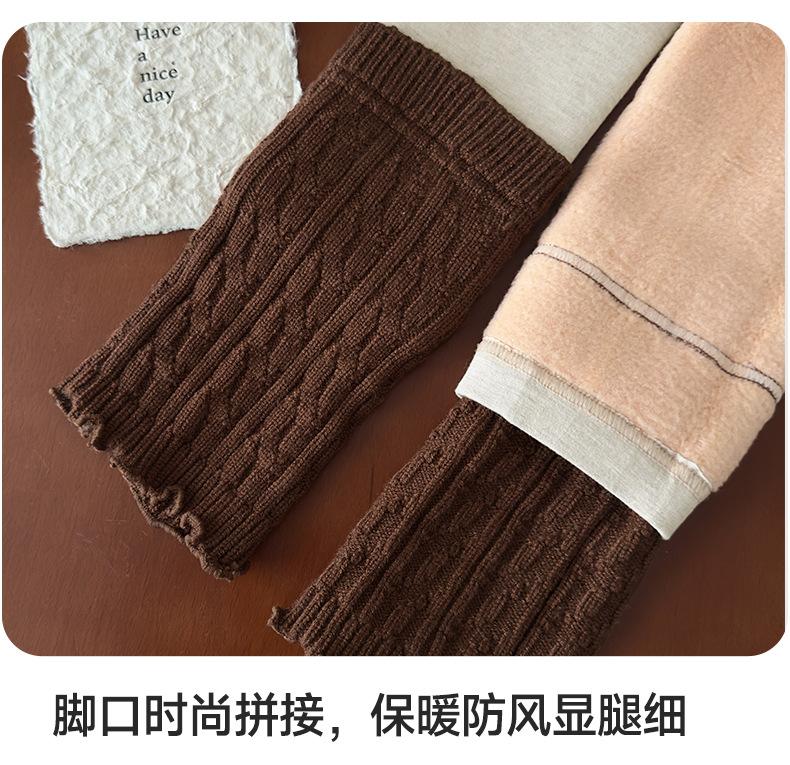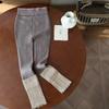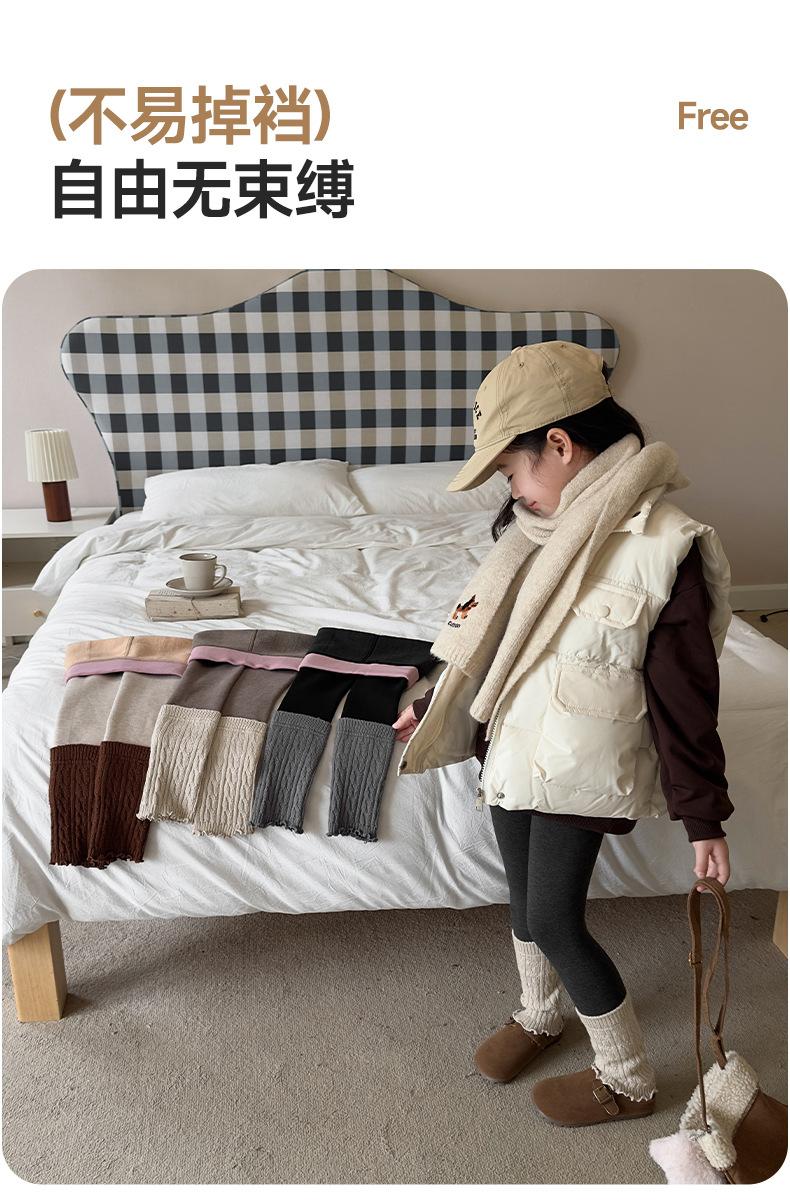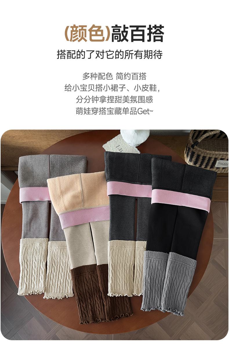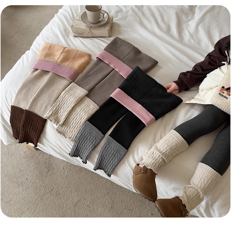 Leggings para niña 2025 invierno nuevo estilo afelpadas gruesas punto de cable falso patchwork para niños pantalones nueve puntos ropa exterior