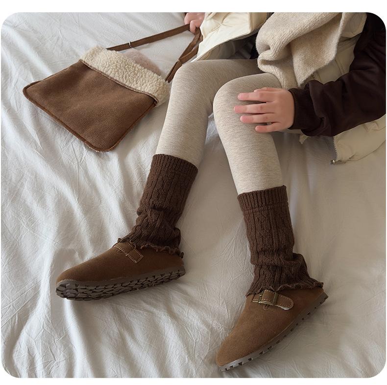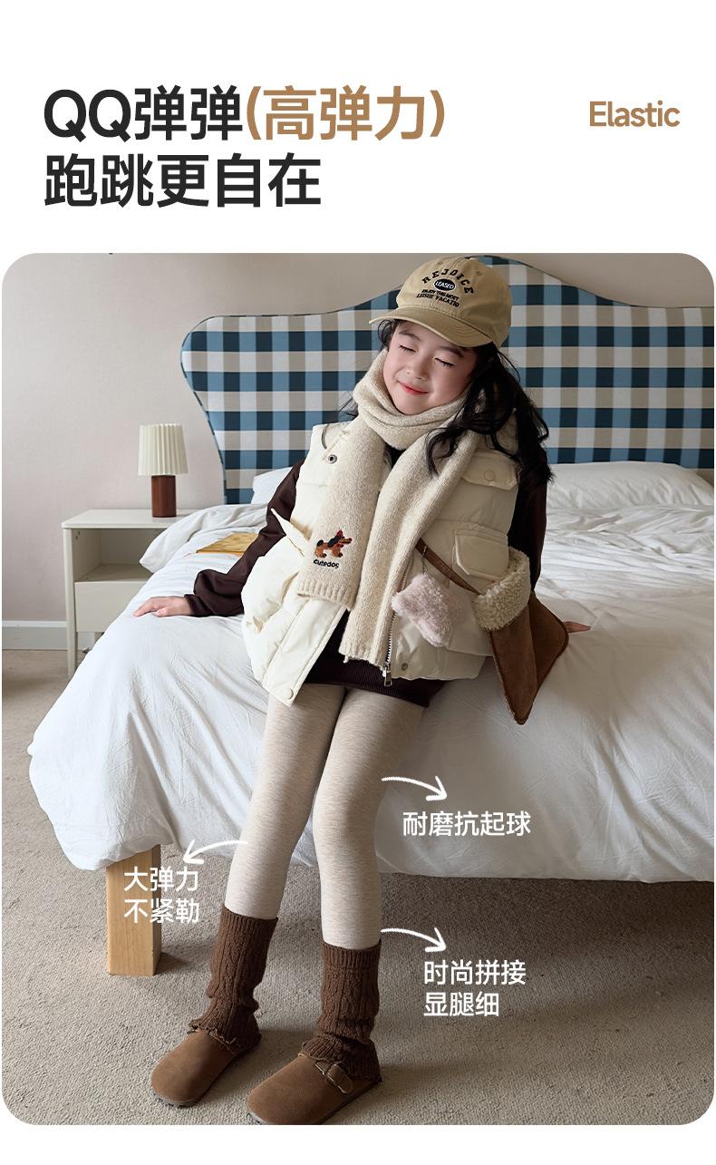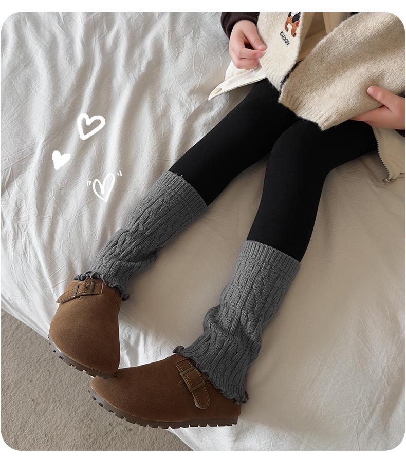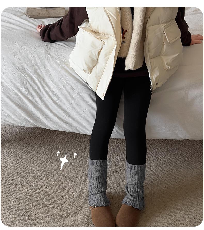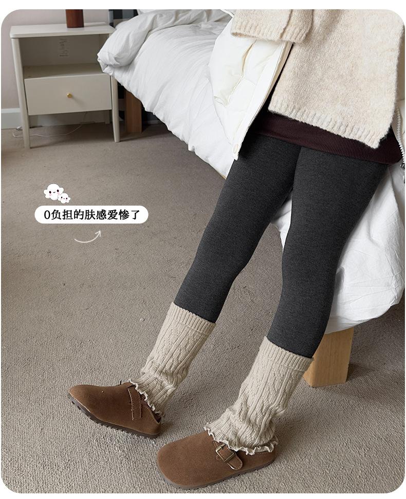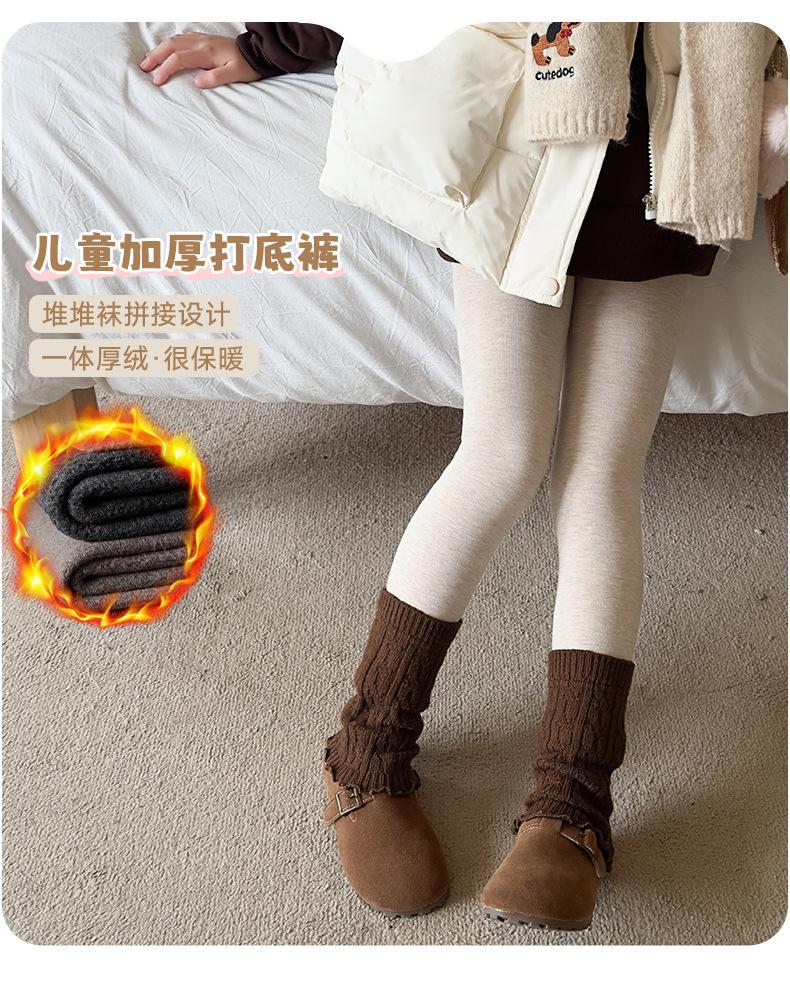 Leggings para niña 2025 invierno nuevo estilo afelpadas gruesas punto de cable falso patchwork para niños pantalones nueve puntos ropa exterior