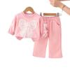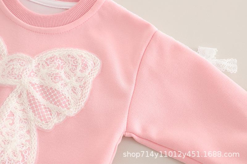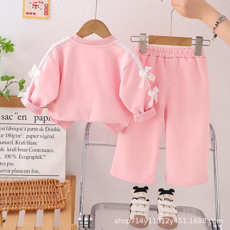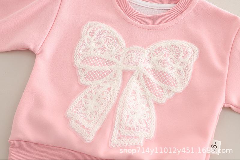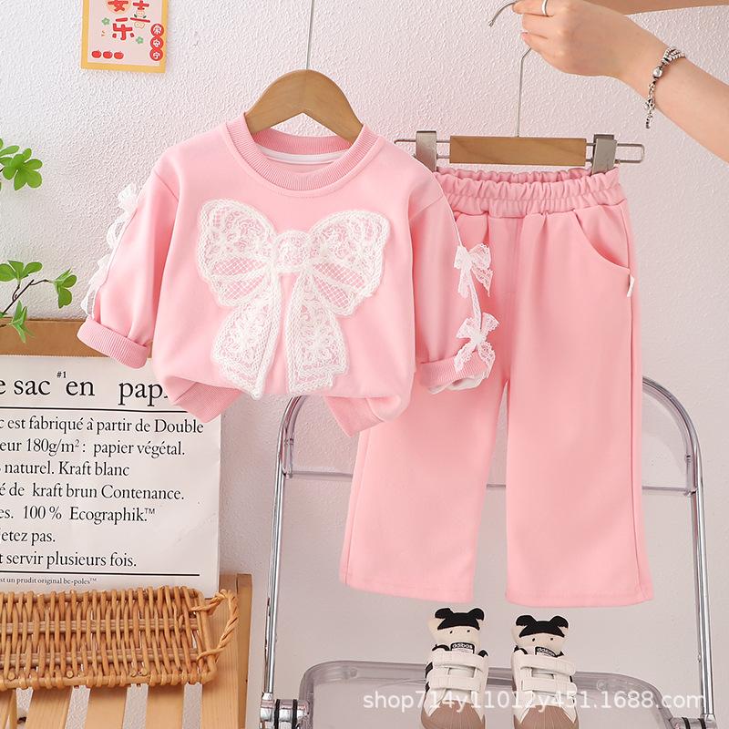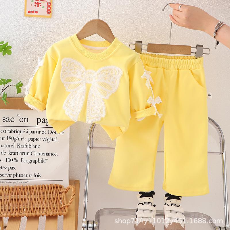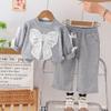 Conjunto de dos piezas de sudadera casual para niña 2025 nuevo moderno con lazo grande, conjunto infantil de moda de otoño para bebé