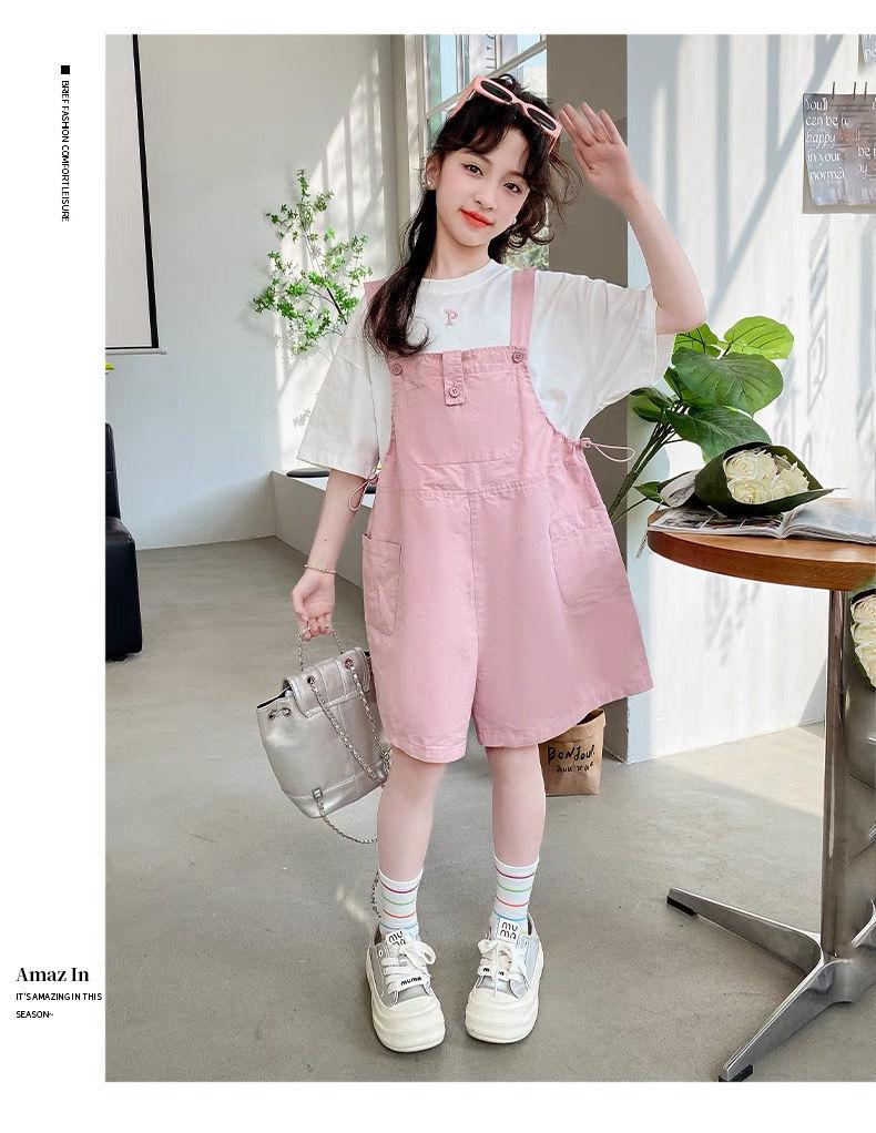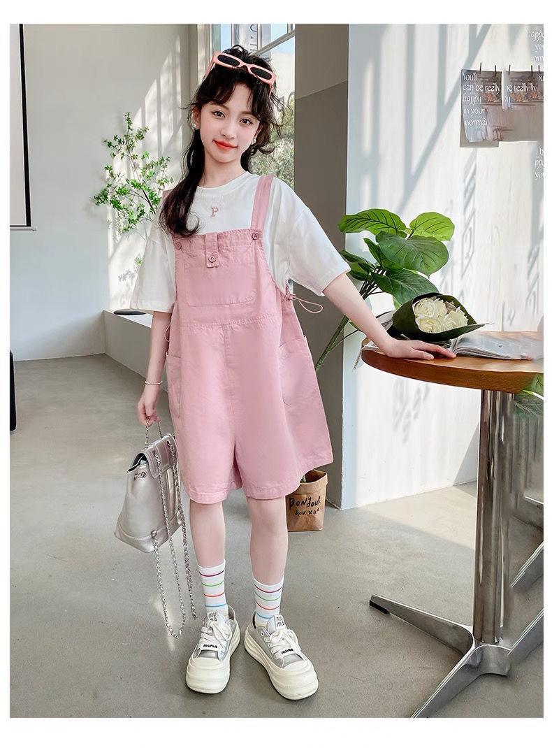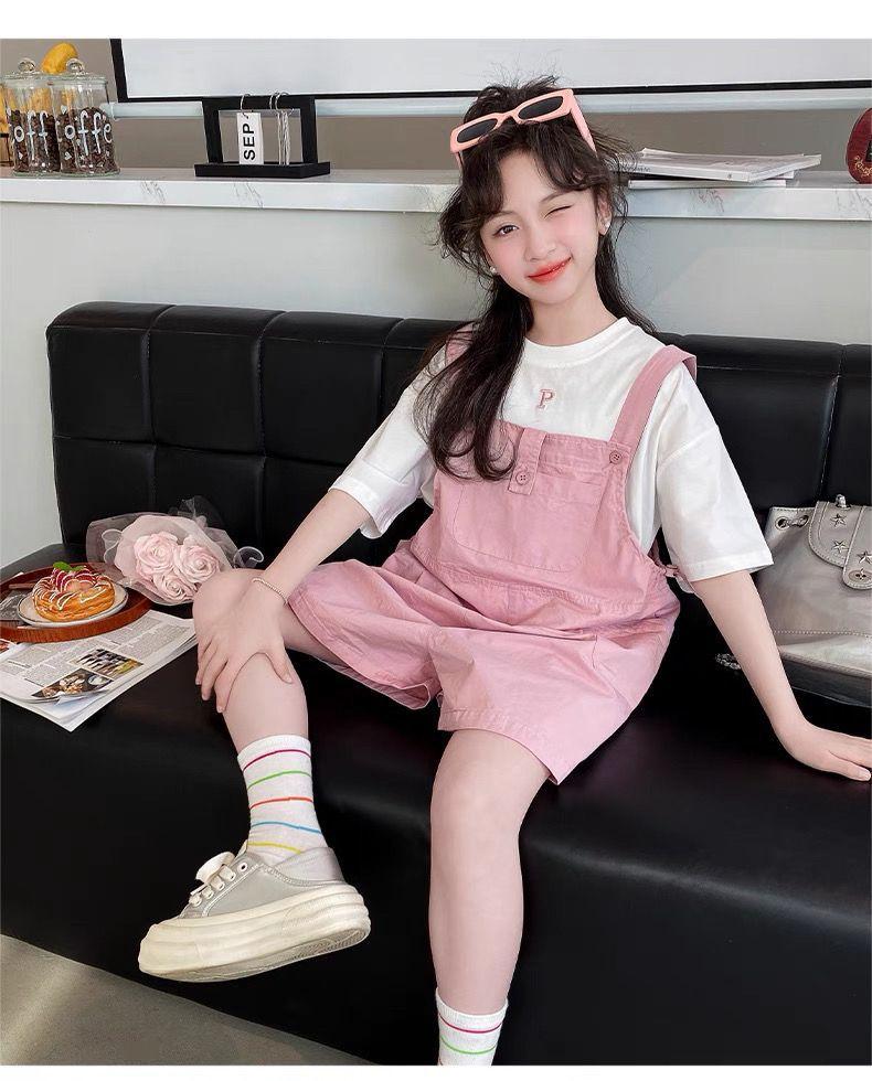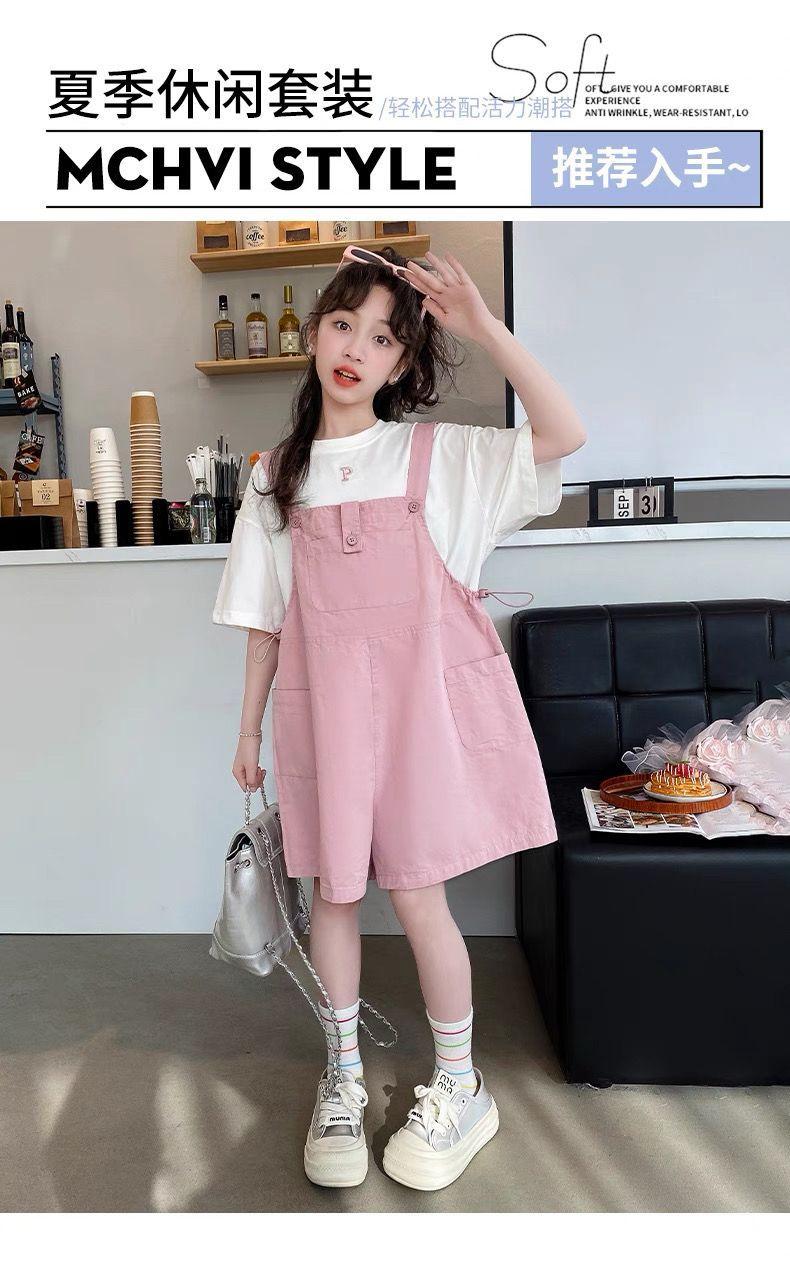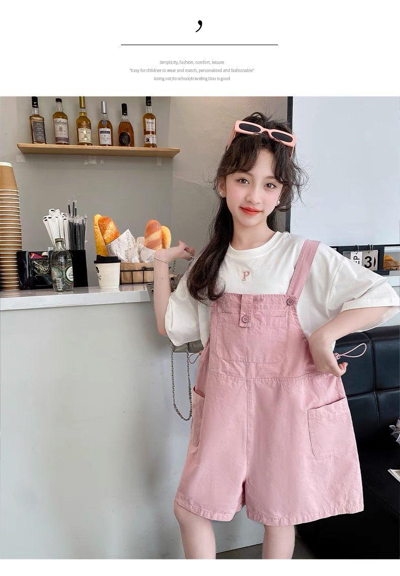 Traje de Overol para Niñas Verano 2025 Nuevo Estilo Ropa para Niños Shorts de Verano Set de Dos Piezas de Manga Corta para Niñas