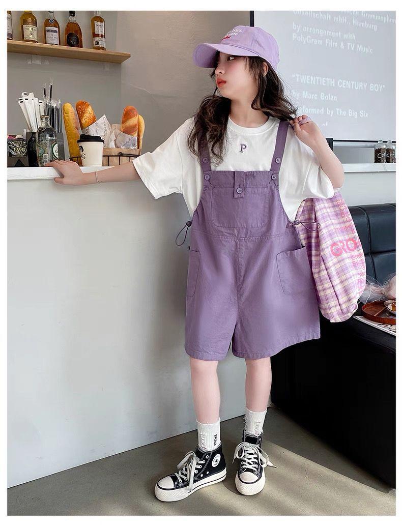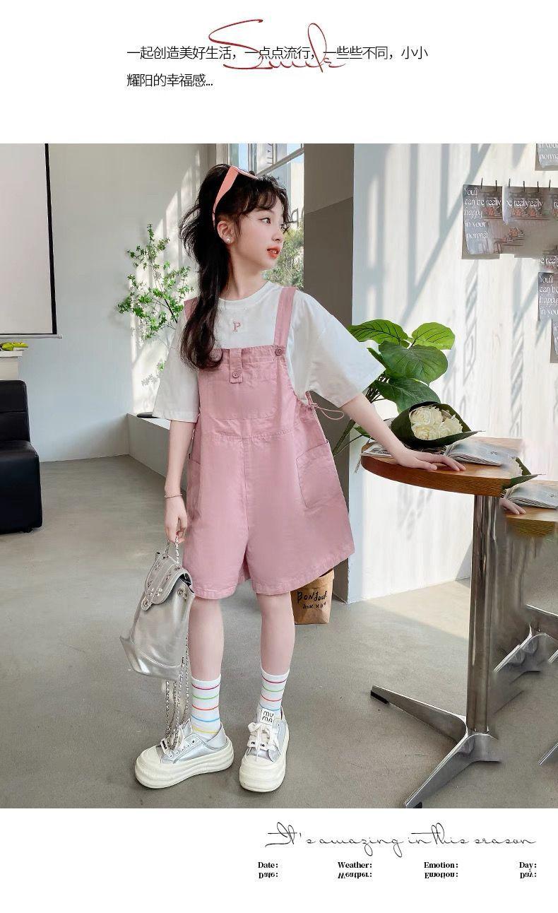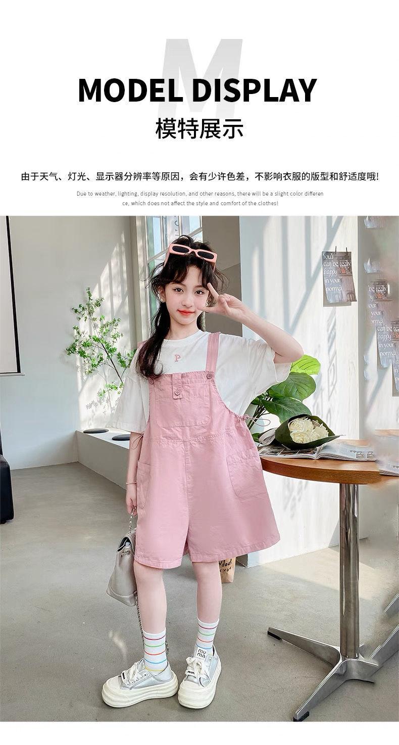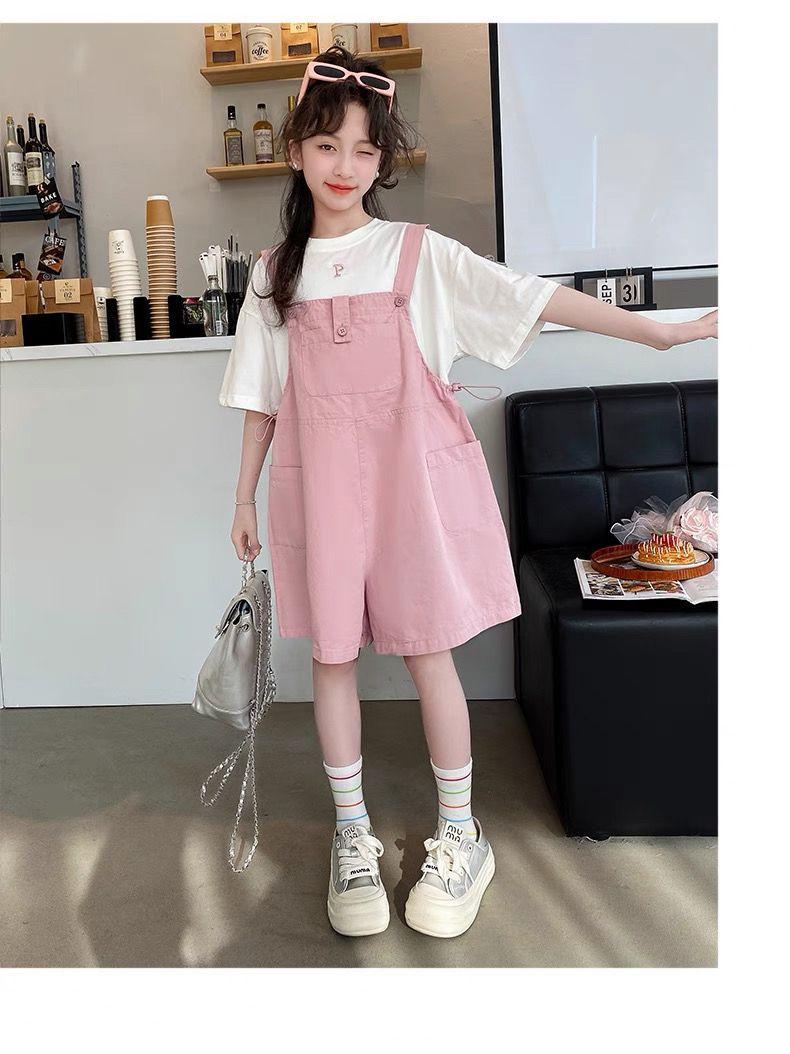 Traje de Overol para Niñas Verano 2025 Nuevo Estilo Ropa para Niños Shorts de Verano Set de Dos Piezas de Manga Corta para Niñas