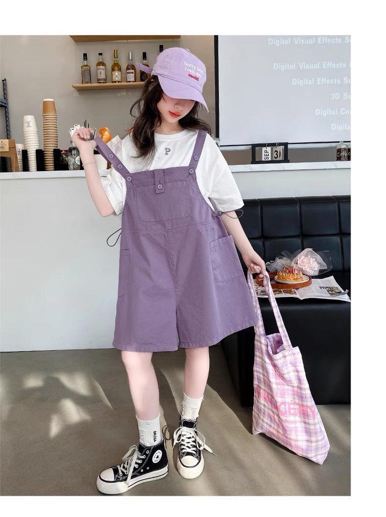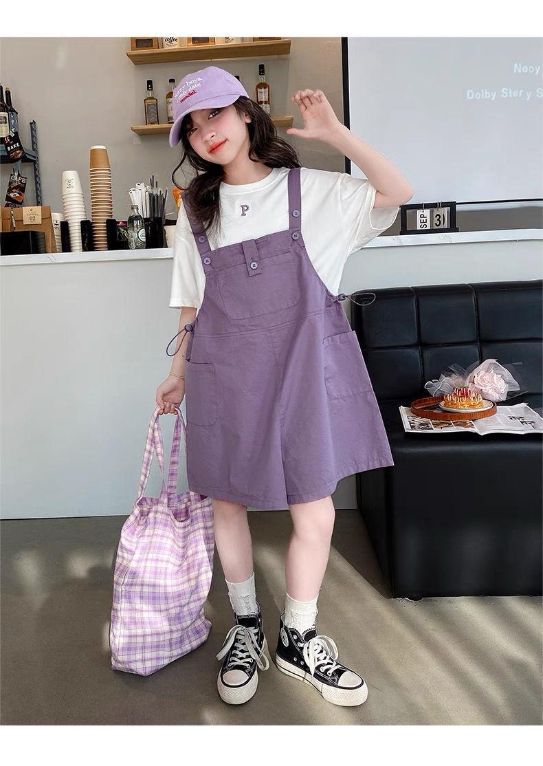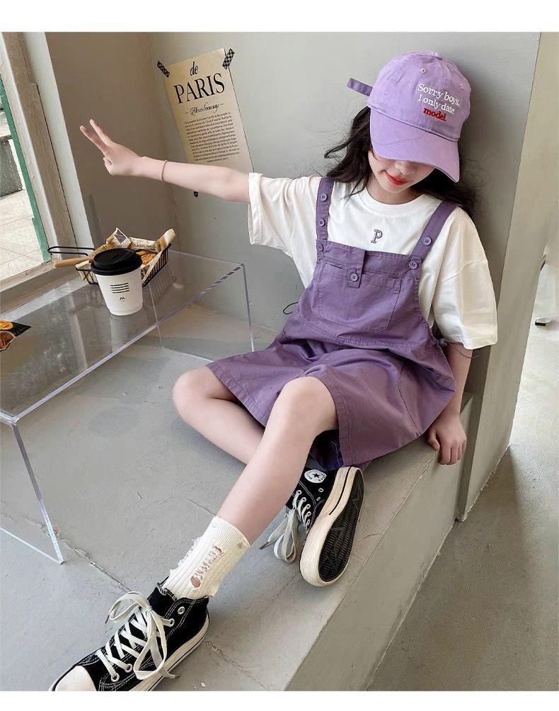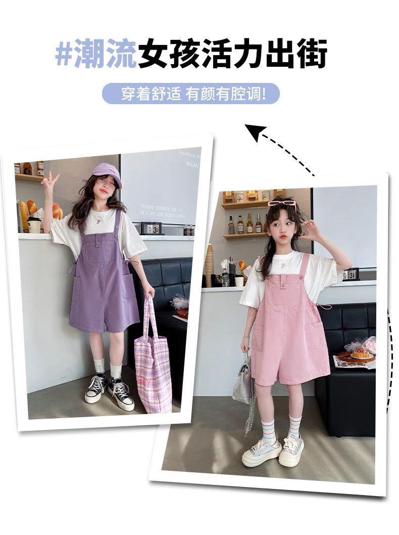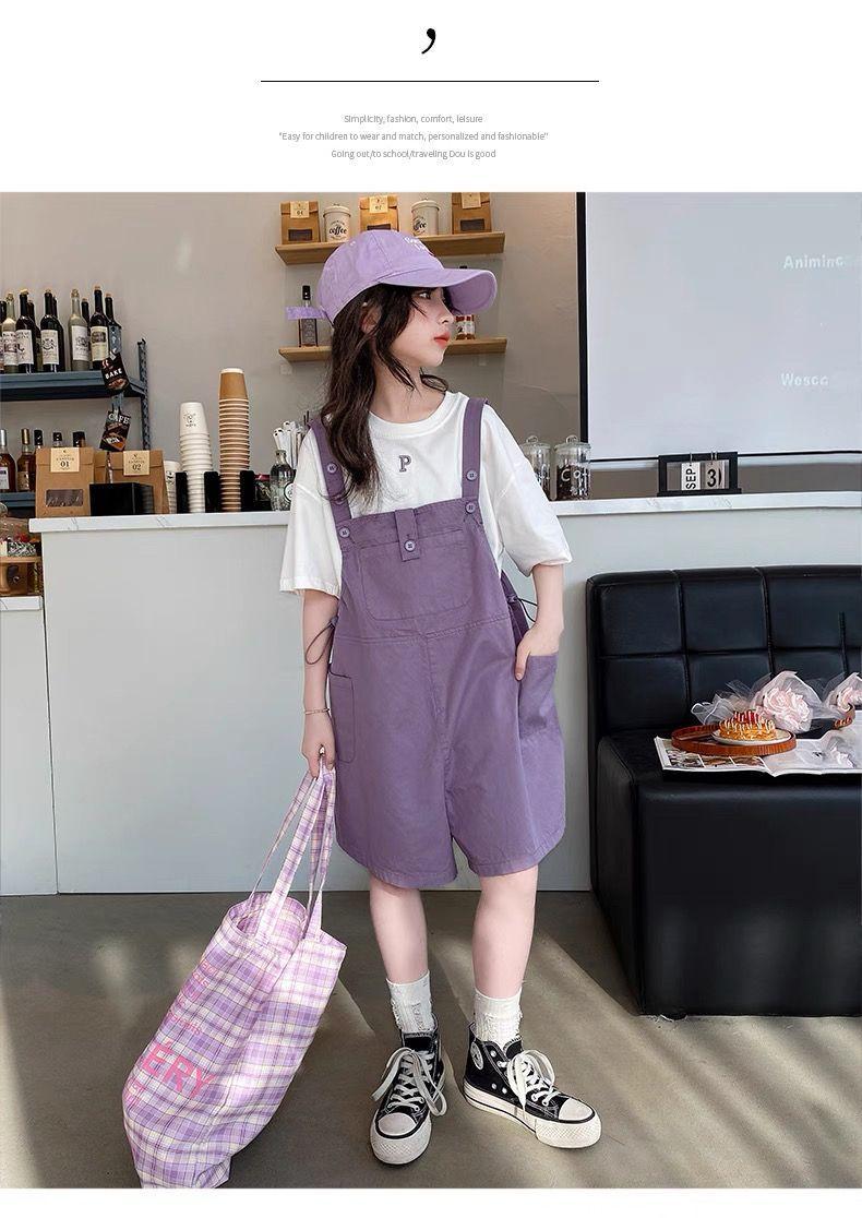 Traje de Overol para Niñas Verano 2025 Nuevo Estilo Ropa para Niños Shorts de Verano Set de Dos Piezas de Manga Corta para Niñas