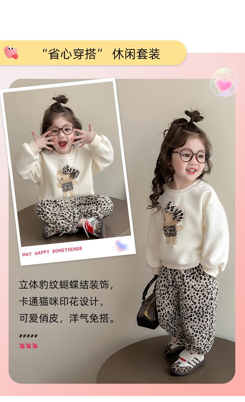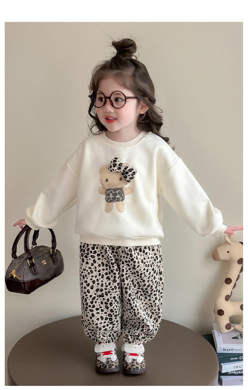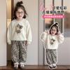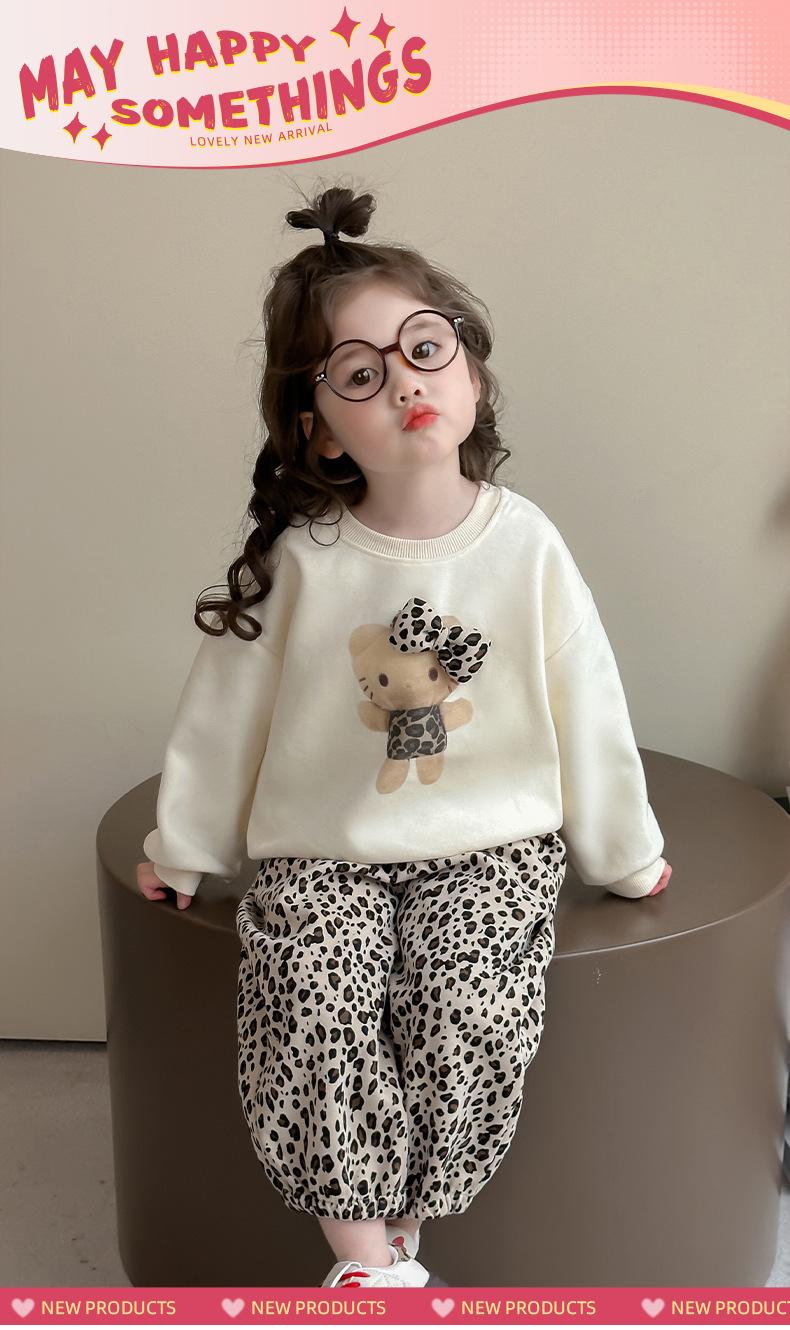 Conjunto de Sudadera para Niñas Primavera 2025 Nuevo Estilo Bebé Niña Primavera Moda Estampado de Leopardo Niñas Niños Primavera y Otoño