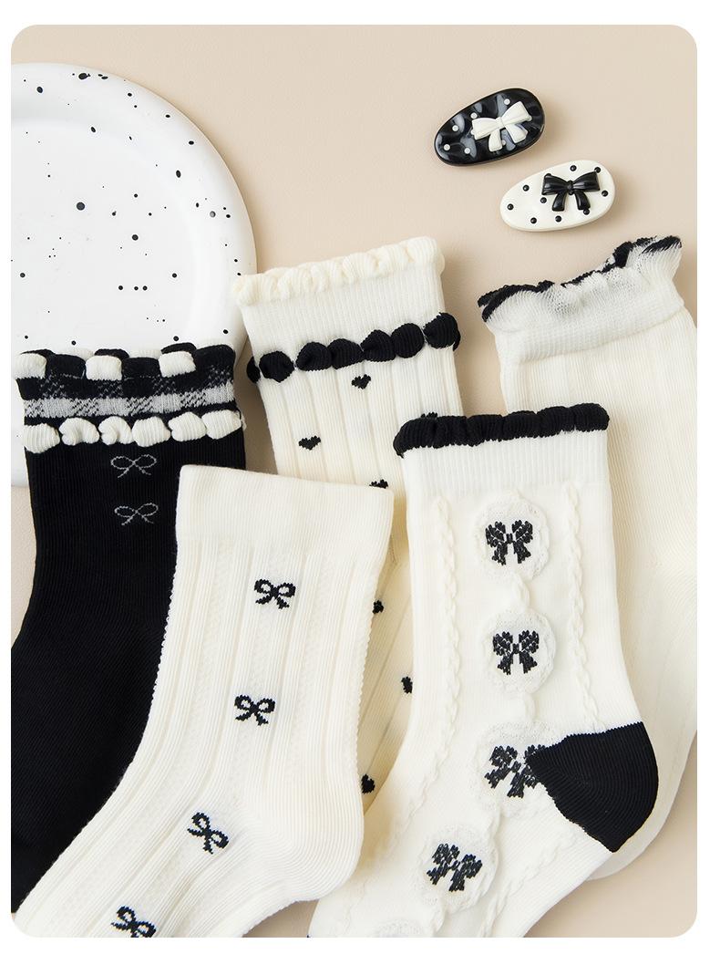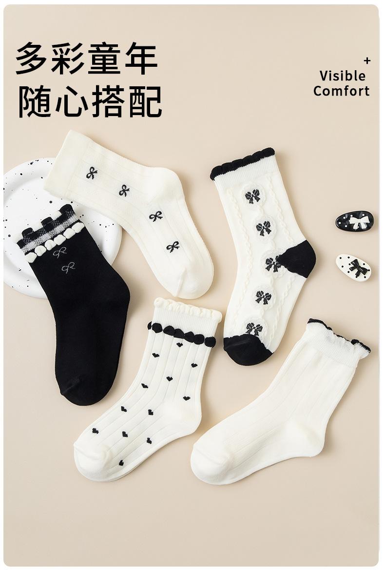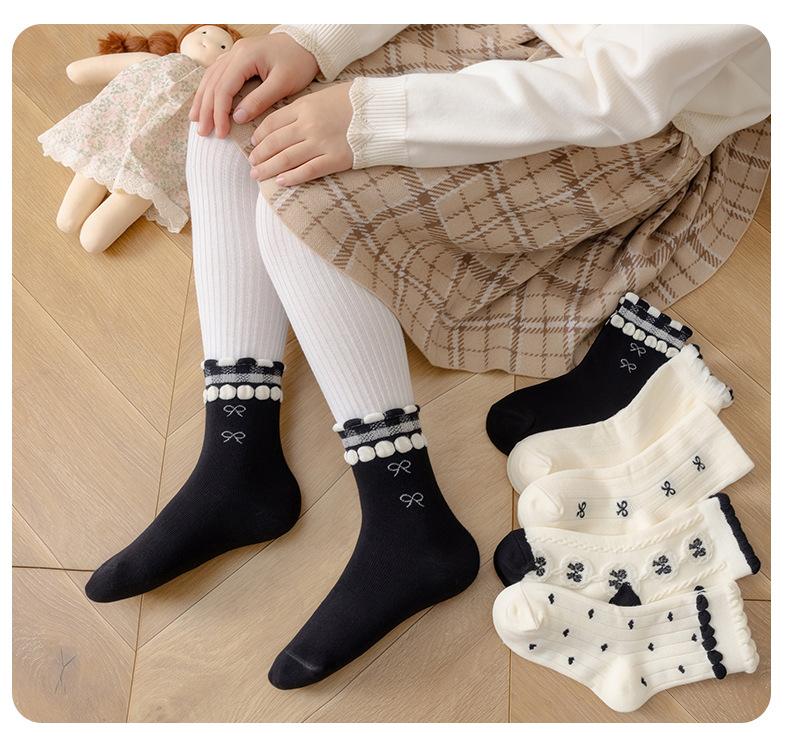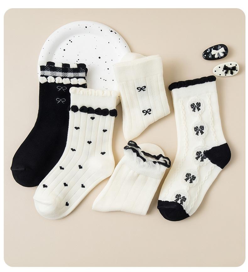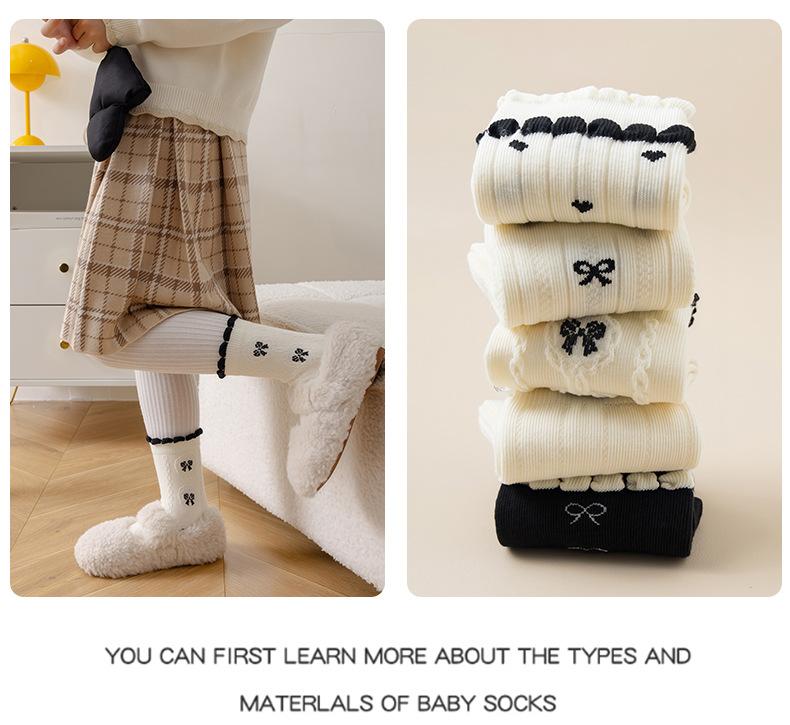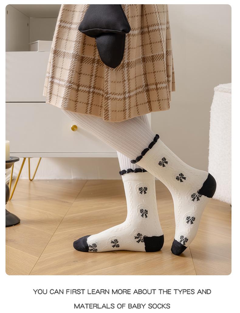 Calcetines para Niñas Otoño Nuevo Estilo Coreano Dulces Calcetines de Media Caña Blanco y Negro Lazo Algodón Calcetines para Bebé Otoño Invierno Calcetines para Niños
