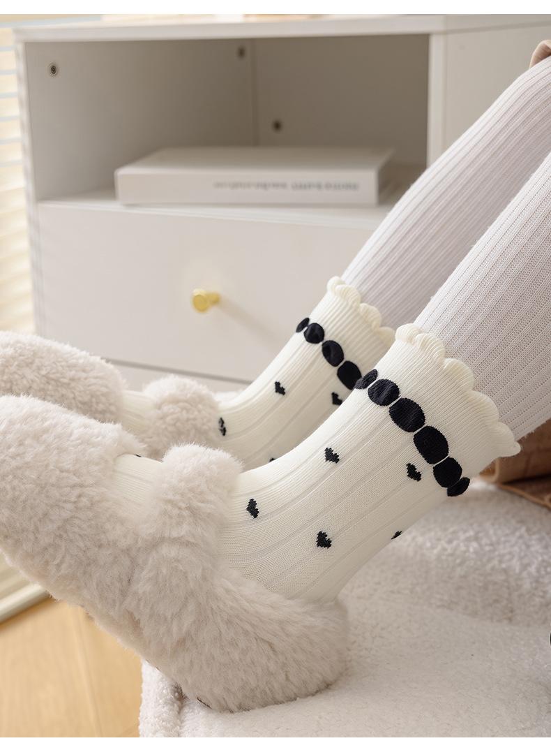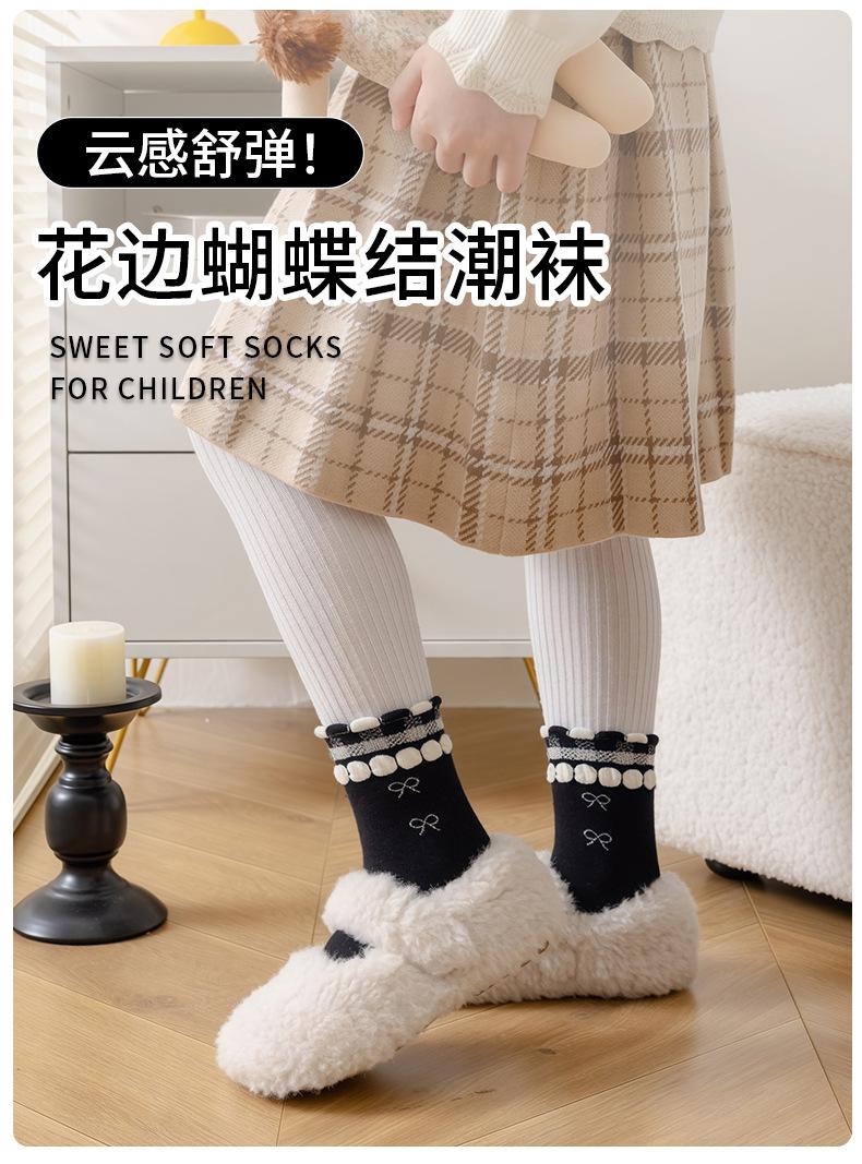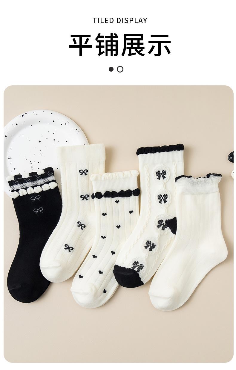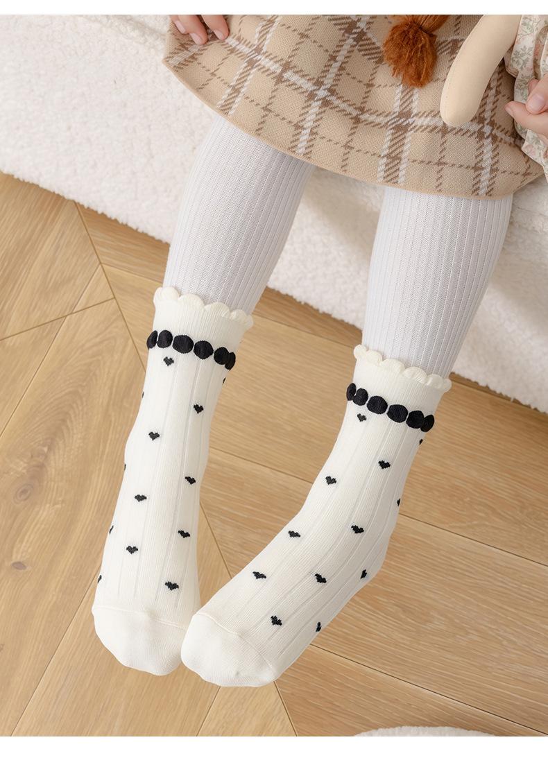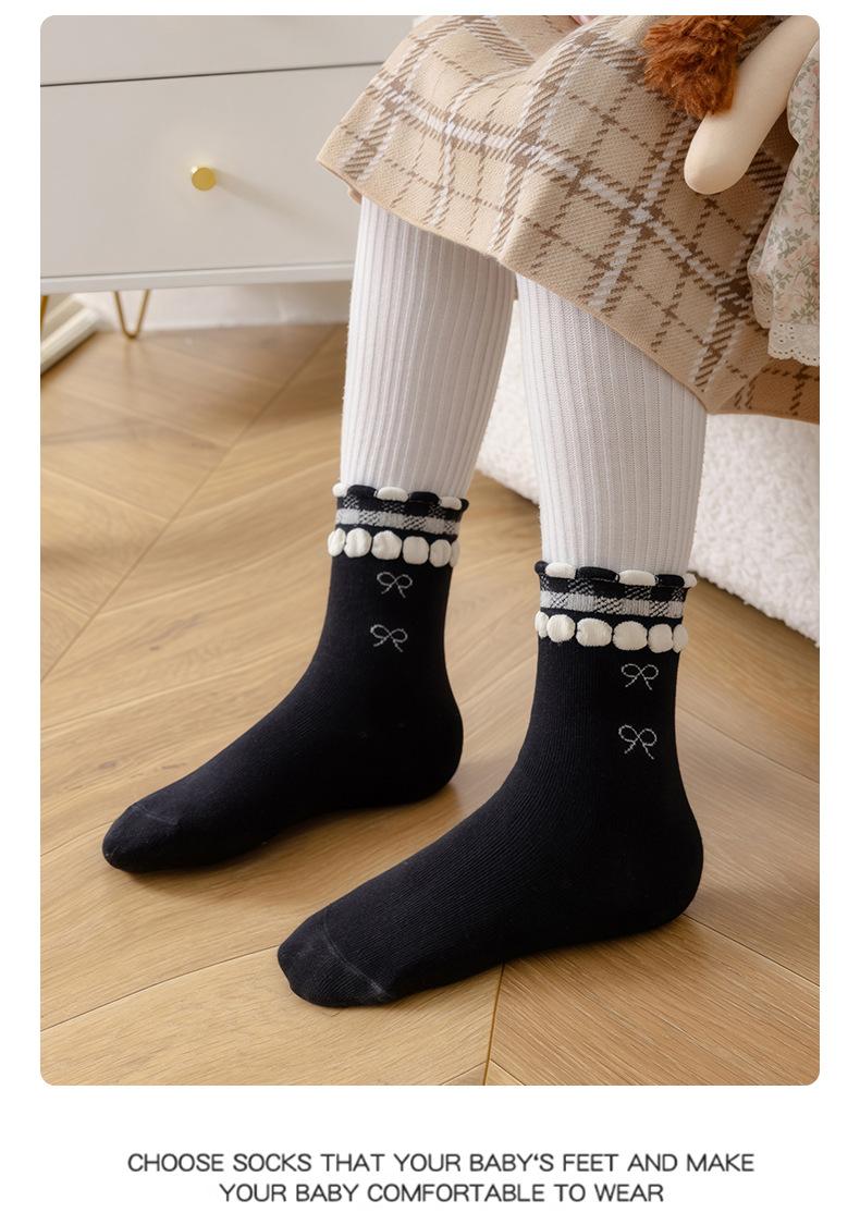 Calcetines para Niñas Otoño Nuevo Estilo Coreano Dulces Calcetines de Media Caña Blanco y Negro Lazo Algodón Calcetines para Bebé Otoño Invierno Calcetines para Niños