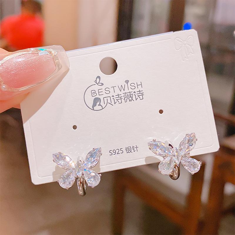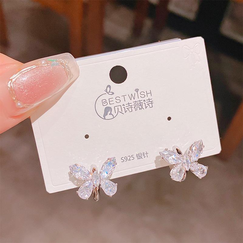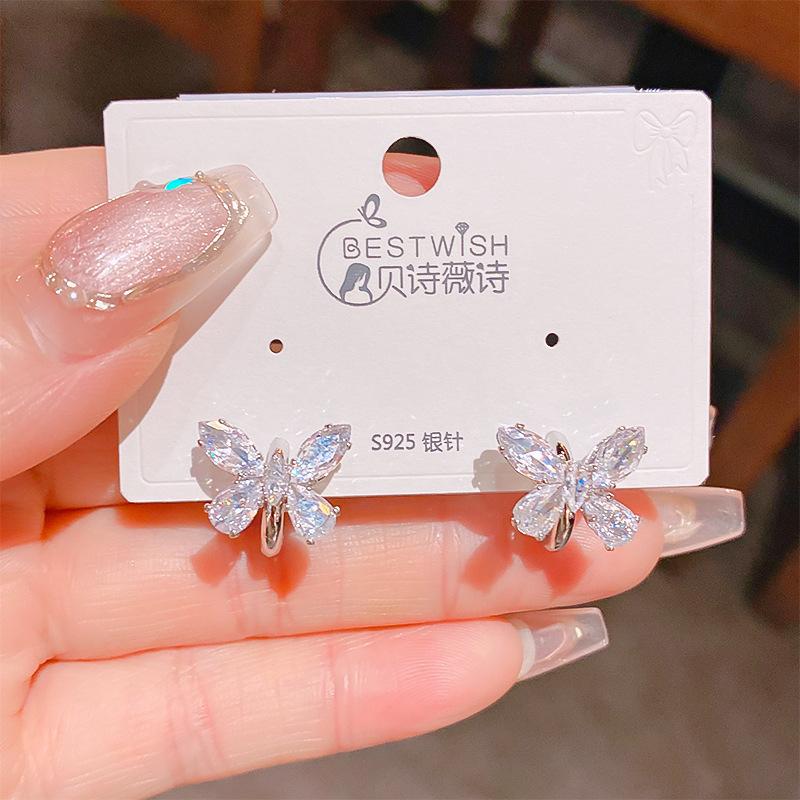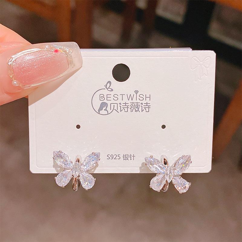 Aretes de Mariposa de Diamante Súper Brillante de Moda Simple Exquisita Francesa Estilo Ins Moda Elegante Todo Combinable Joyería para la Oreja
