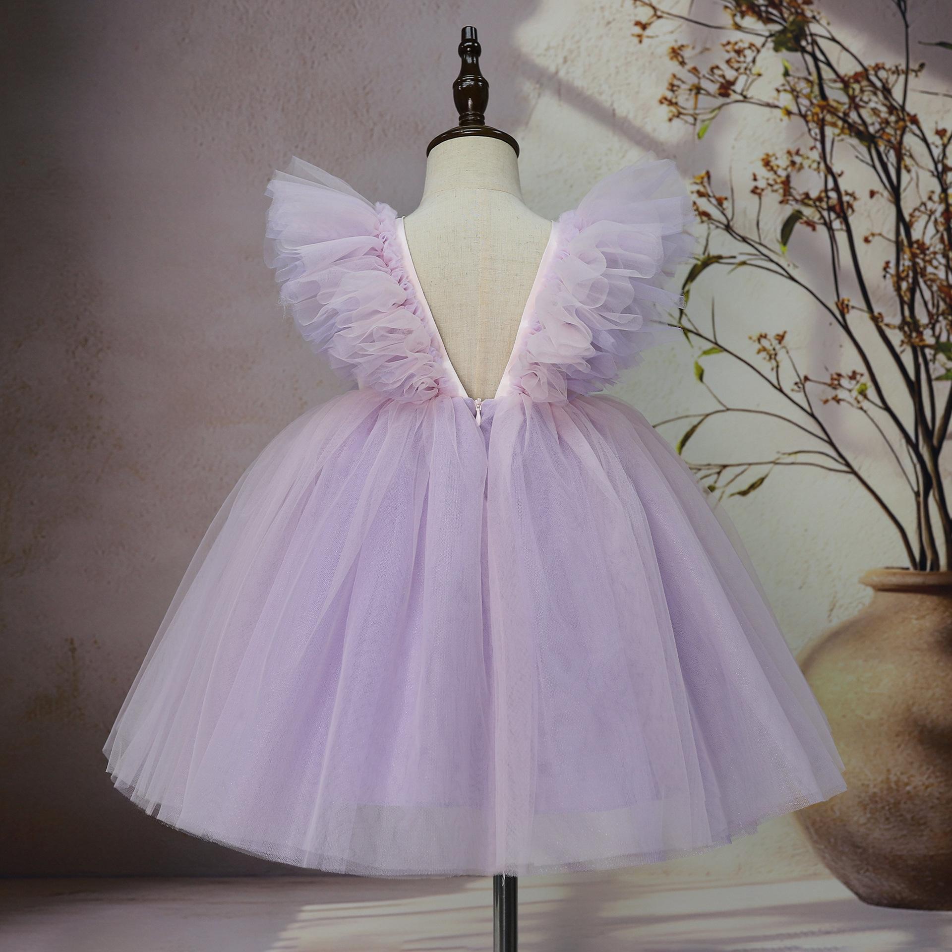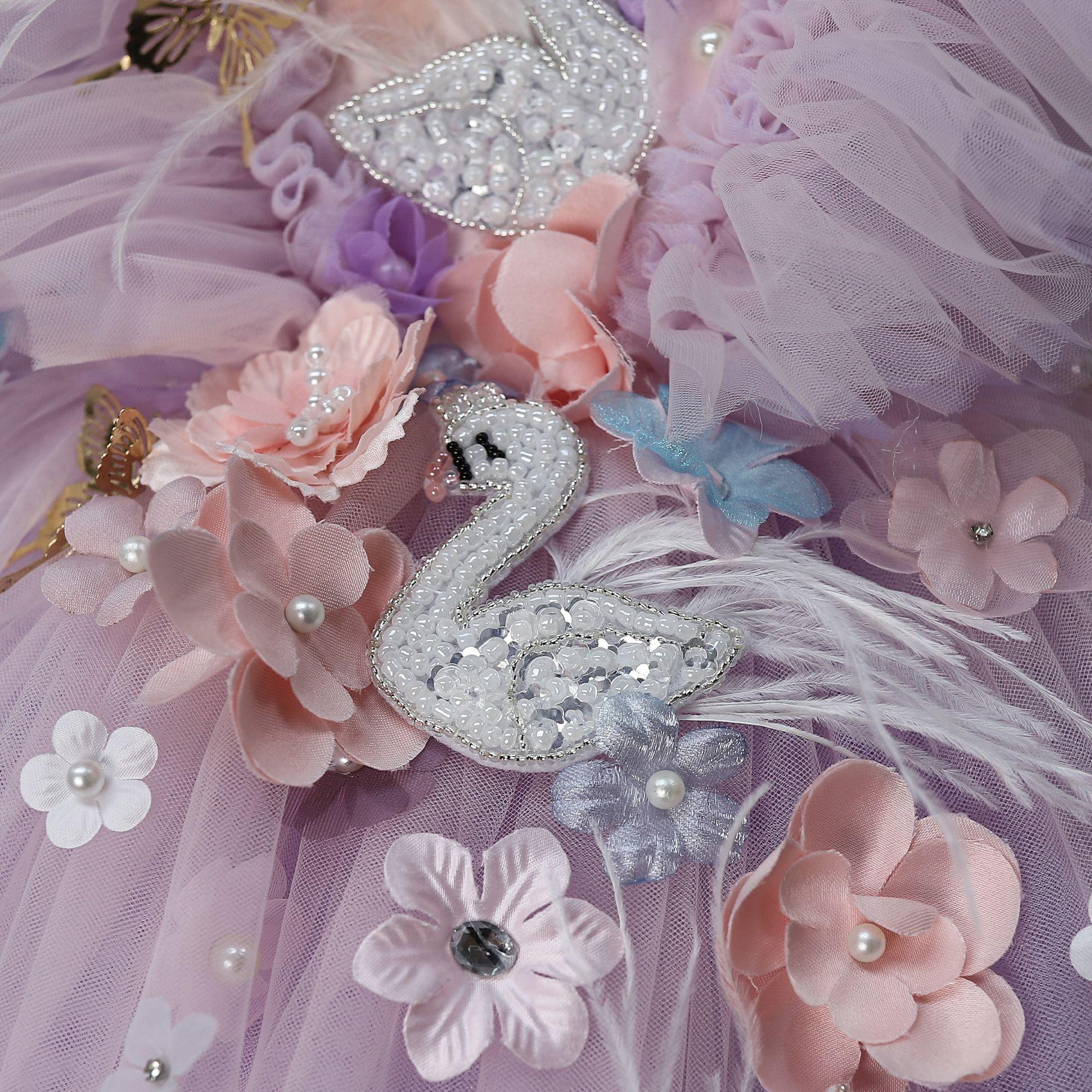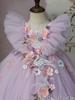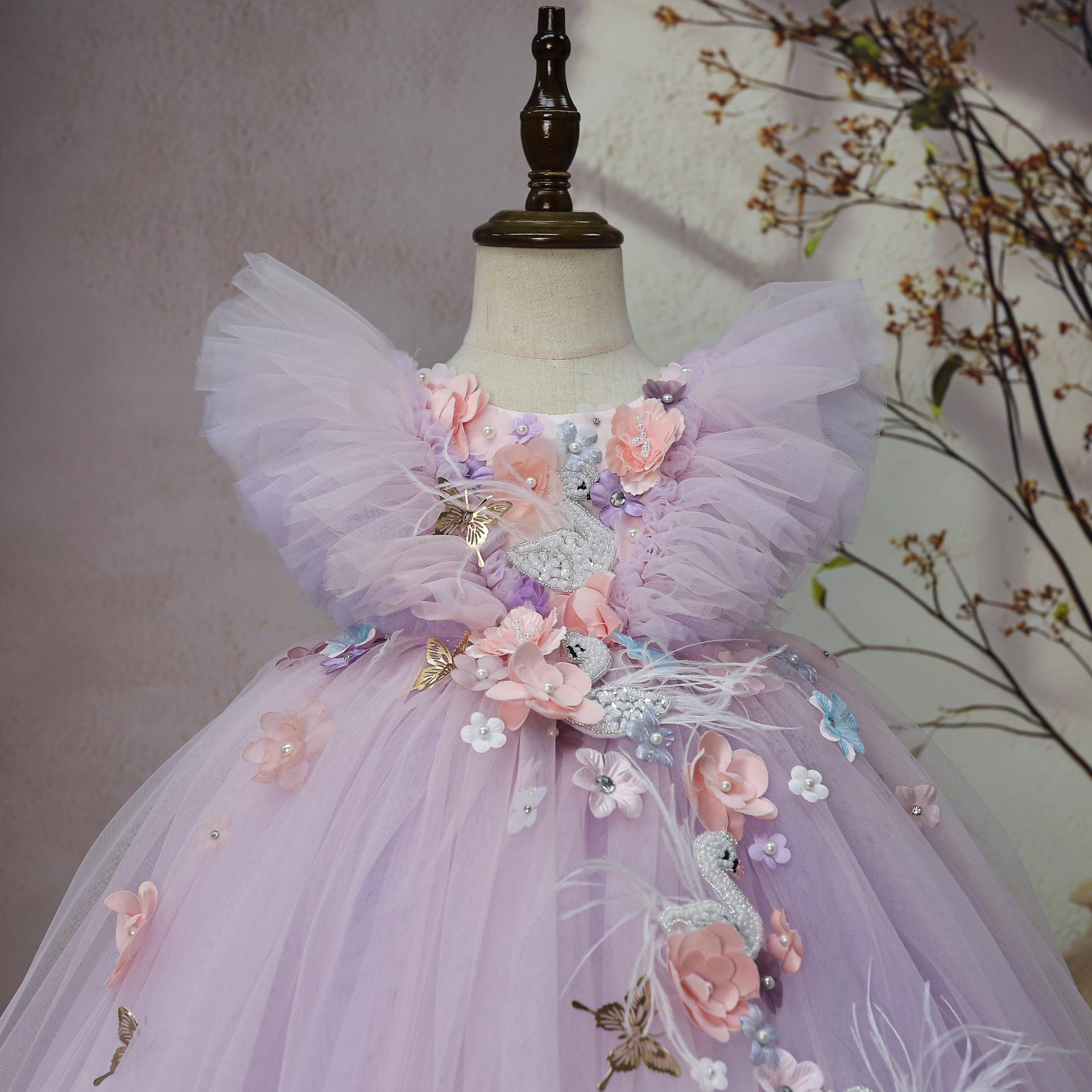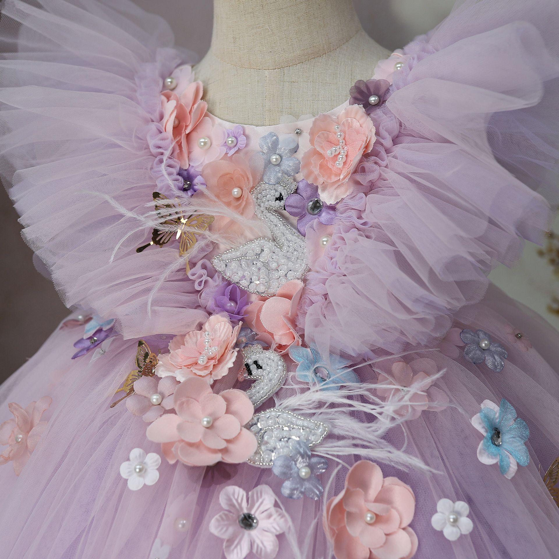 Vestido Formal para Niños Flores Súper Hada Moderno Cumpleaños Dama de Honor Boda Falda de Tul Abullonada Plumas Lolita Niñas Vestido de Princesa