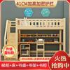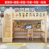 Cama Alta con Escritorio, Cama Combinada Multifuncional de Madera Maciza, Litera Infantil de Doble Piso con Escalera y Gabinete