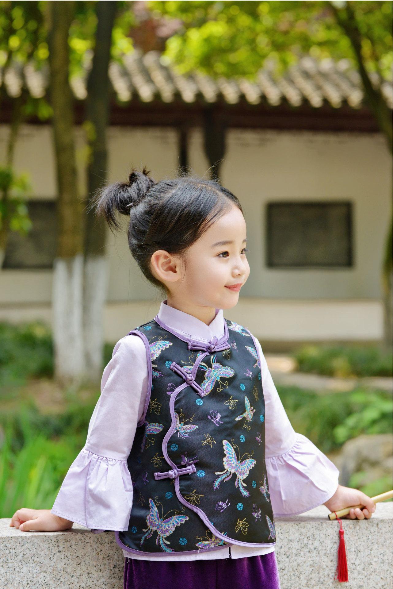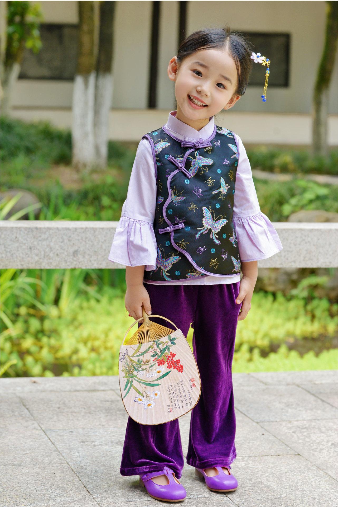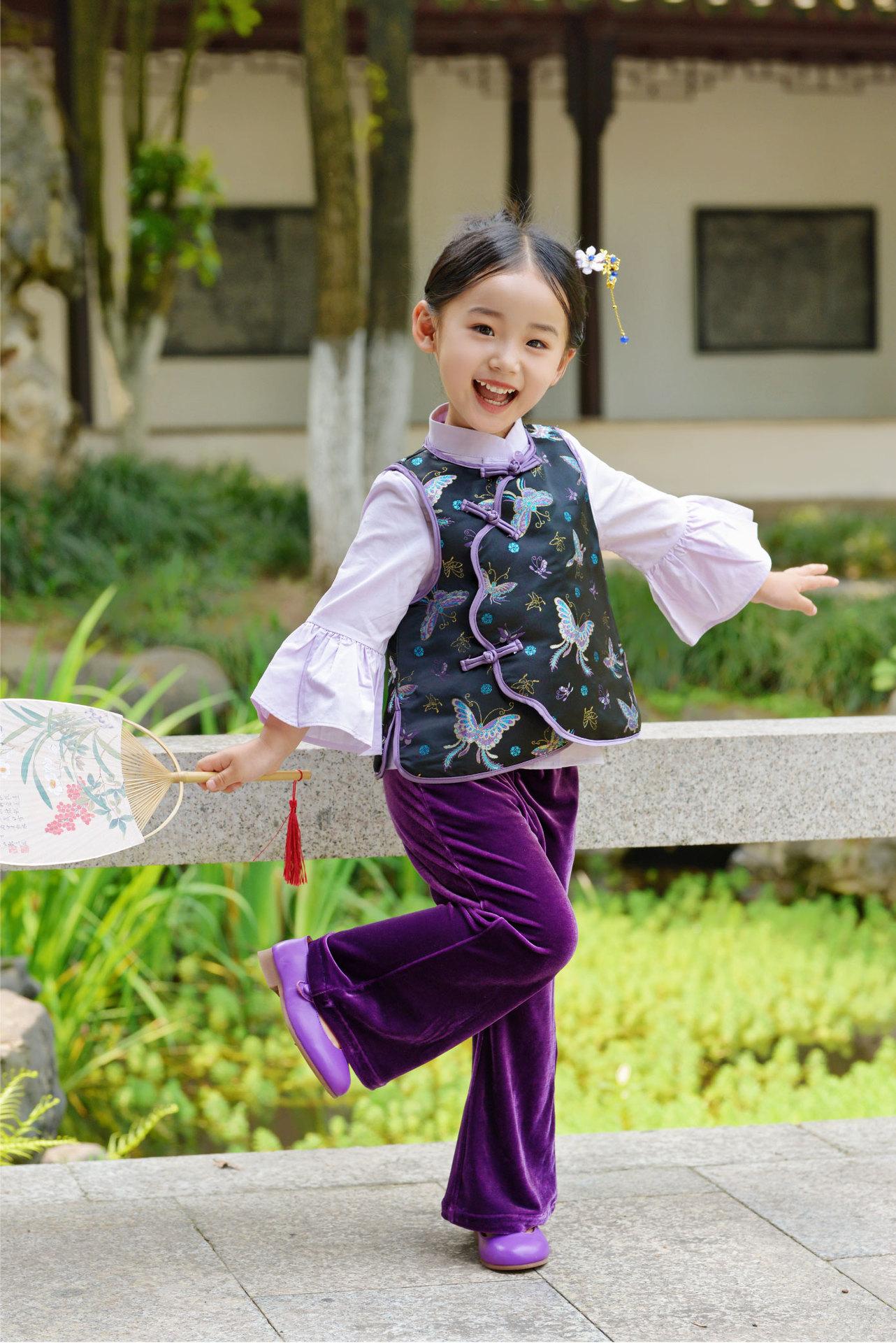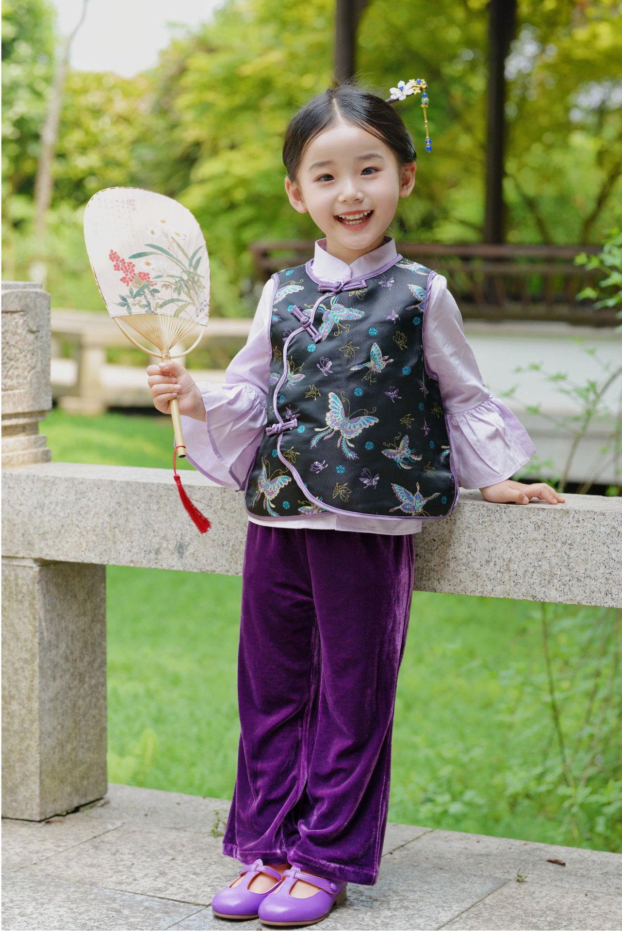 Hanfu para Niñas de Primavera Traje Tang 2025 Nuevo Conjunto Morado Parte Superior Cheongsam para Bebé de Primavera y Otoño