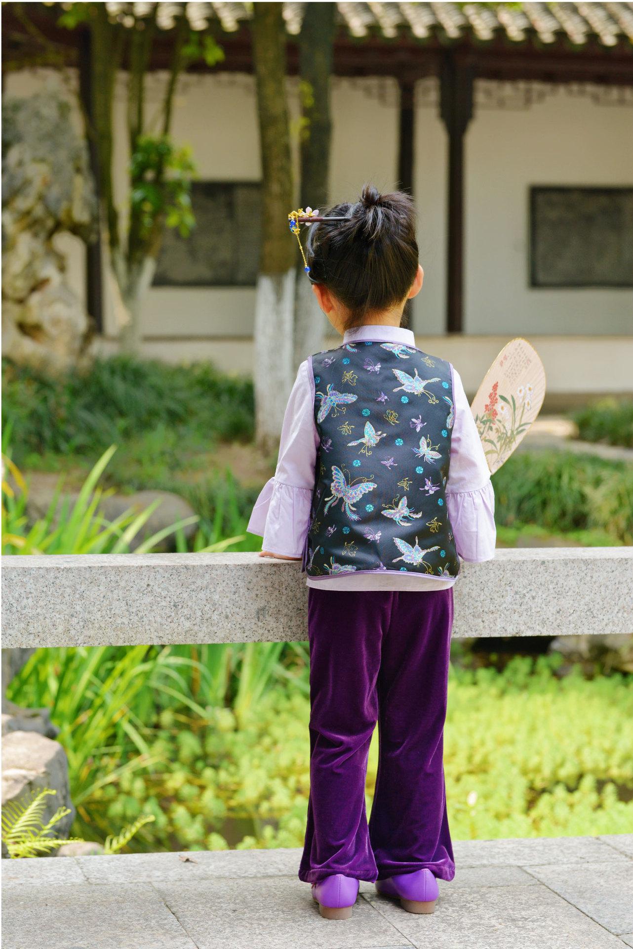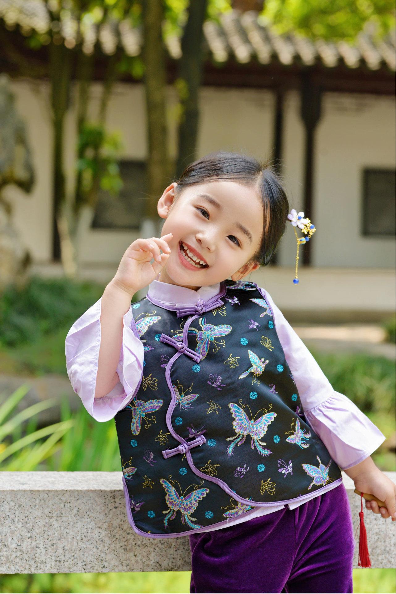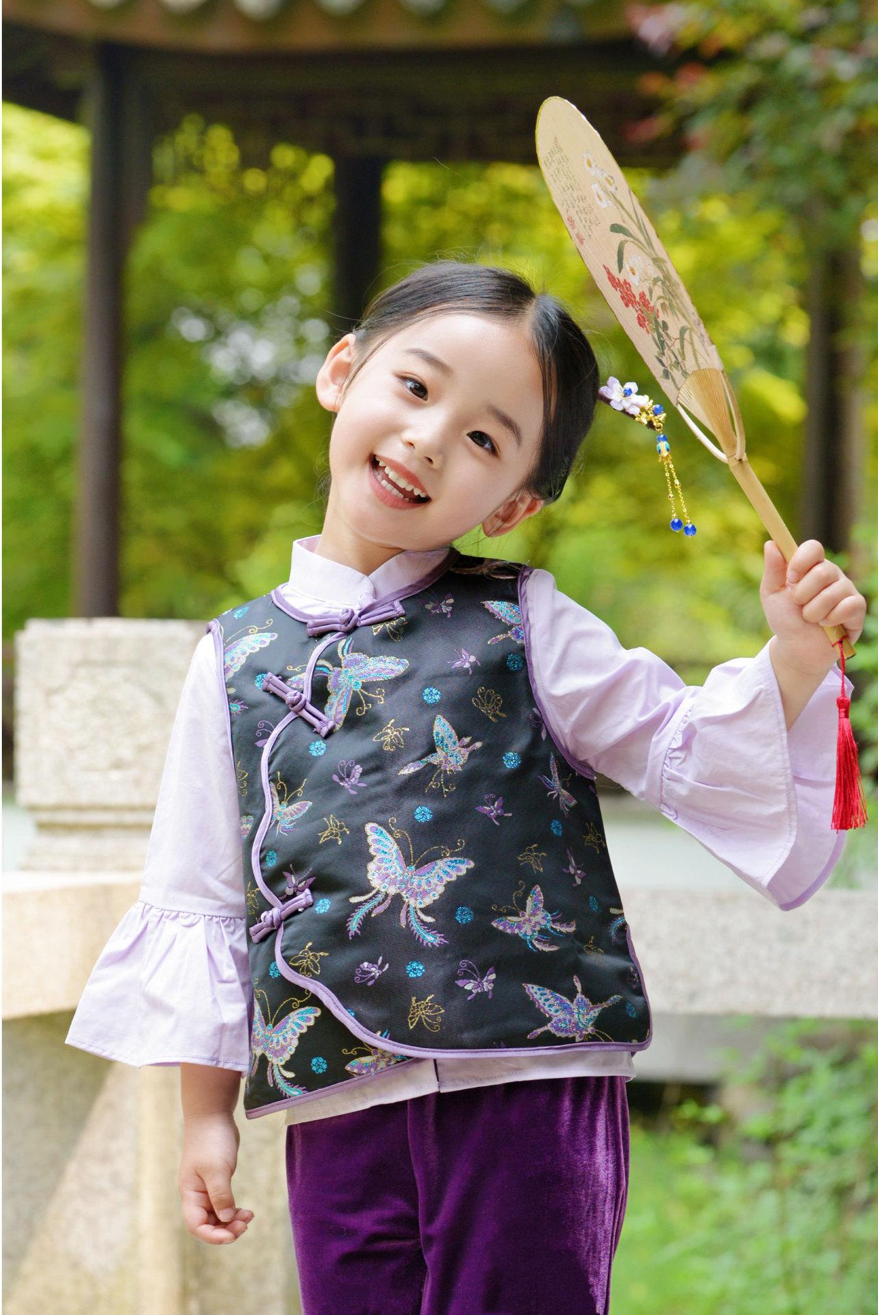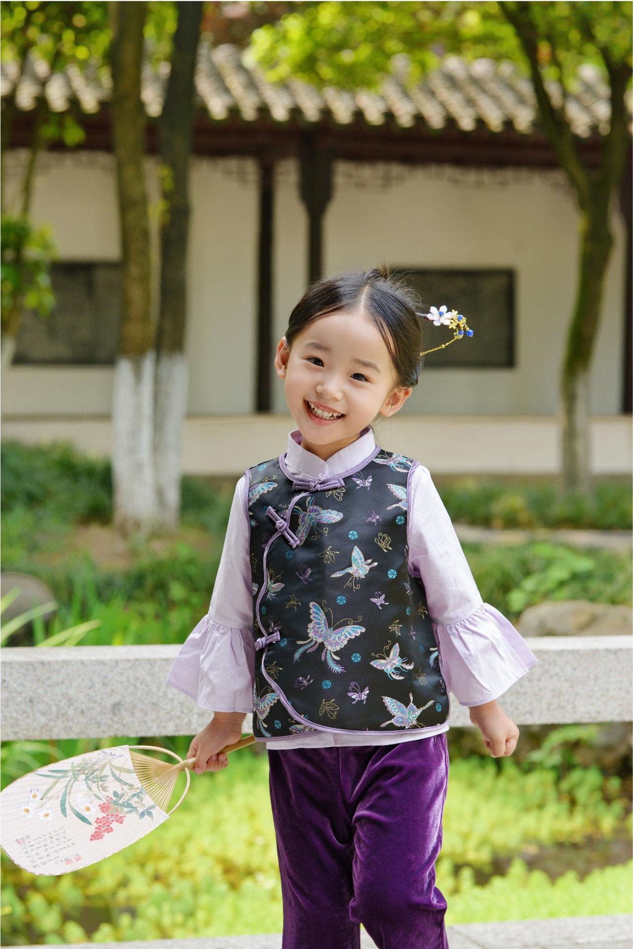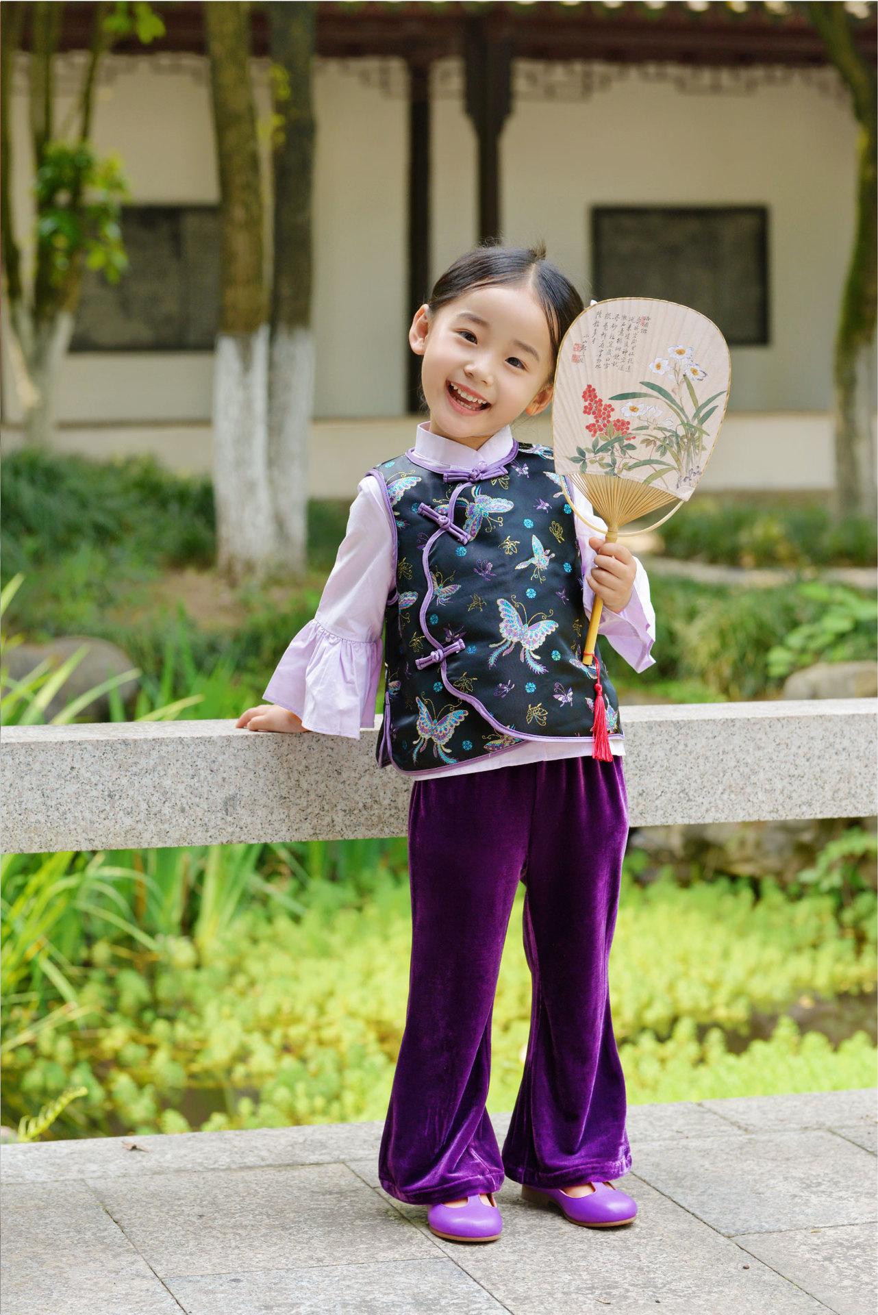 Hanfu para Niñas de Primavera Traje Tang 2025 Nuevo Conjunto Morado Parte Superior Cheongsam para Bebé de Primavera y Otoño