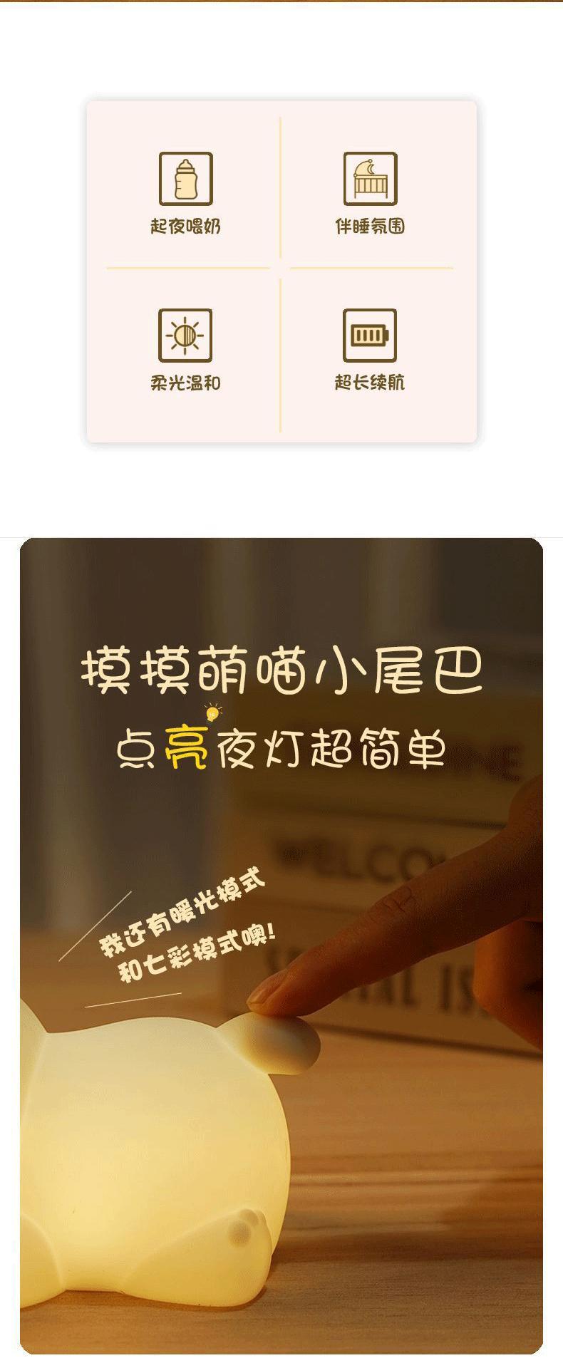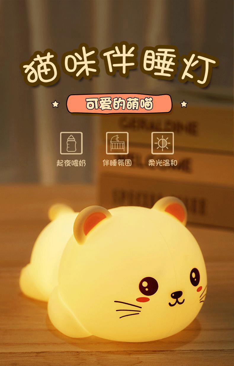 Luz nocturna LED de silicona para gato creativo Luz de palmada LED de noche para niños con luz para dormir protección ocular para bebés luz suave luz ambiental