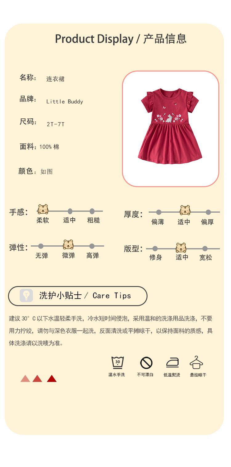 Vestido nuevo para niños littlebuddy transfronterizo, vestido de verano de manga corta para niñas, algodón puro europeo y americano, lindo verano