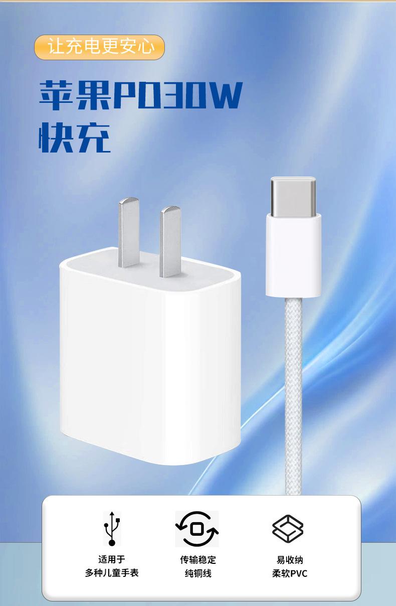 Cargador Rápido de Nitruro de Galio de 30W Adecuado para Apple Estándar Chino 3C Us/Eu/Corea/Reino Unido/Ukca Juego de Cargador para Teléfono Móvil