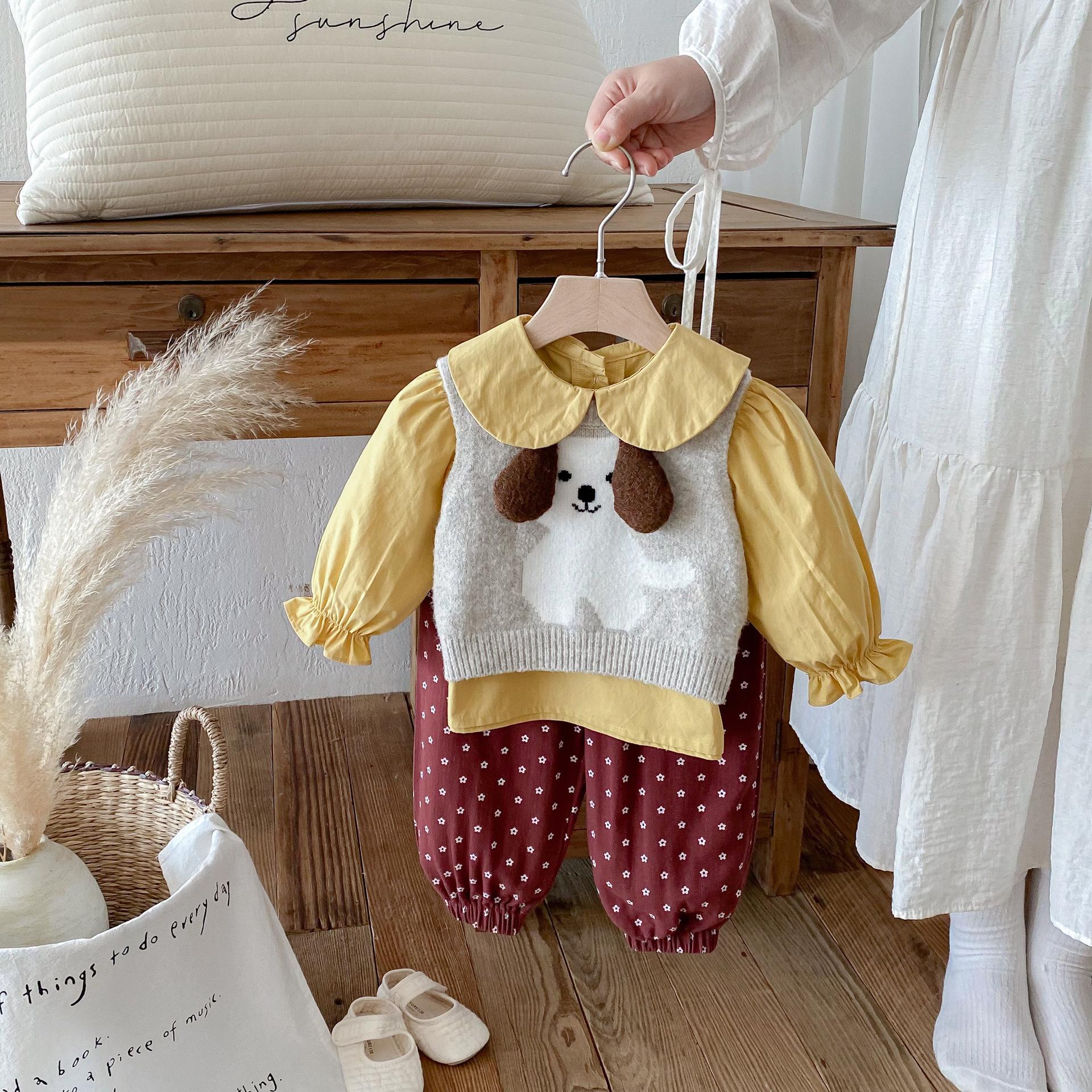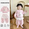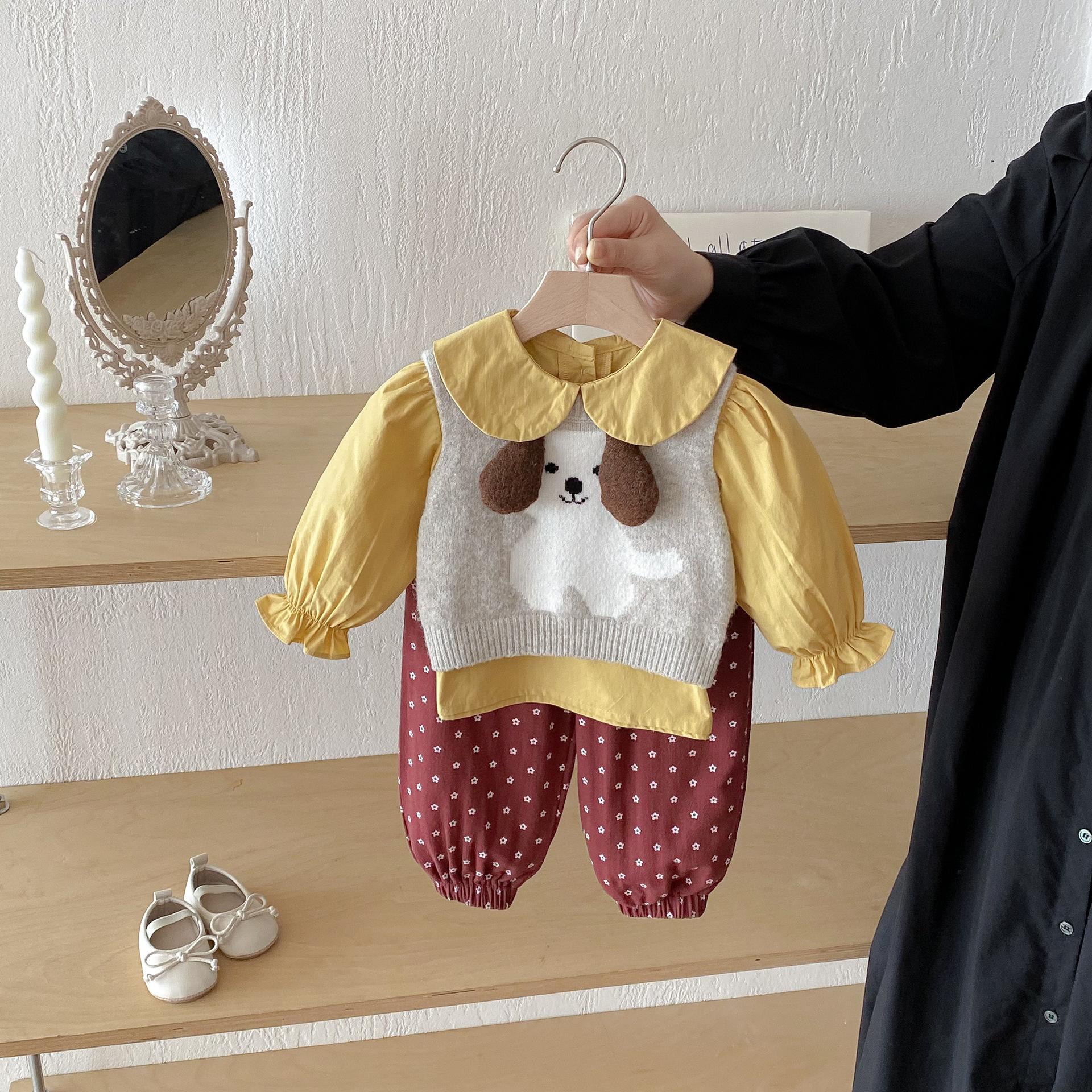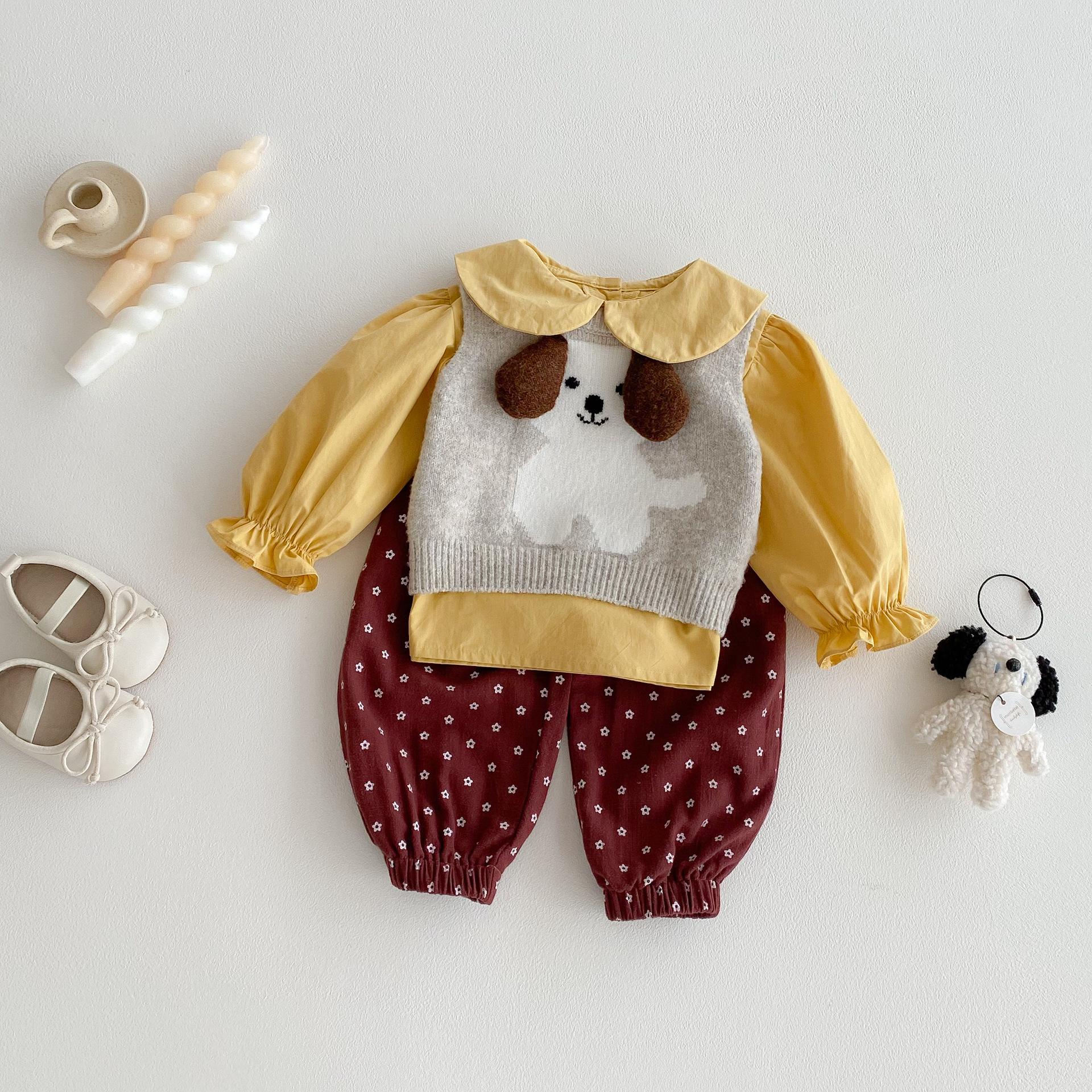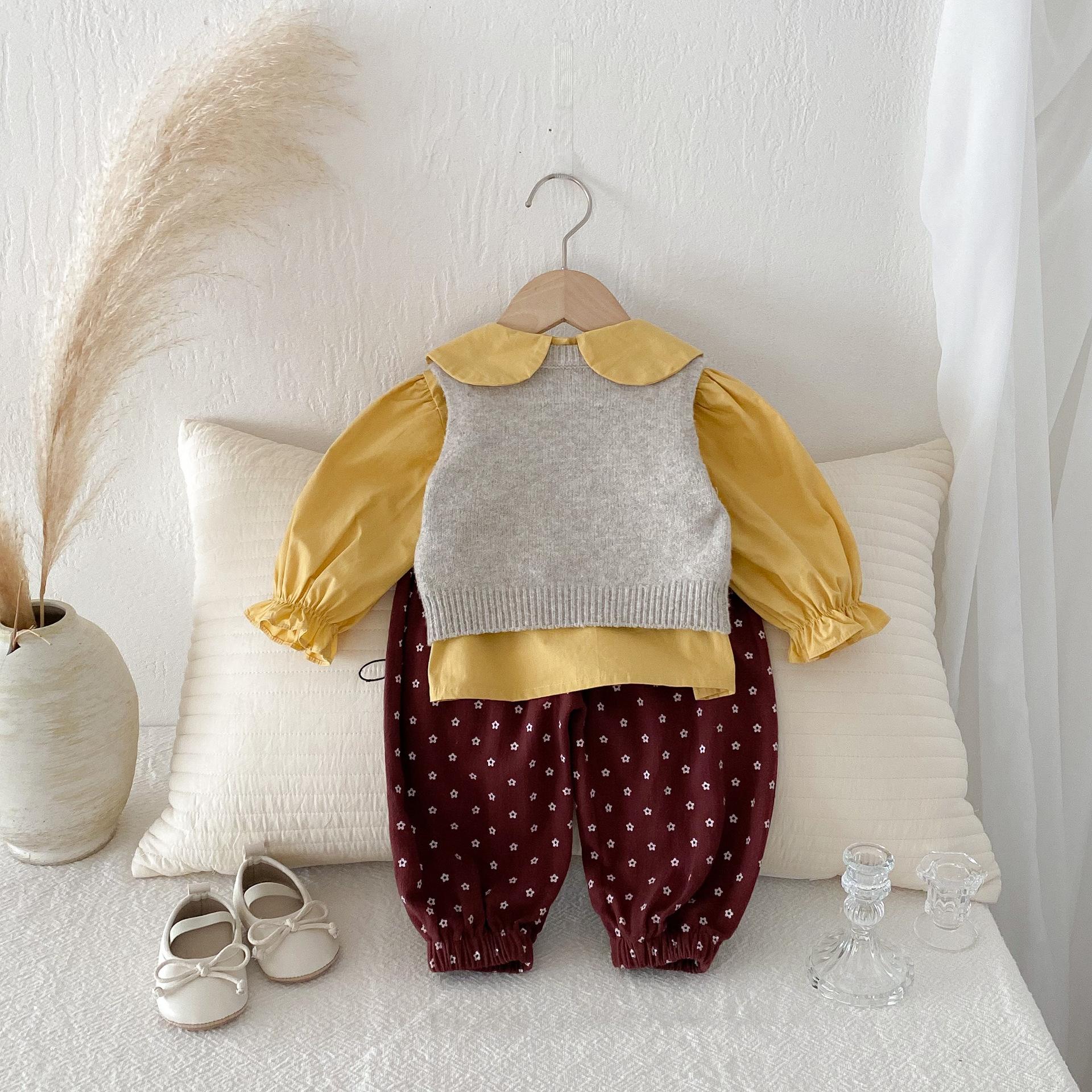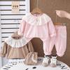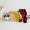 Conjunto Nuevo de Otoño 2025 para Bebé Niña Solapa Pequeña Manga Larga Top de Algodón a la Moda Pantalón Largo para Niña Conjunto de Dos Piezas