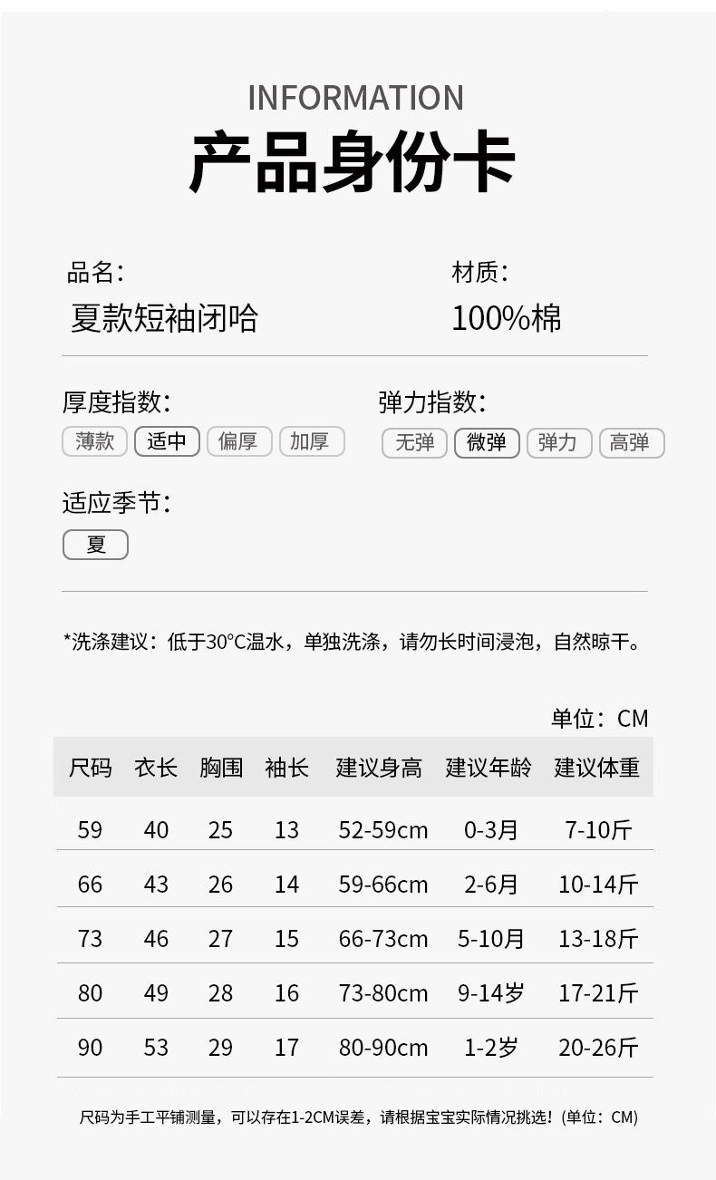 Mameluco de manga corta para bebé de algodón puro Clase A Verano Delgado Ropa para recién nacido Ropa para gatear de bebé Pijama para salir
