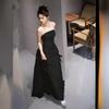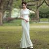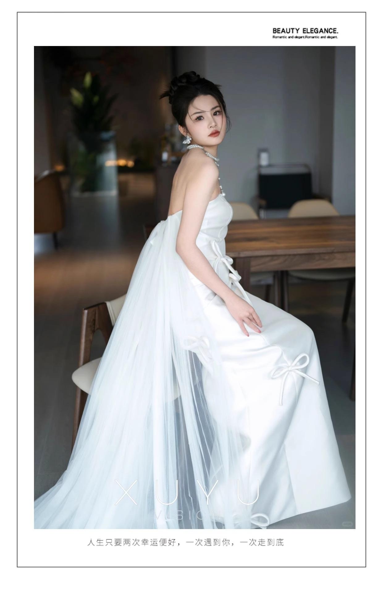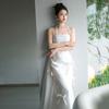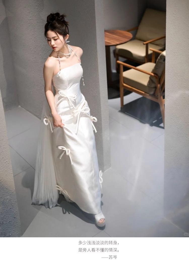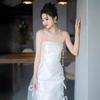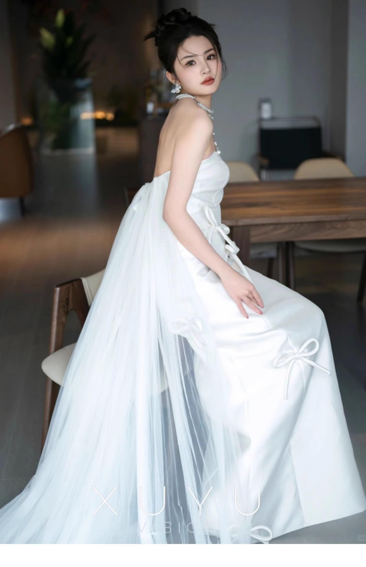 Vestido de Novia Ligero de Satén Francés Novia Sencillo Elegante Strapless Vestido Cola de Pez Blanco Vestido con Lazo para Petite