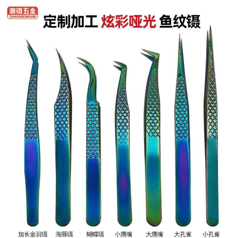 Compra Pinzas personalizadas de color mate, pinzas boca de águila, pinzas para pestañas, codo puntiagudo, pinzas para uñas de pestañas, se puede fijar LOGO al por mayor en Joom.pro