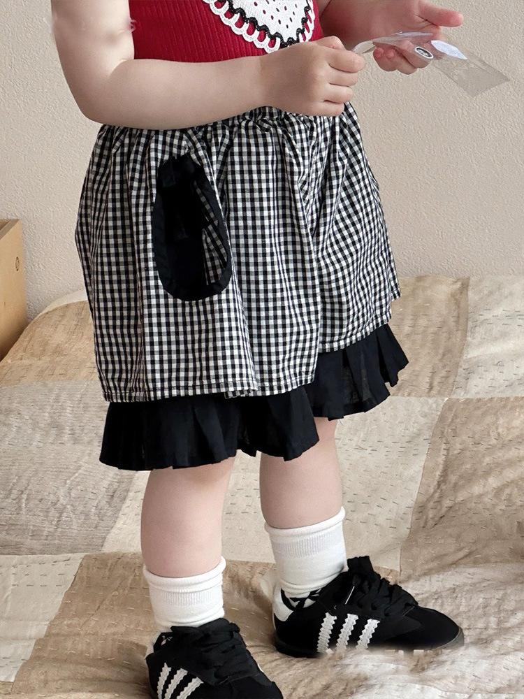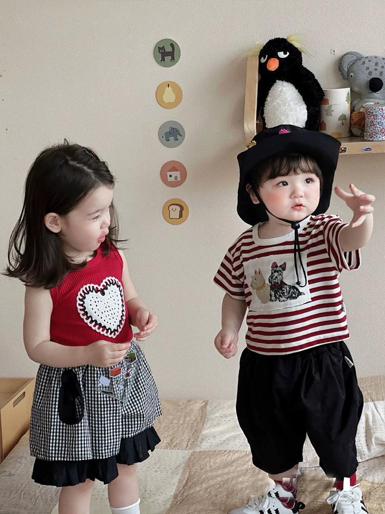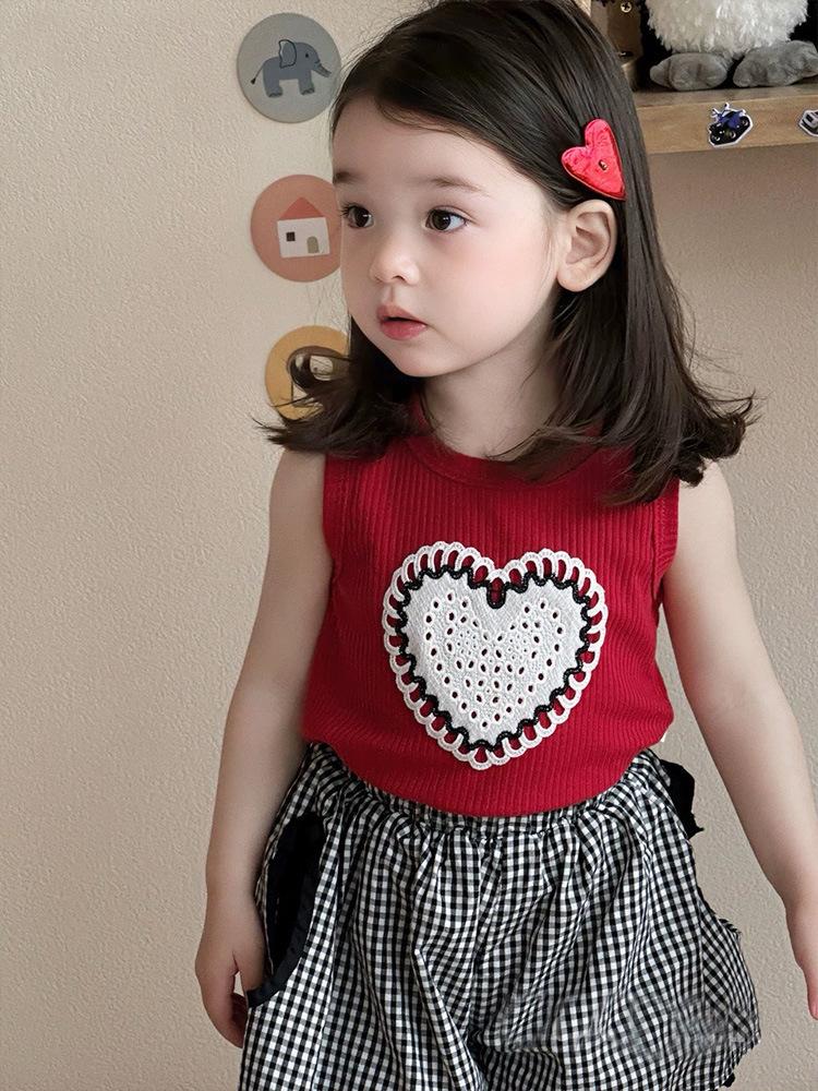 Ropa para Niños Verano Chaleco Rojo de Amor para Niña Top Estilo Occidental Shorts de Encaje a Cuadros Traje Dulce para Bebé Niña Trendy