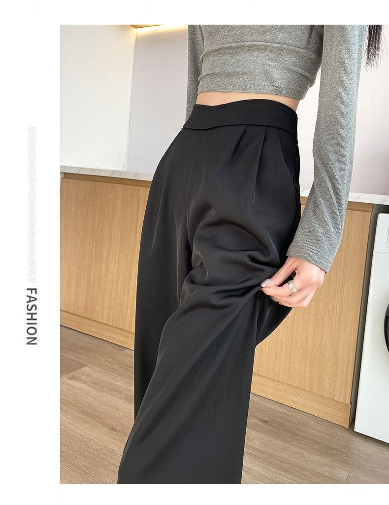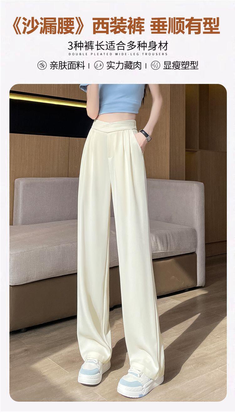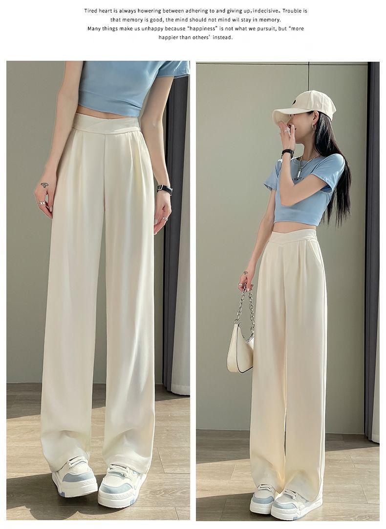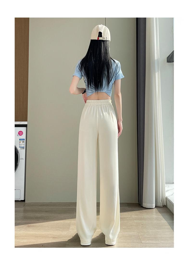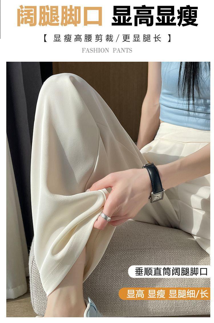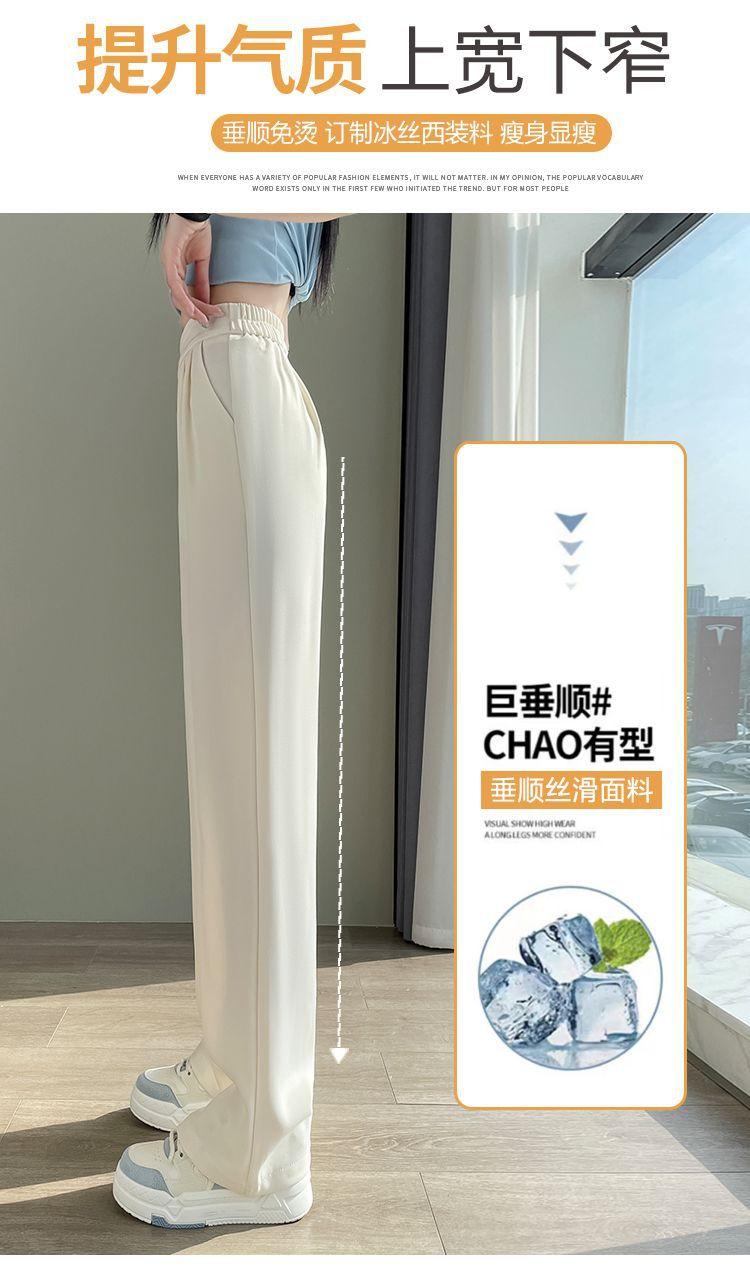 Pantalones de traje de pierna estrecha para mujer verano otoño delgados de cintura alta de pierna ancha pantalones casuales de seda helada con caída sueltos de pierna recta