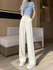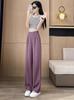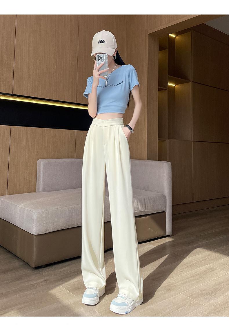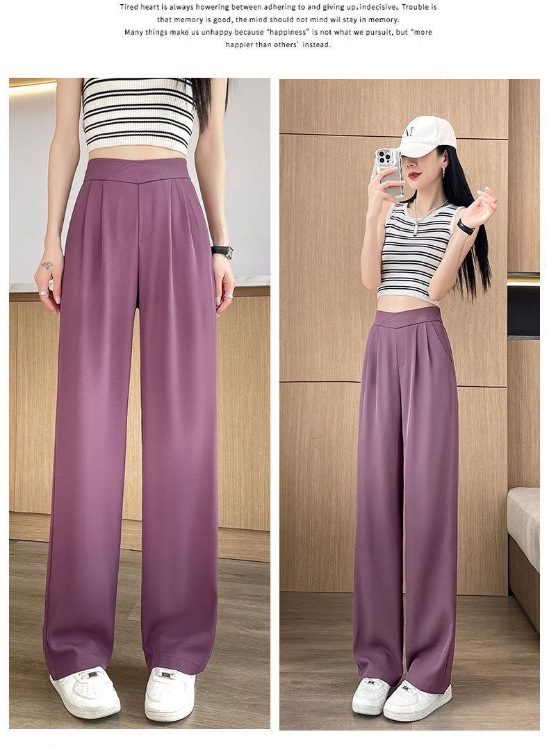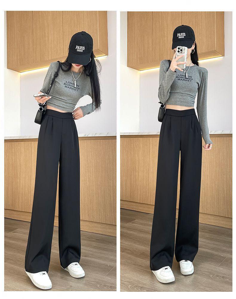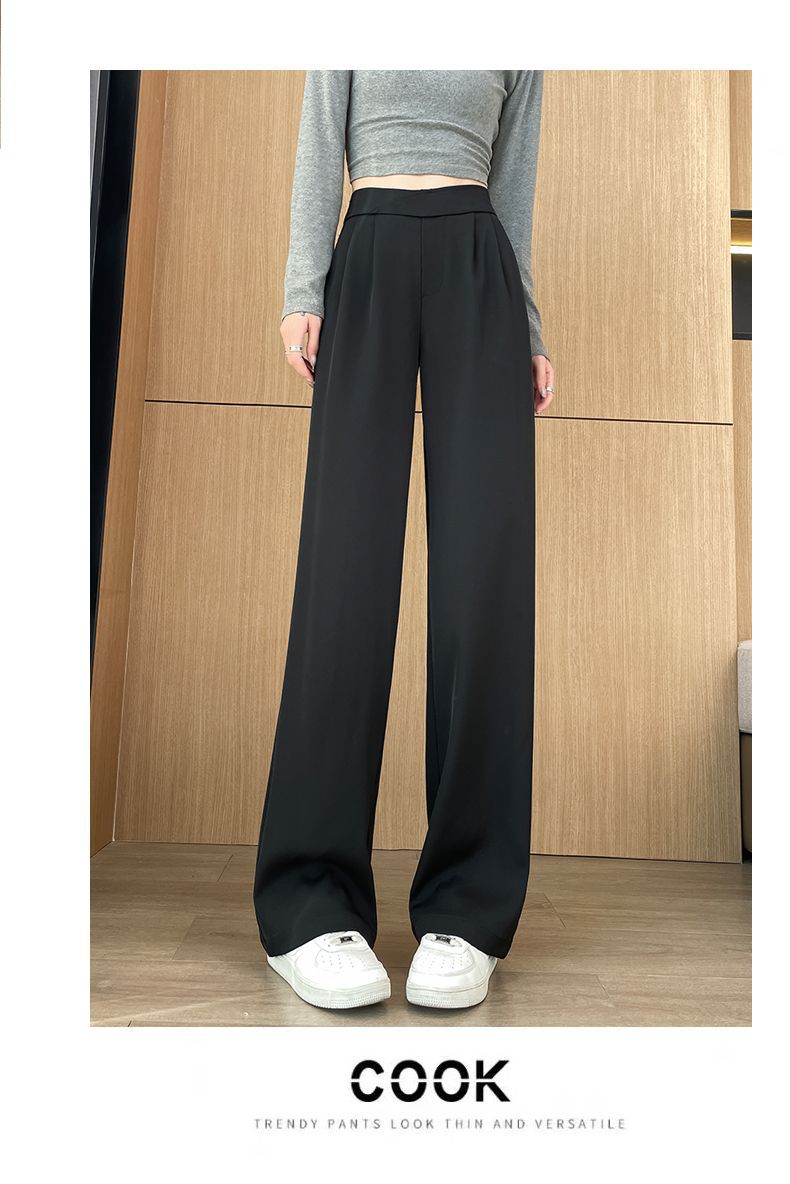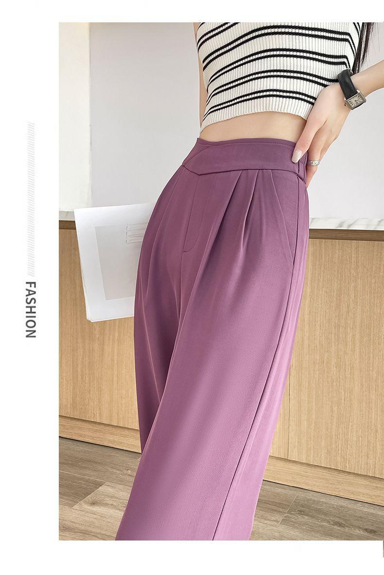 Pantalones de traje de pierna estrecha para mujer verano otoño delgados de cintura alta de pierna ancha pantalones casuales de seda helada con caída sueltos de pierna recta