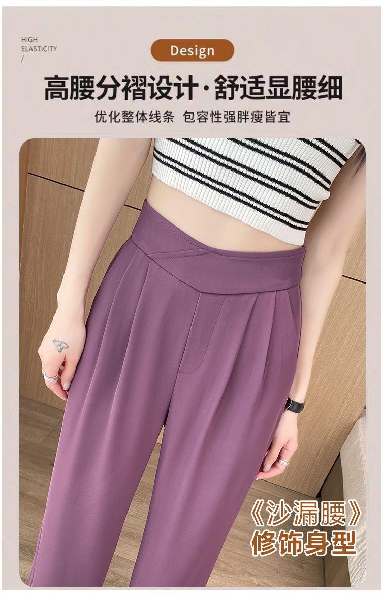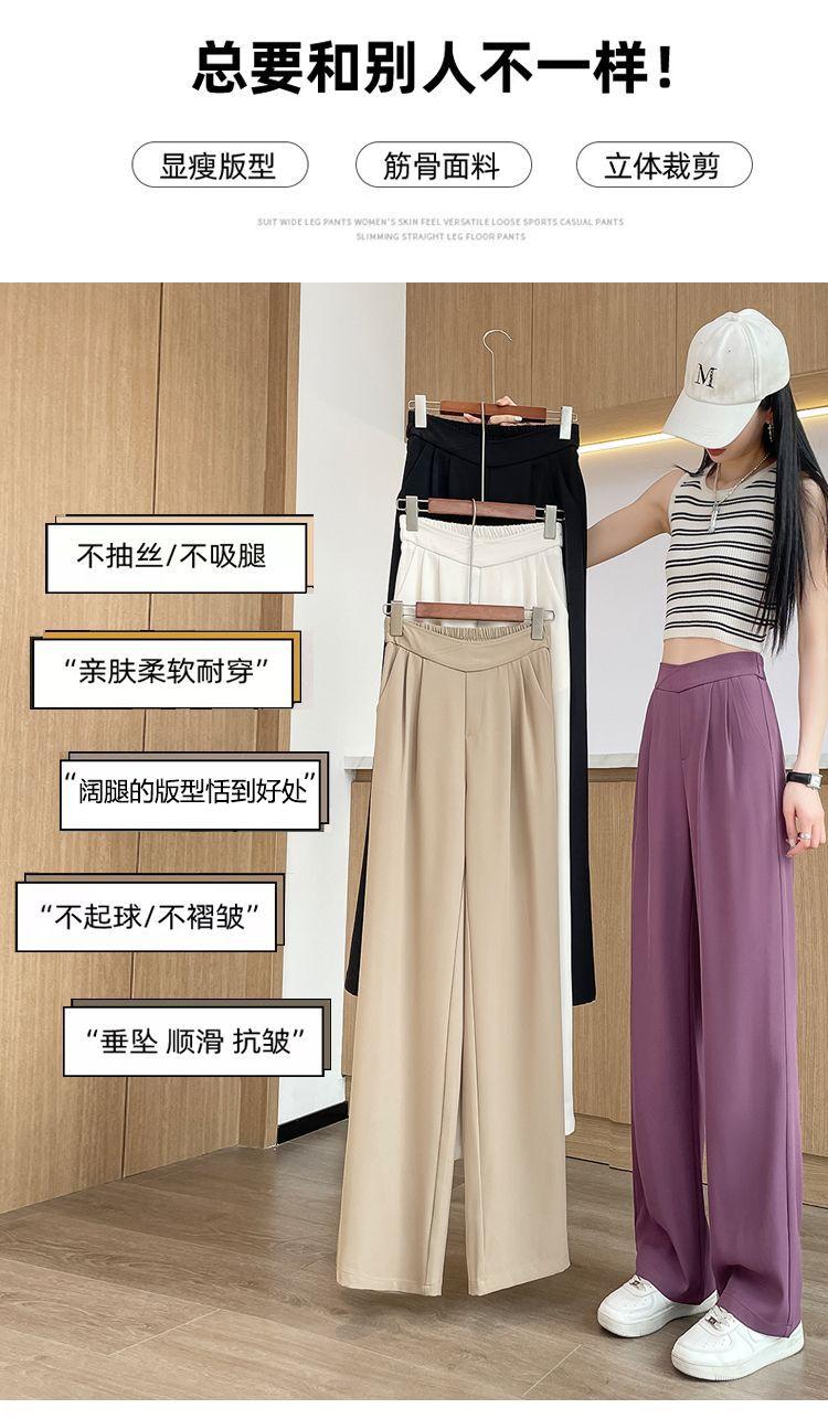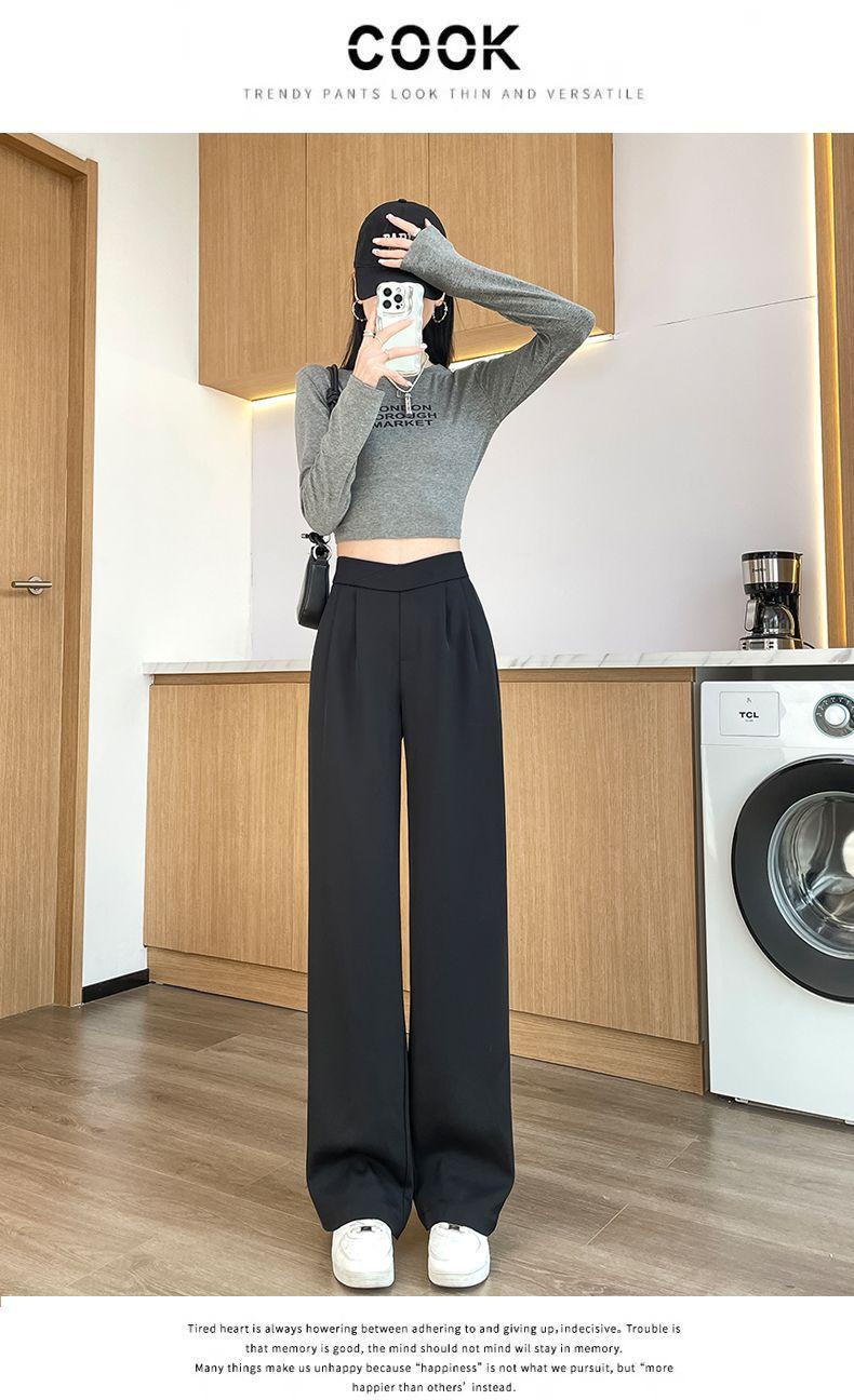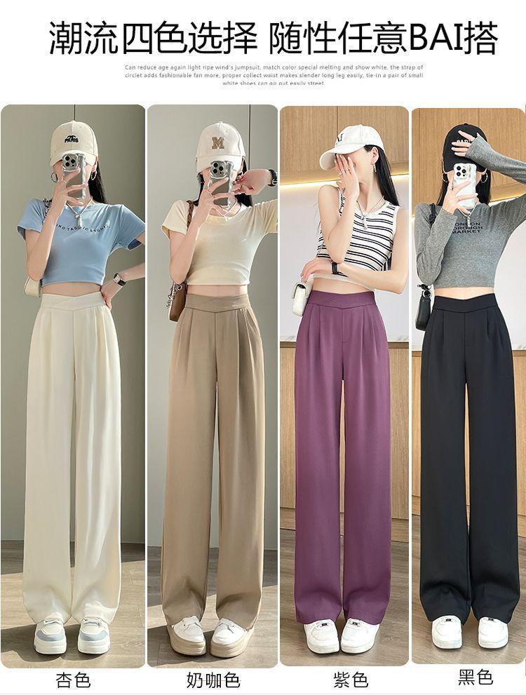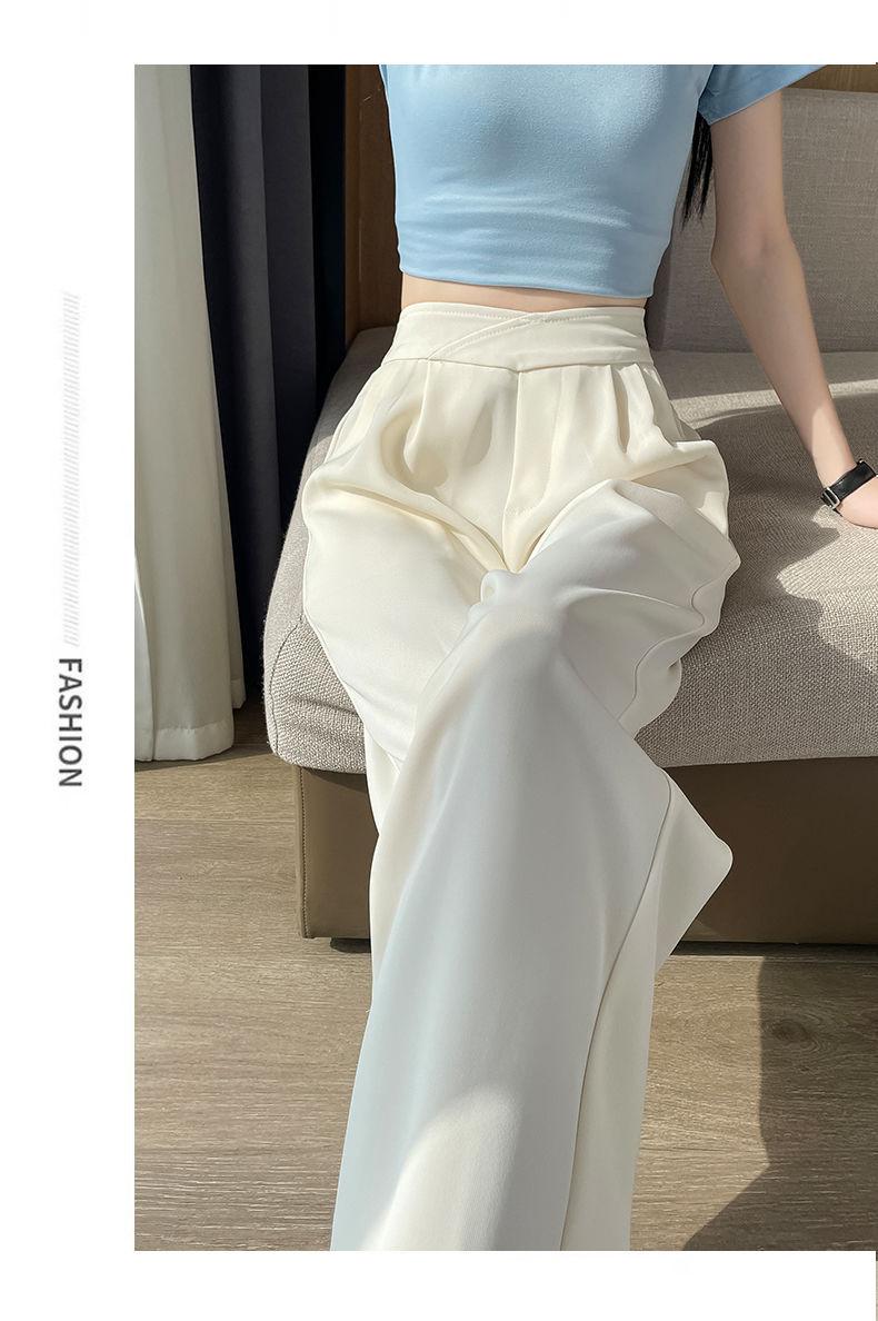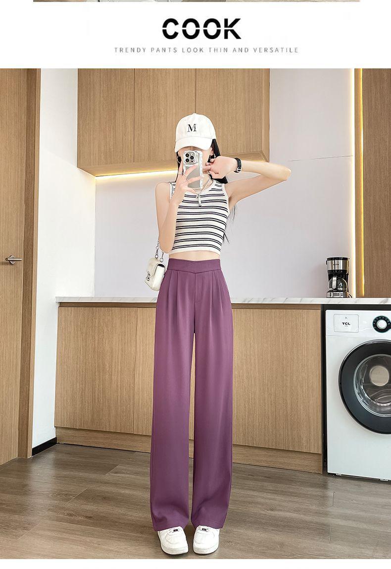 Pantalones de traje de pierna estrecha para mujer verano otoño delgados de cintura alta de pierna ancha pantalones casuales de seda helada con caída sueltos de pierna recta