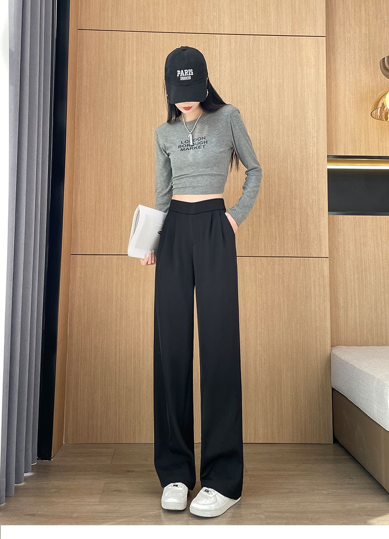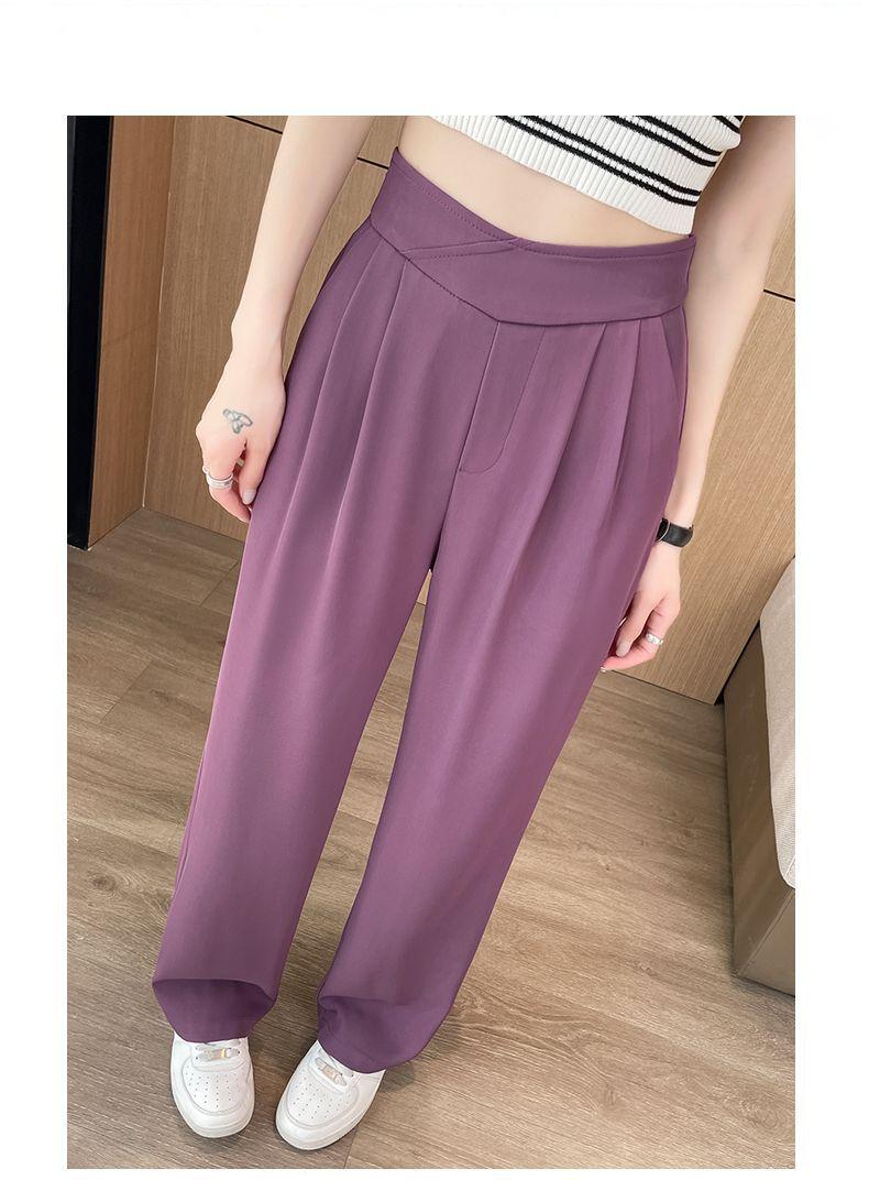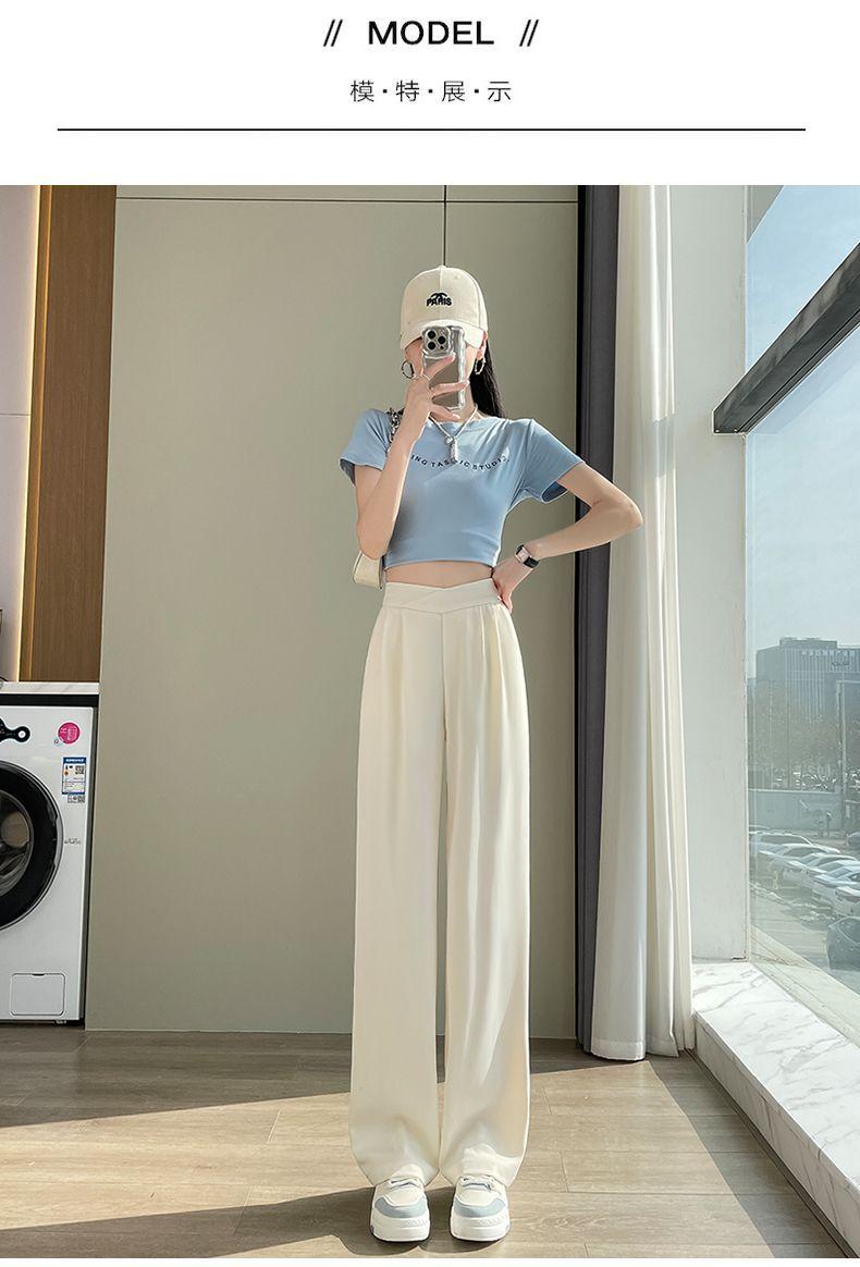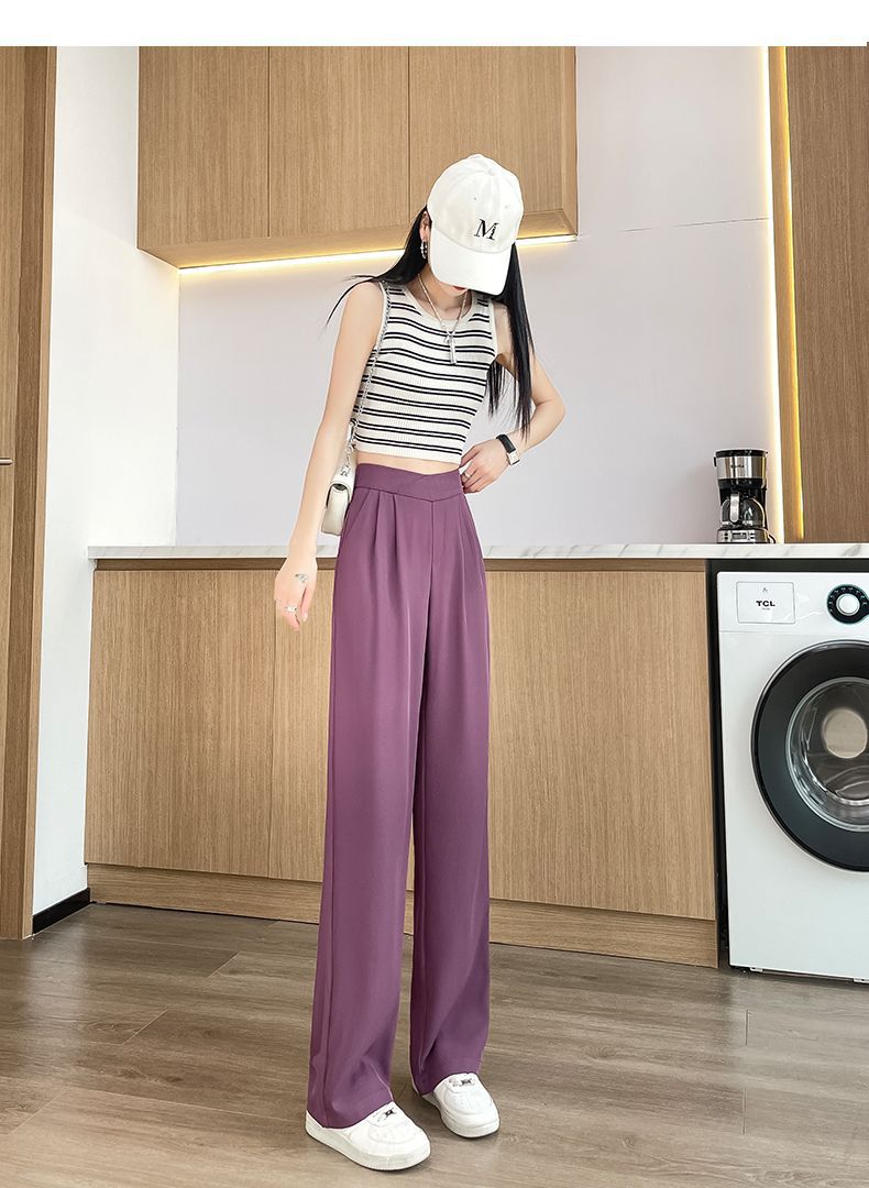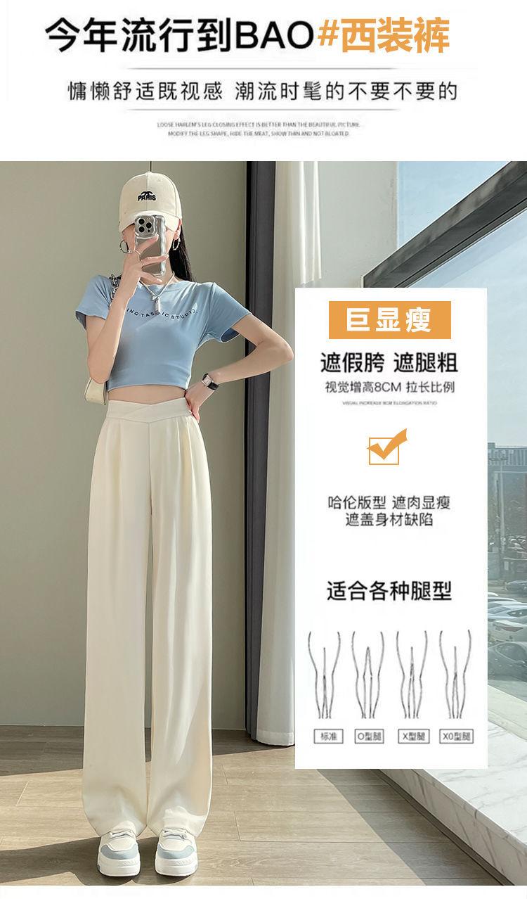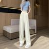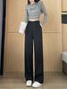 Pantalones de traje de pierna estrecha para mujer verano otoño delgados de cintura alta de pierna ancha pantalones casuales de seda helada con caída sueltos de pierna recta