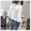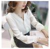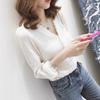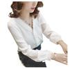 Primavera 2025 Nuevo Estilo Coreano Cuello en V Encaje Blanco Camisa de Manga Larga Tops Camisa Pulóver Chic Suelta para Mujer
